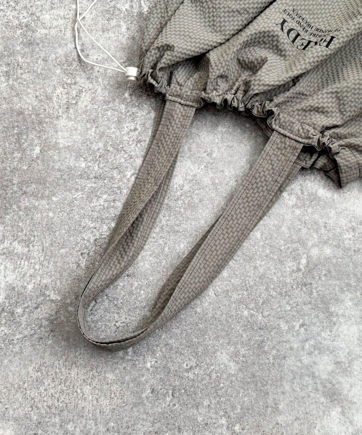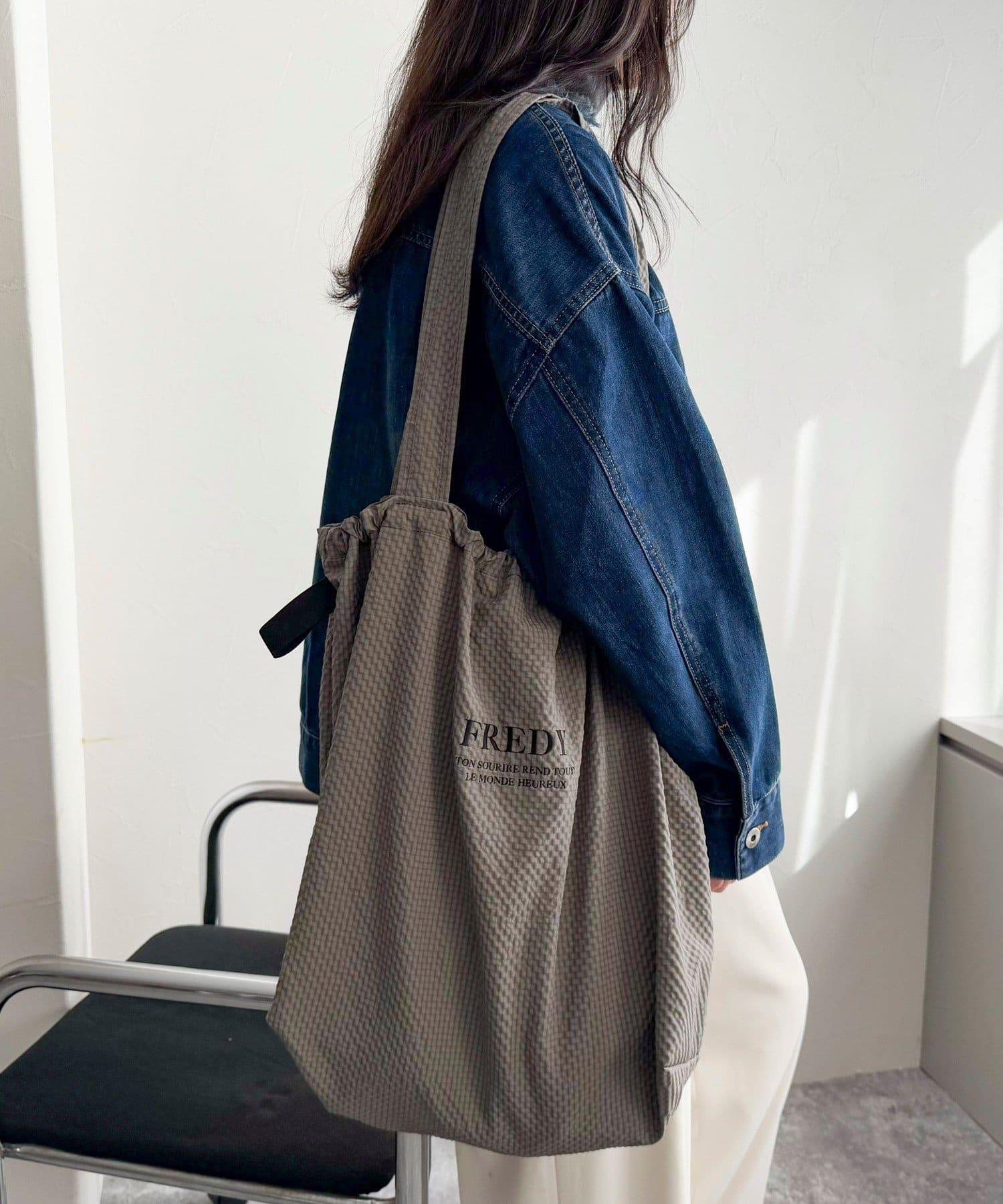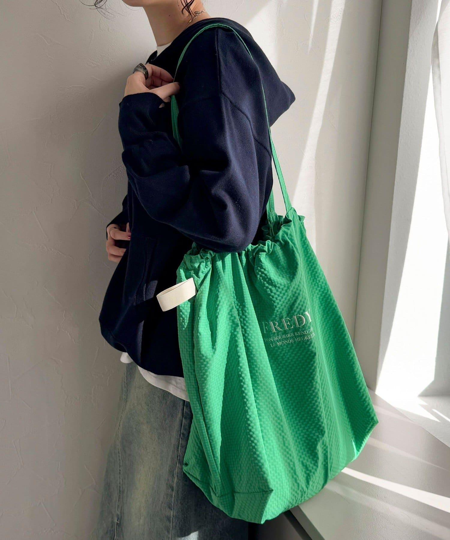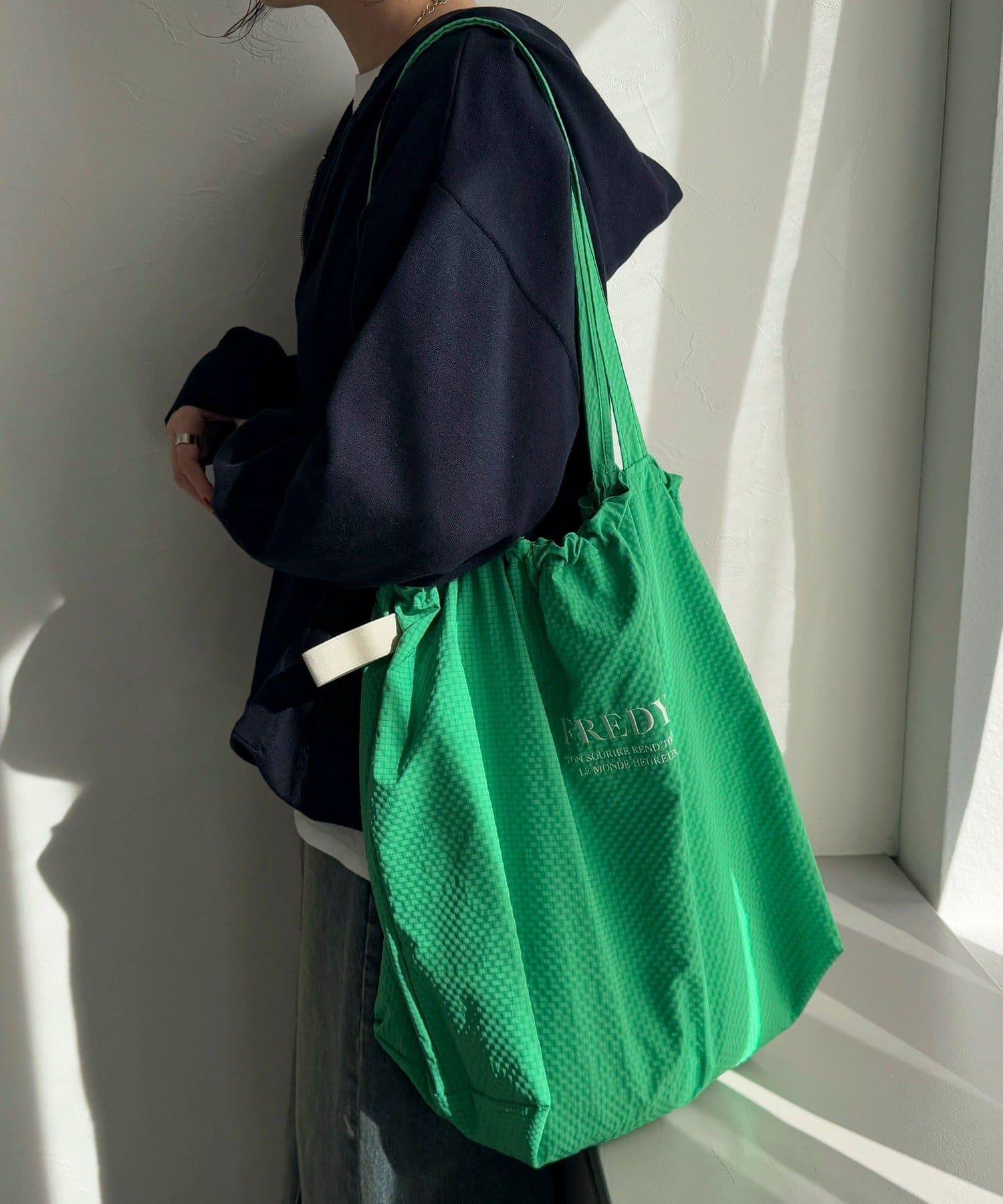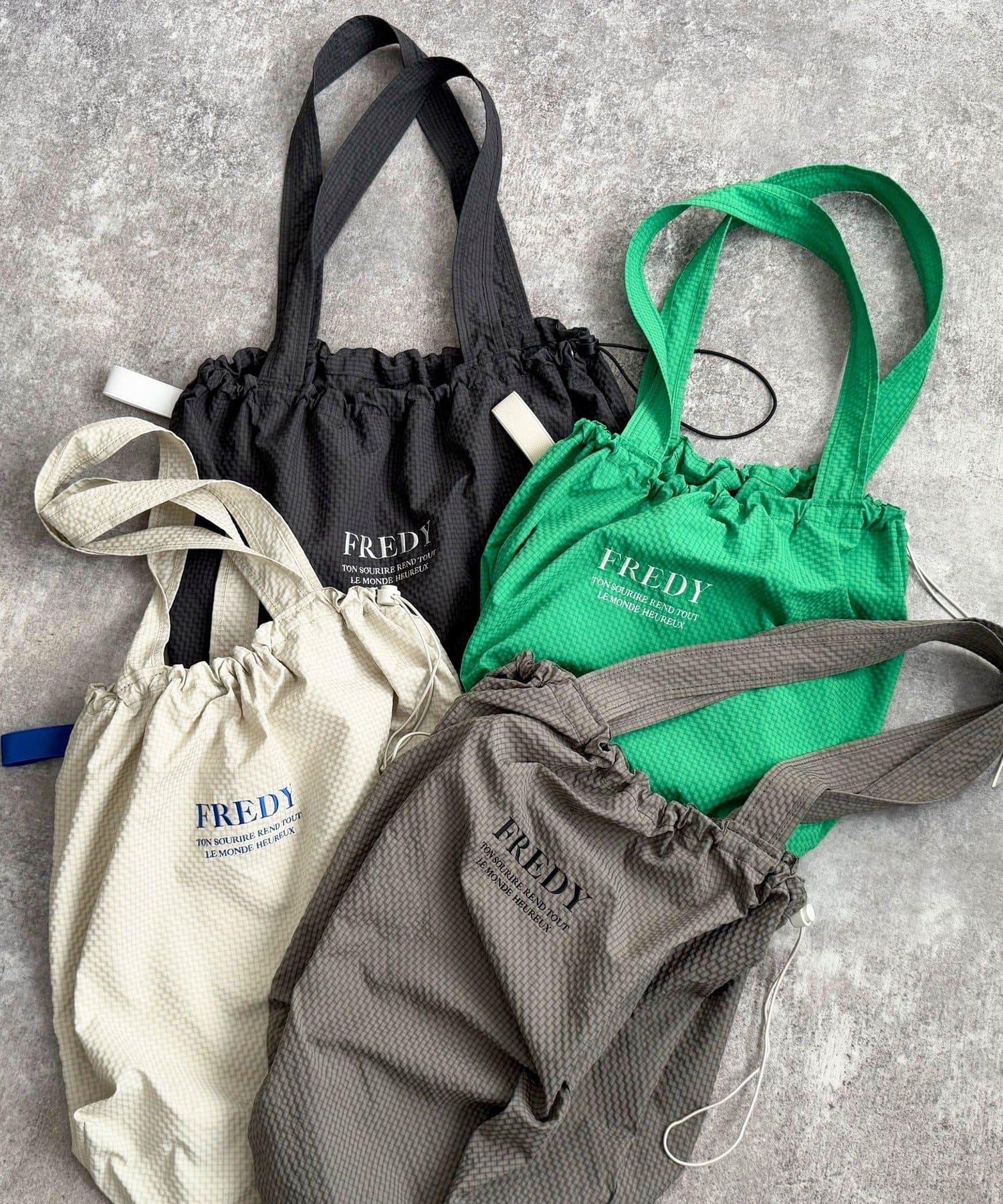 這是一款便於日常使用的手提包,格紋面料上繡有 FREDY 字樣。