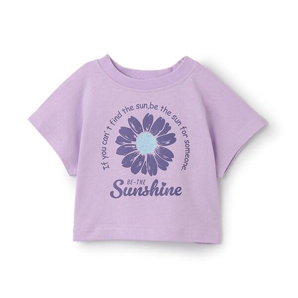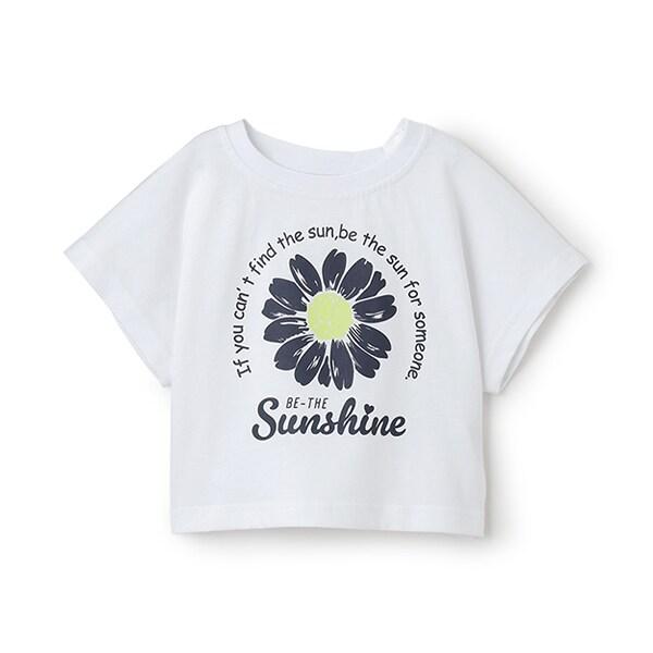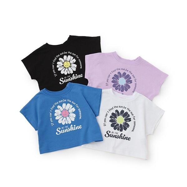 短款短袖 T 恤,印有可愛的花朵圖案。