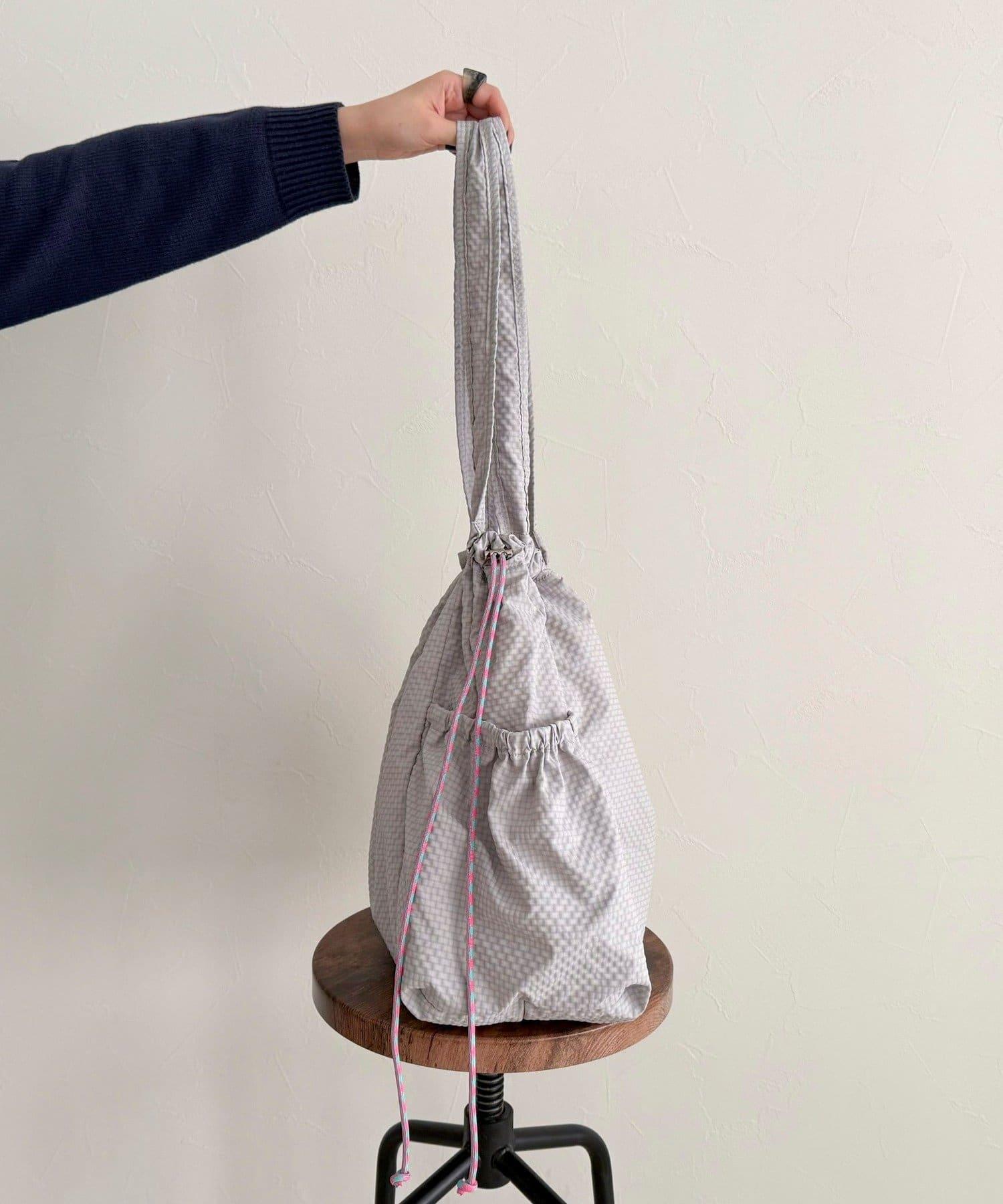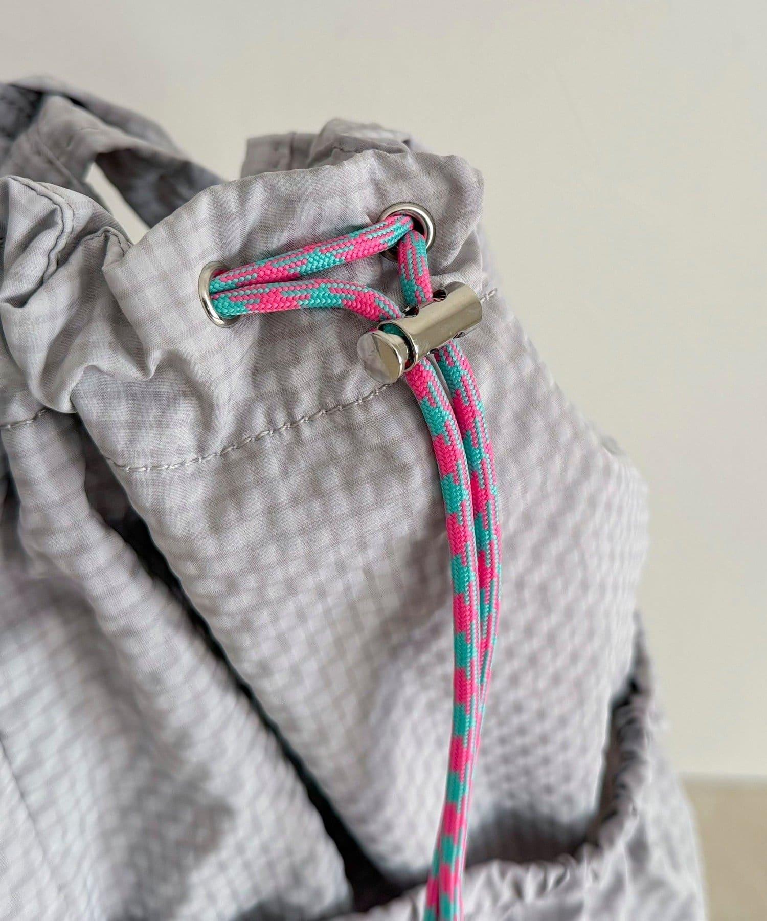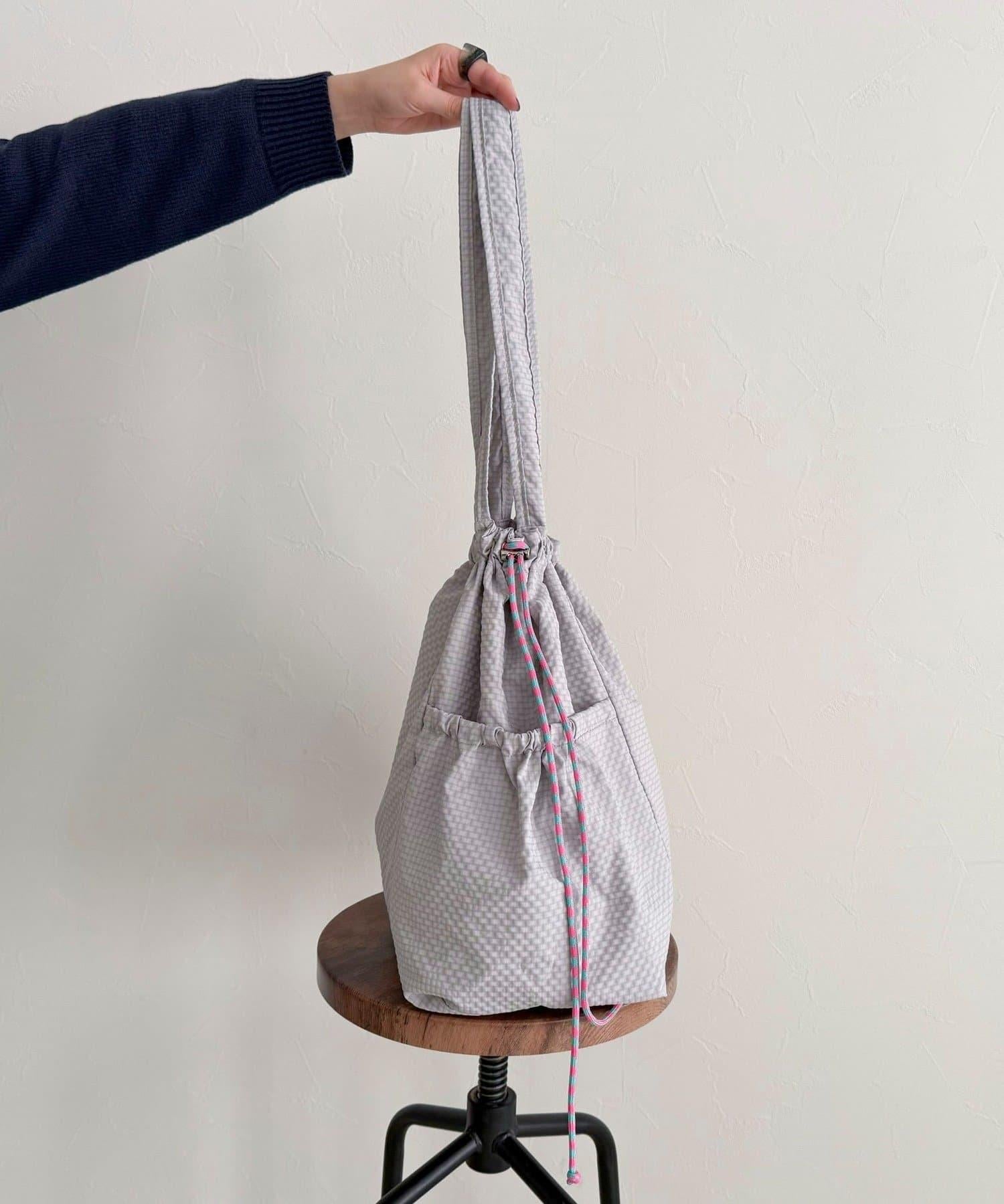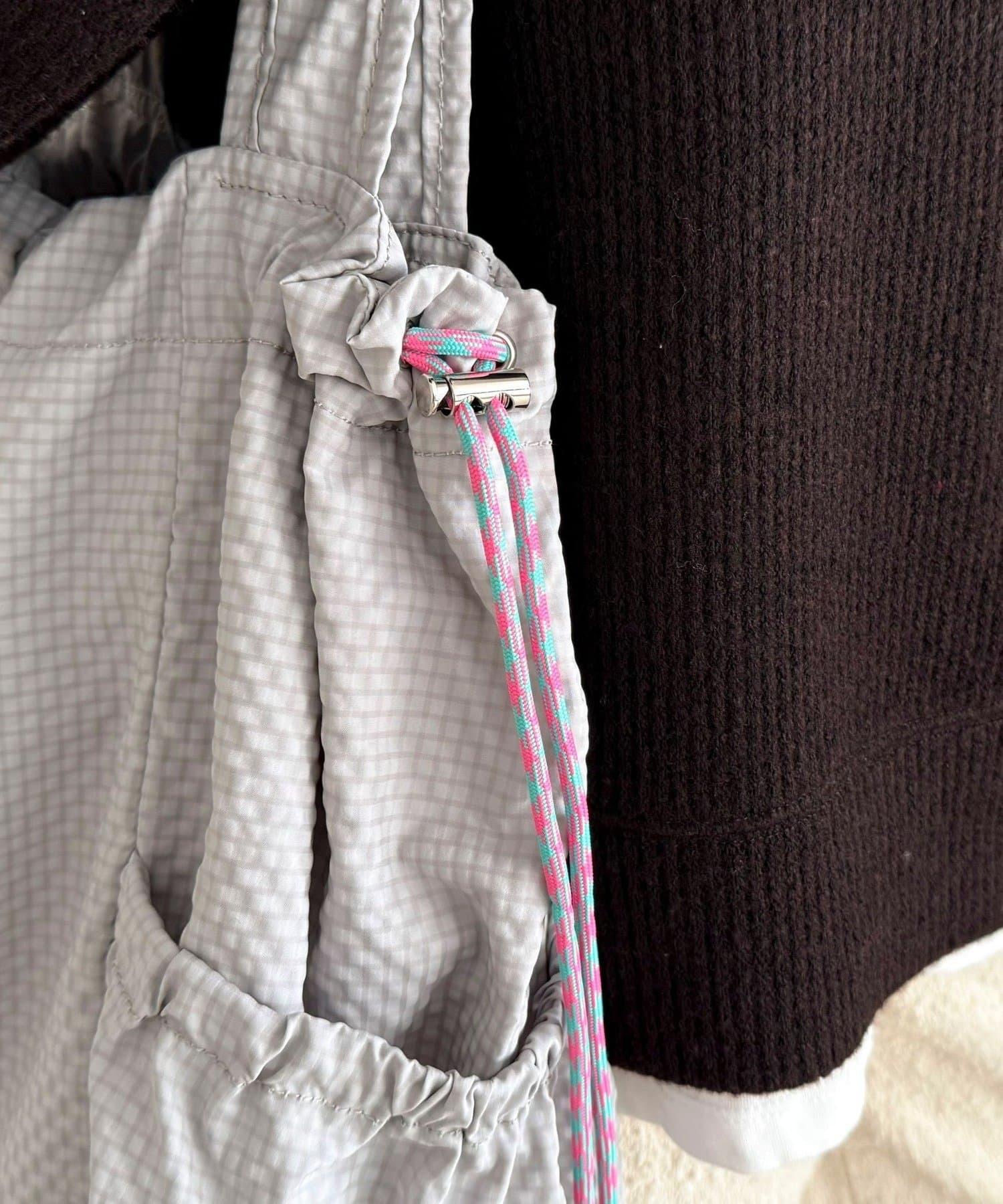 這款手袋採用磁扣開合,拉上兩側的拉繩後,還可作為拉繩包佩戴。