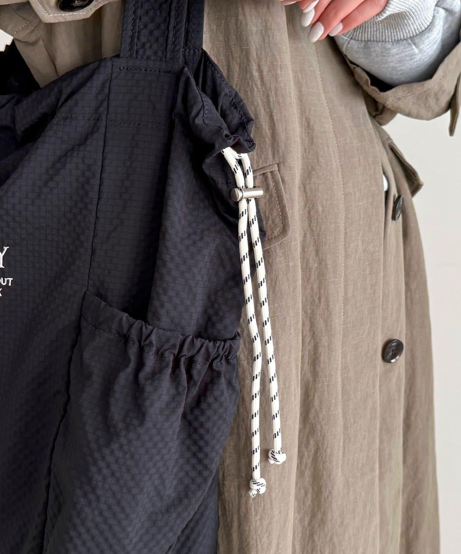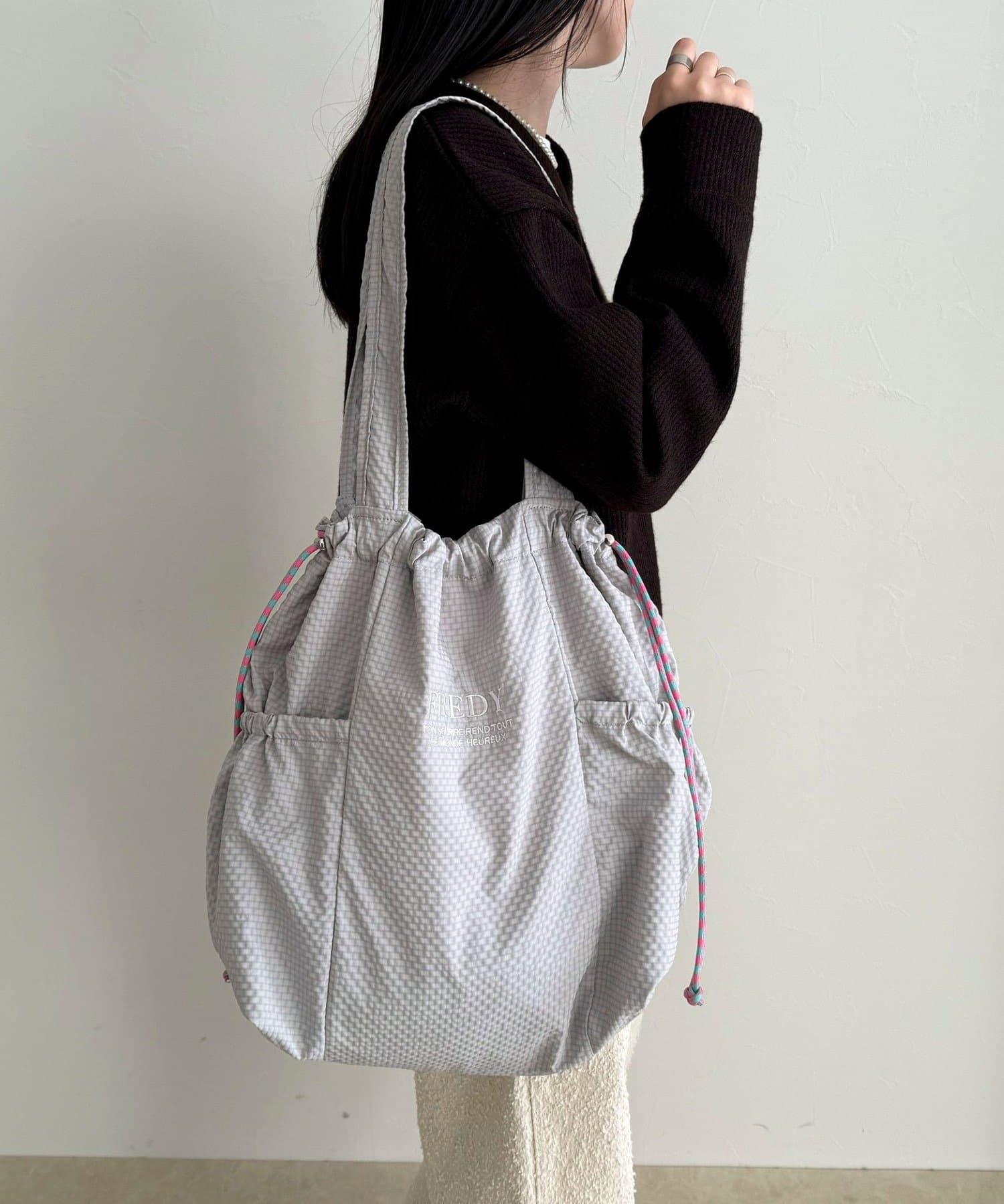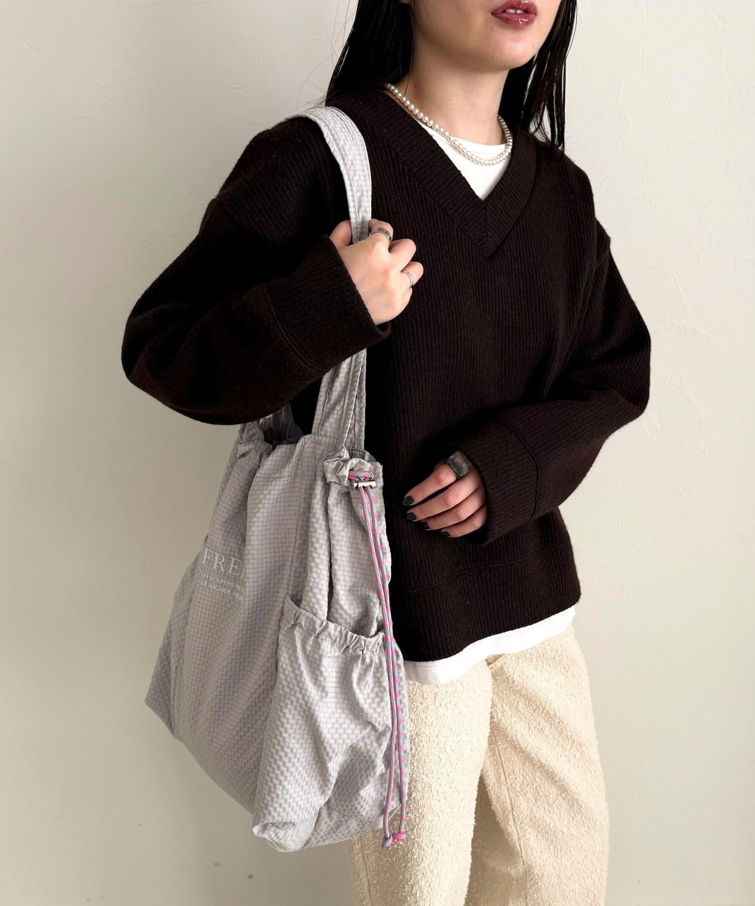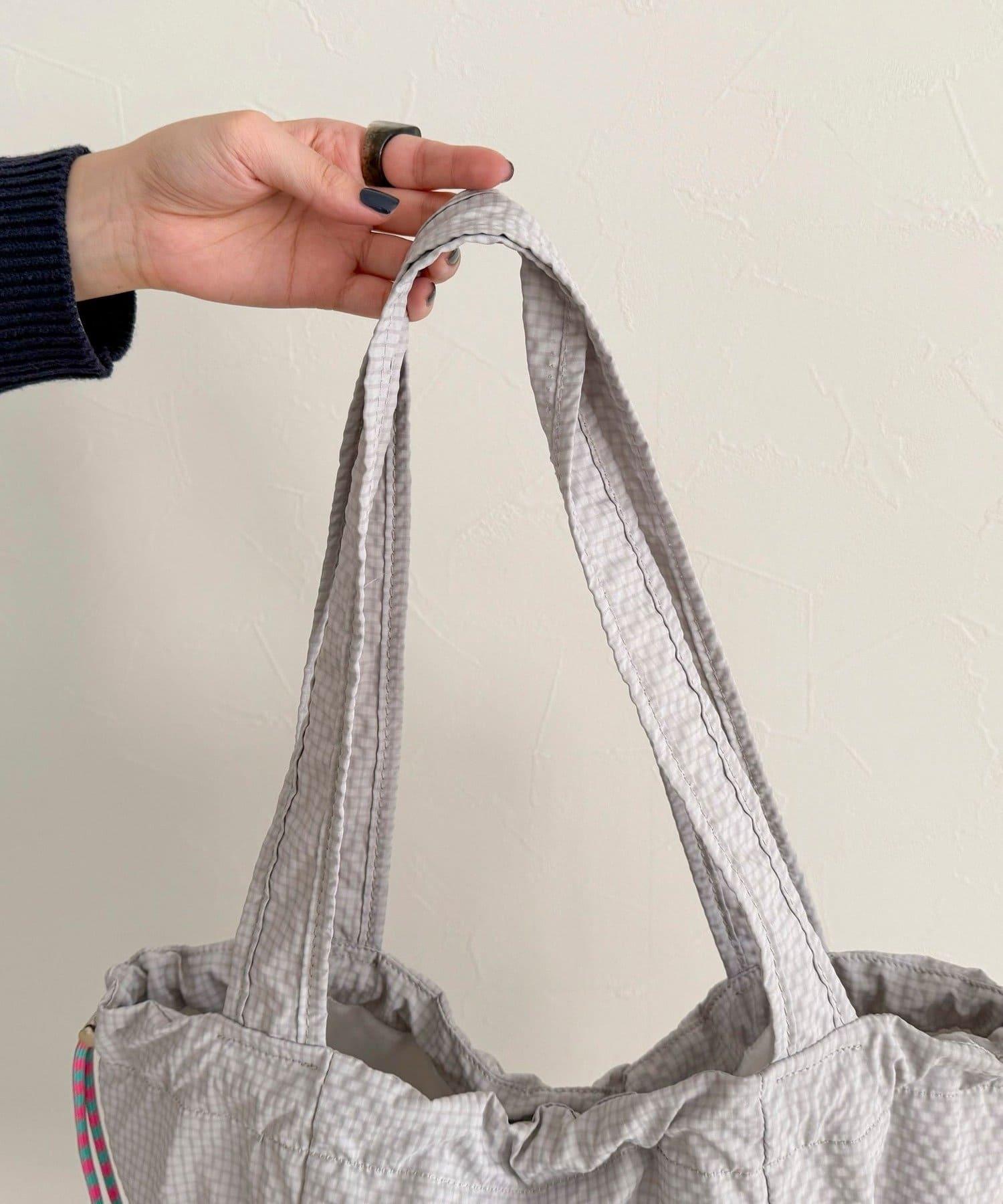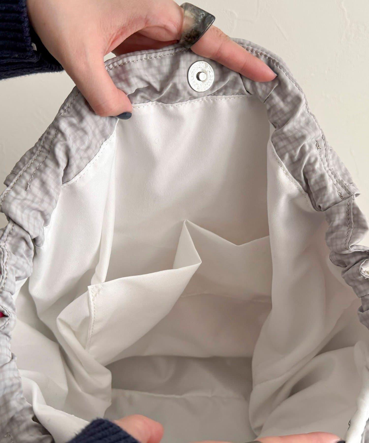 這款手袋採用磁扣開合,拉上兩側的拉繩後,還可作為拉繩包佩戴。