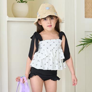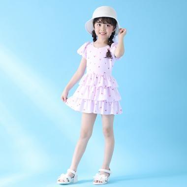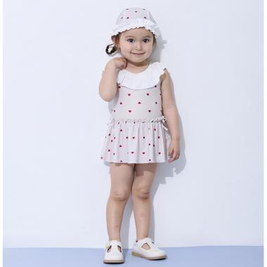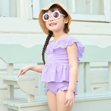 【防紫外線】帶拇指孔的荷葉邊荷葉邊連體泳衣