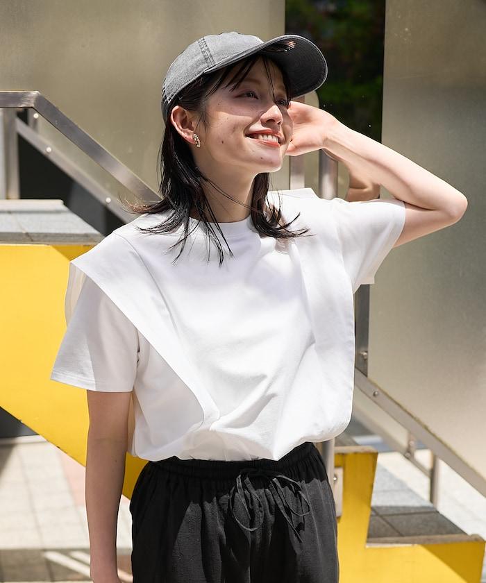 <防紫外線/接觸冷感>COOLPASS 肩部拼接T恤