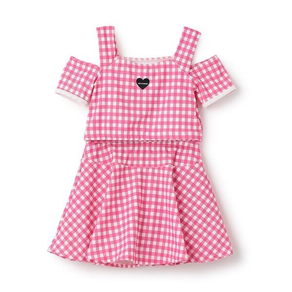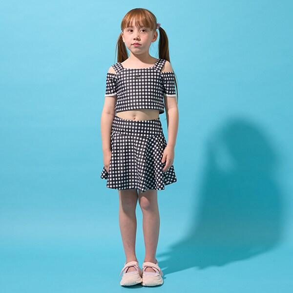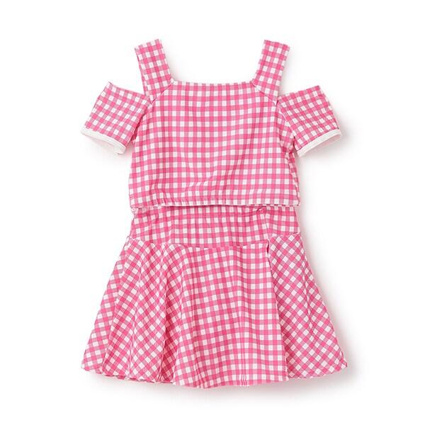 【防紫外線/泳裝/SWIM】一字肩風格上衣配荷葉邊裙褲