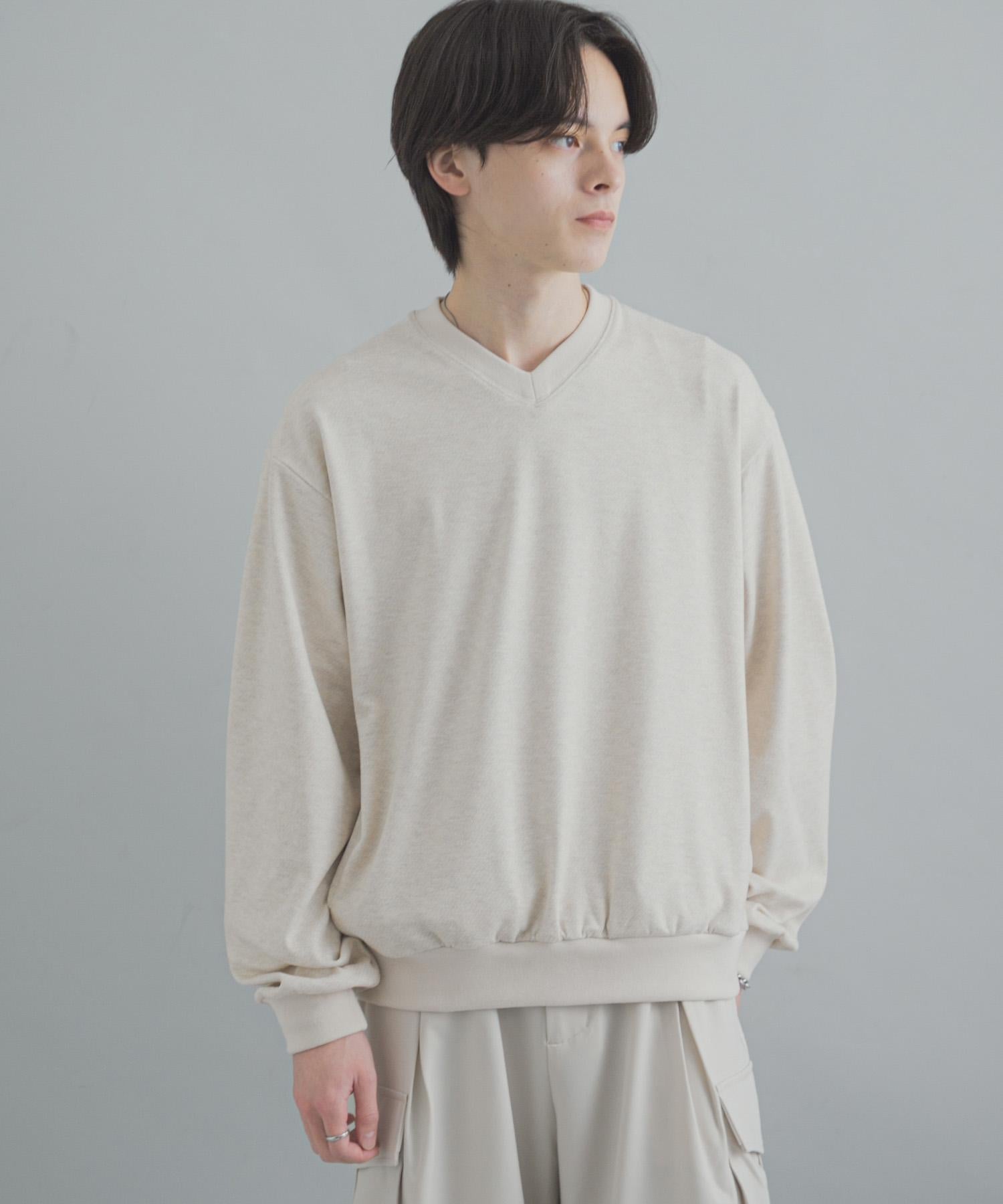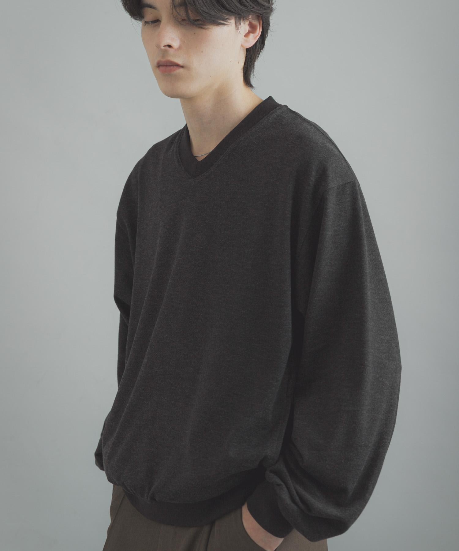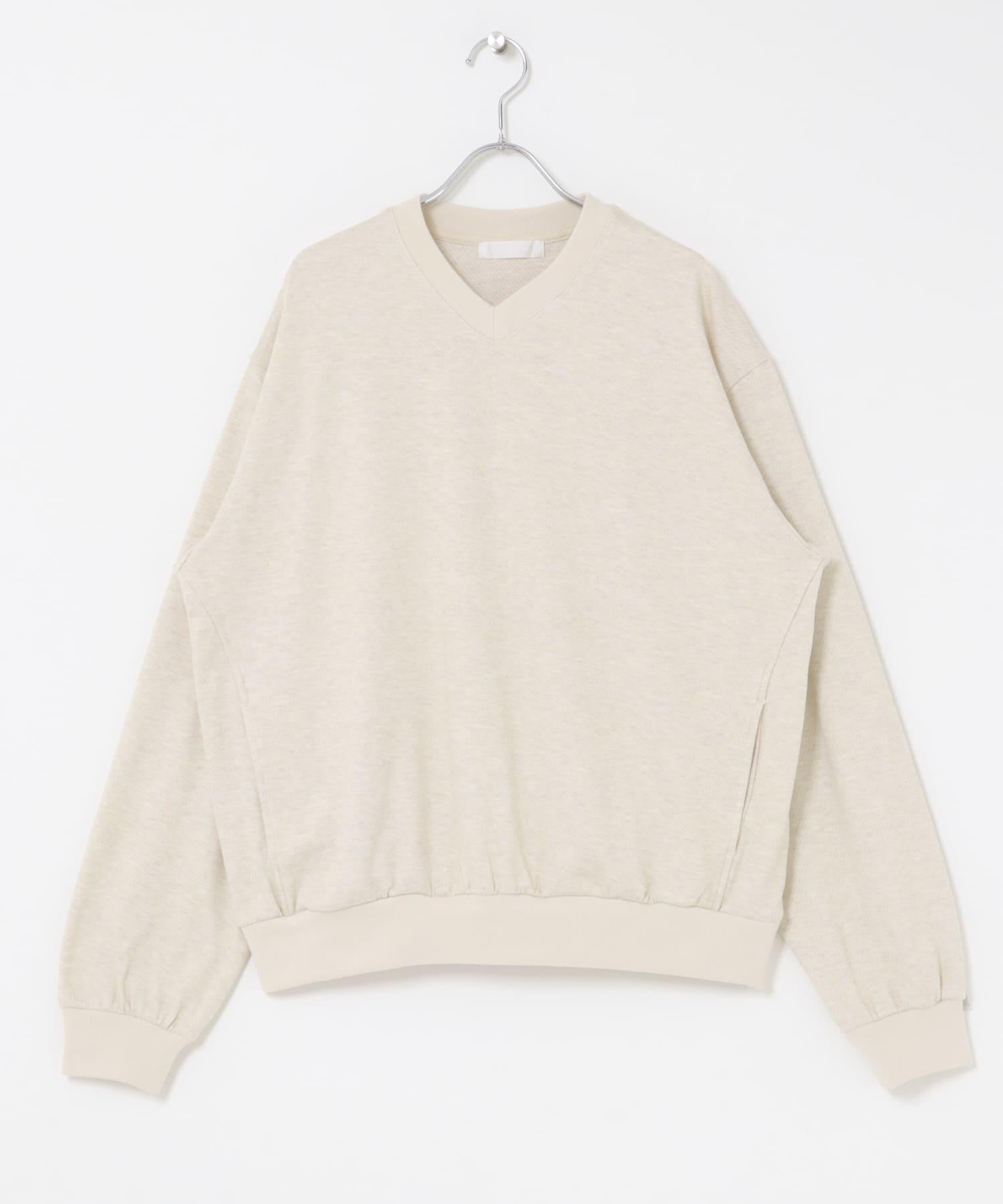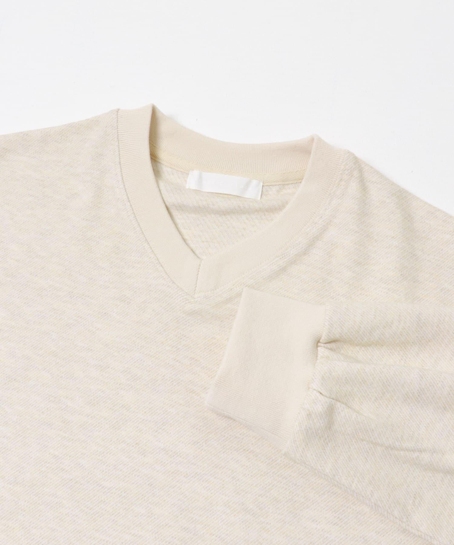 採用寬鬆合身的 V 領設計。V 領設計適度寬鬆。