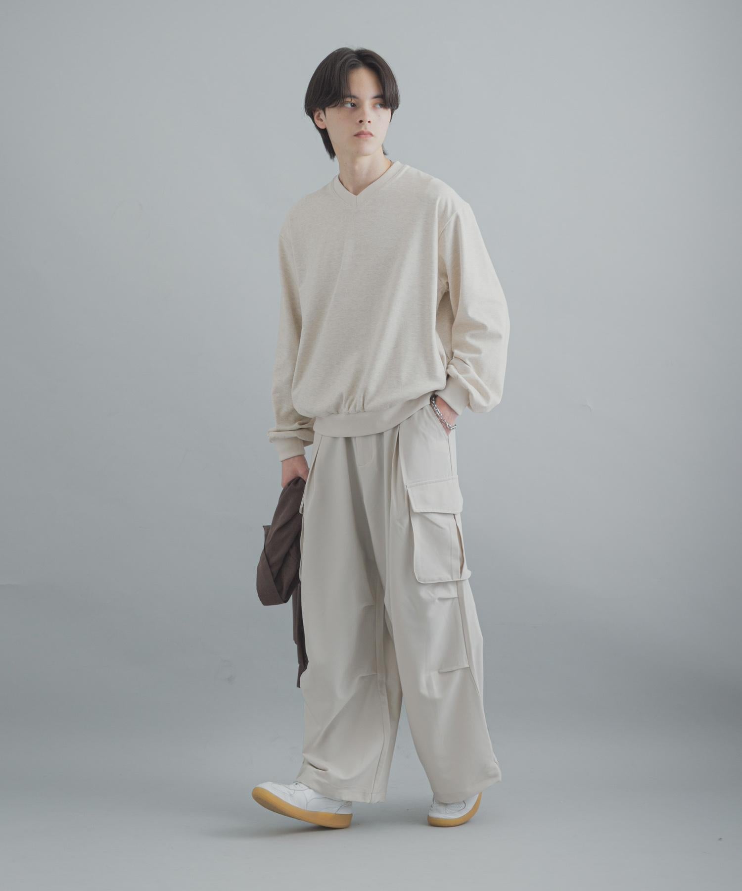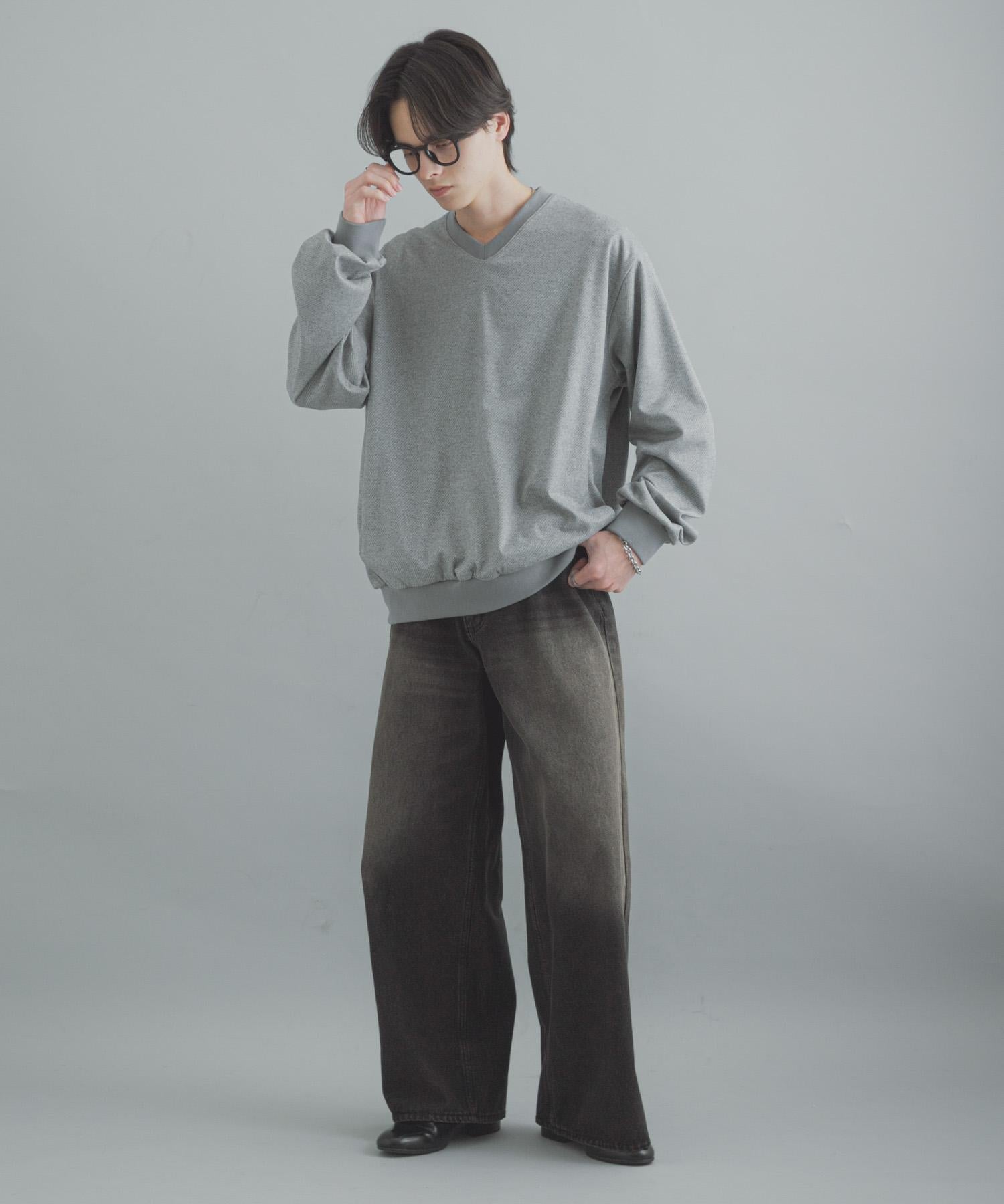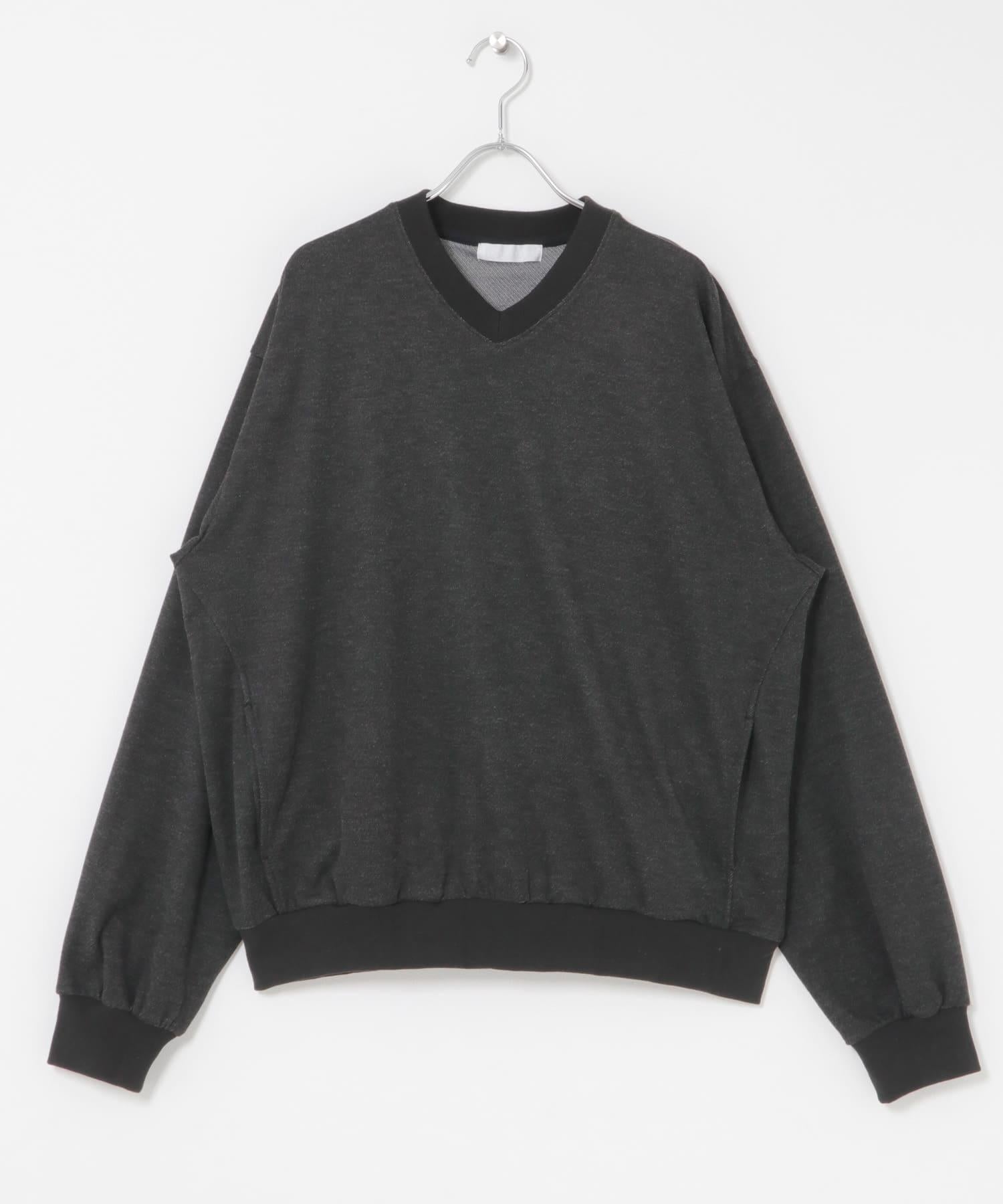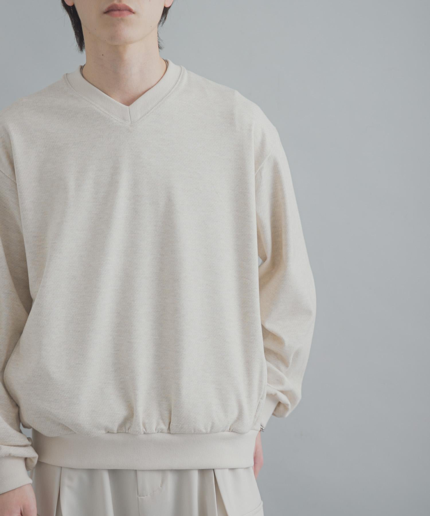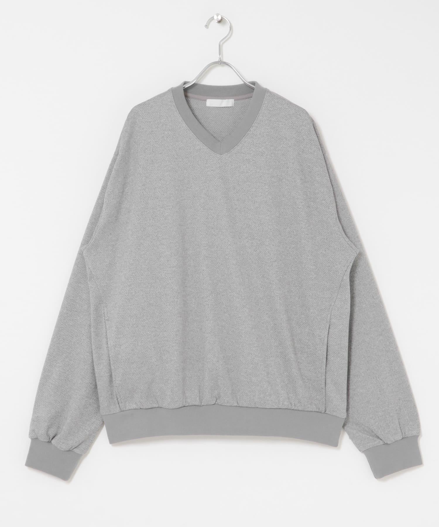 採用寬鬆合身的 V 領設計。V 領設計適度寬鬆。