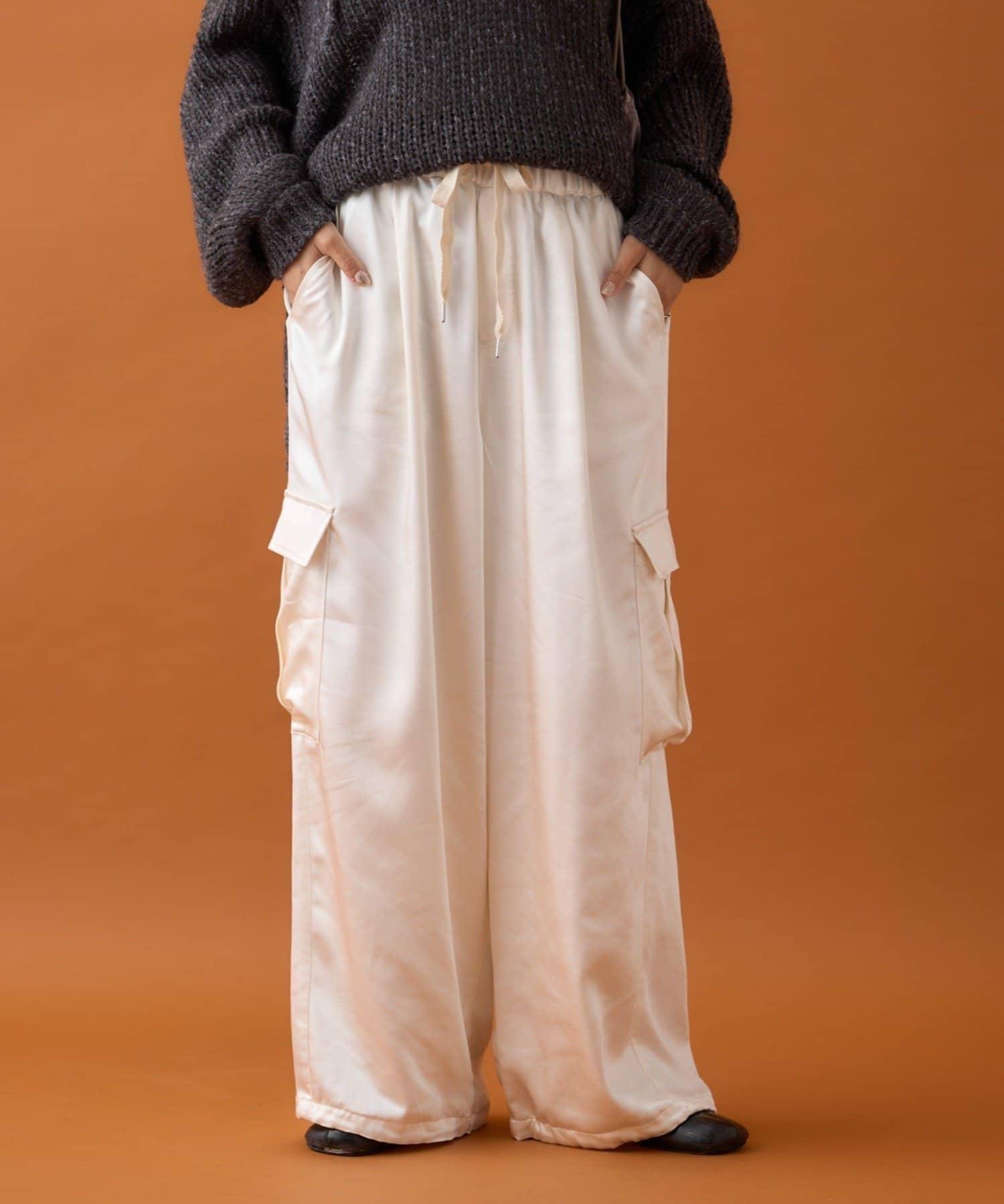 採用閃亮緞面面料製成的揹帶褲為休閒裝增添了一絲優雅。