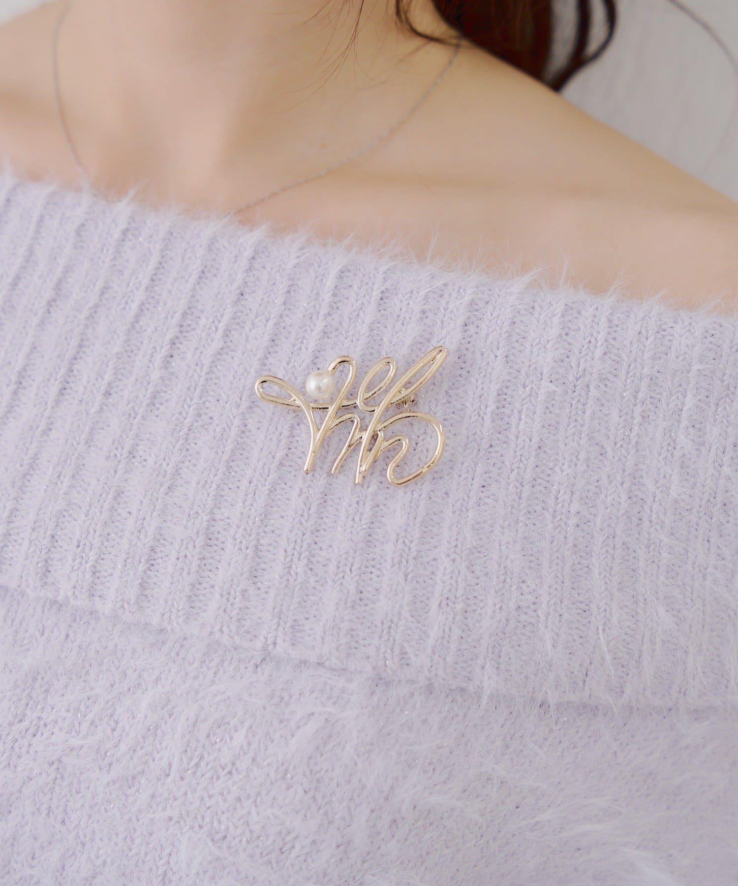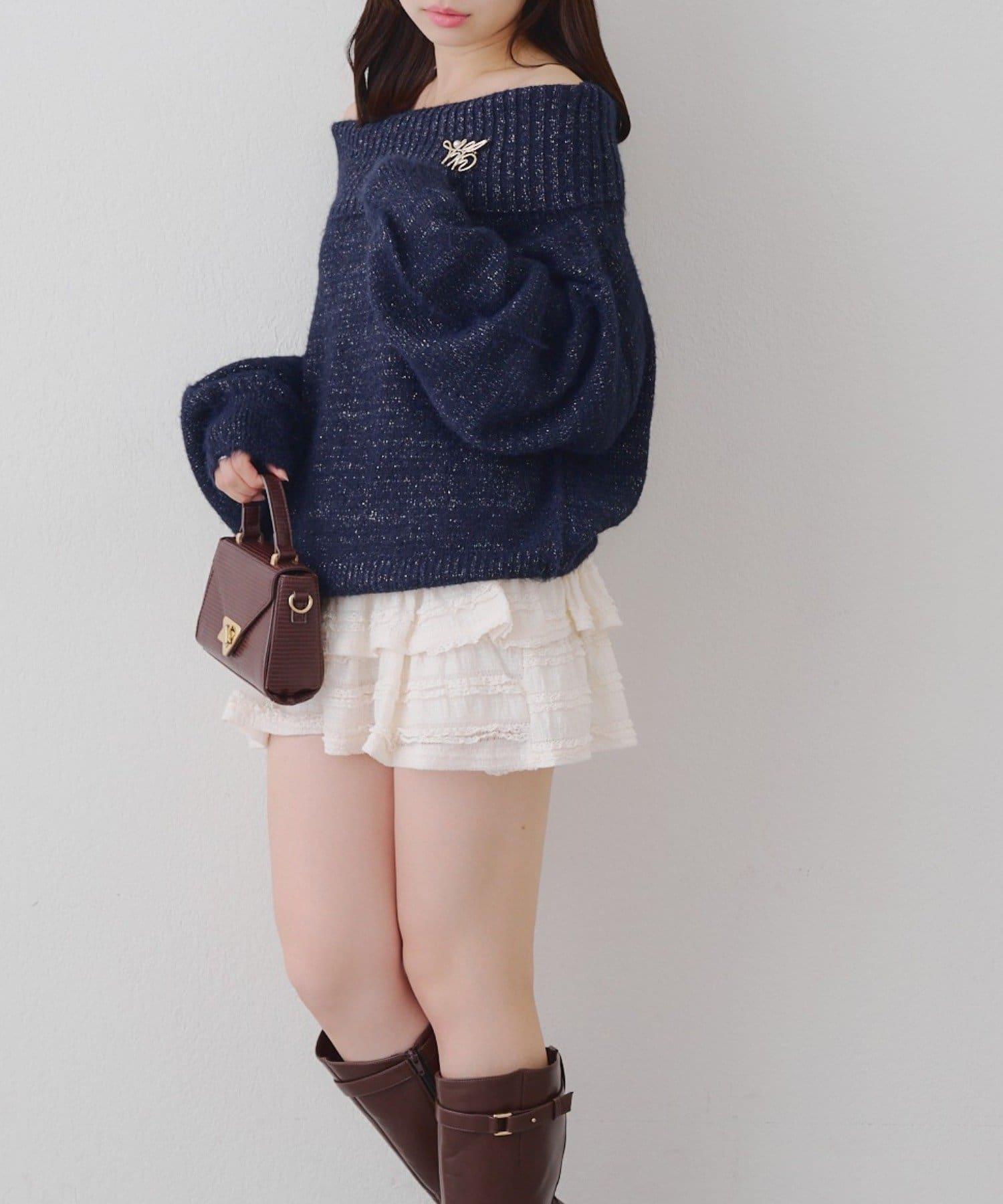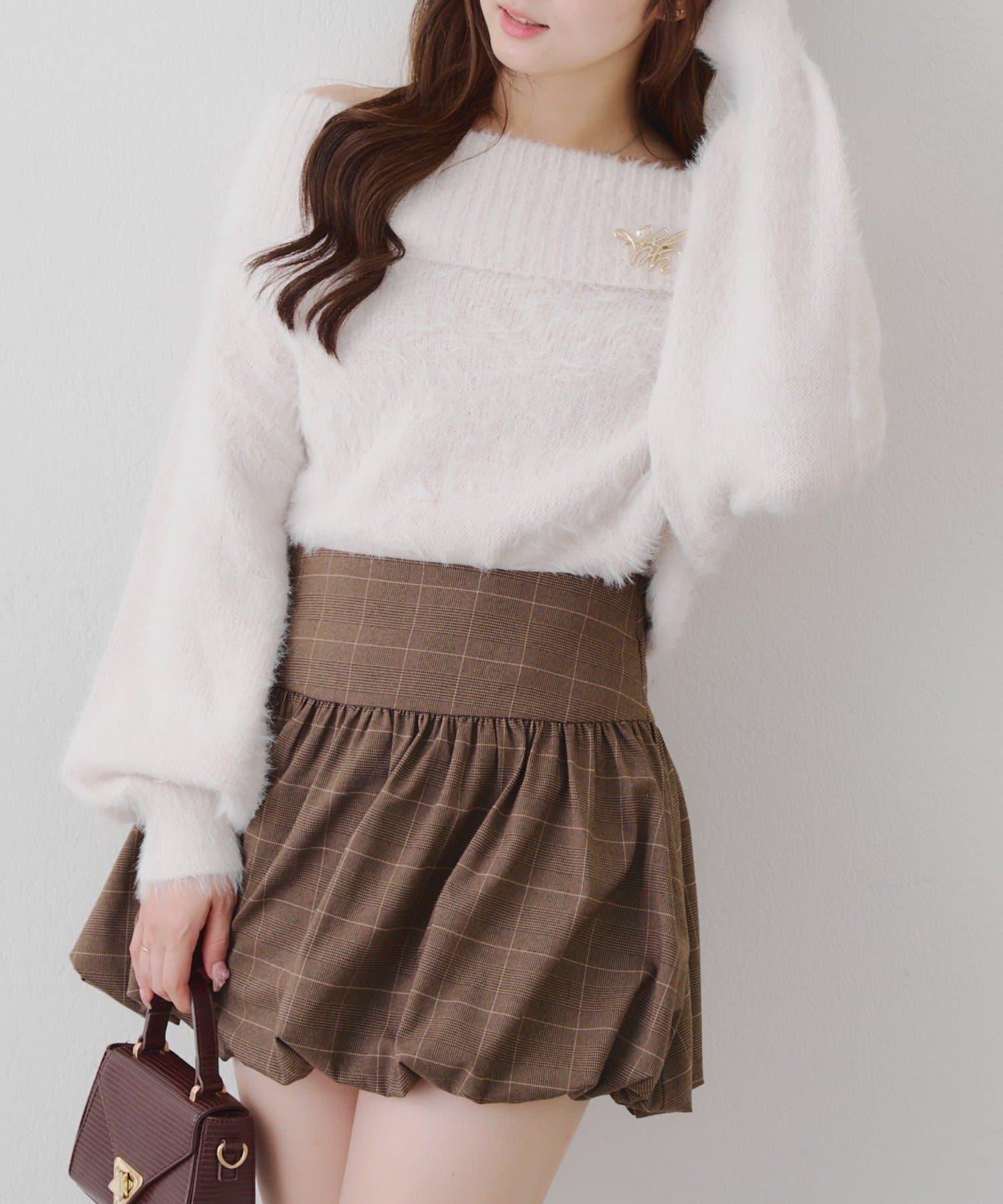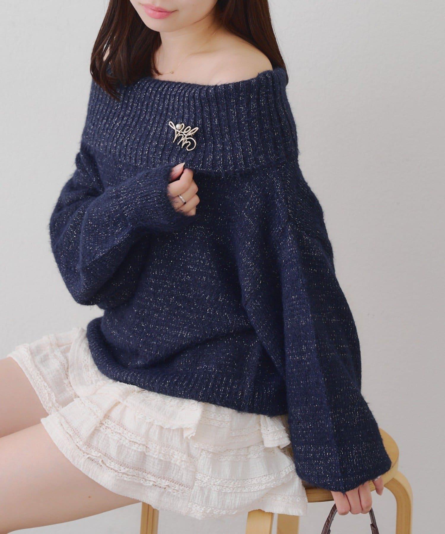 上衣配有可拆卸胸針,露肩設計十分可愛。