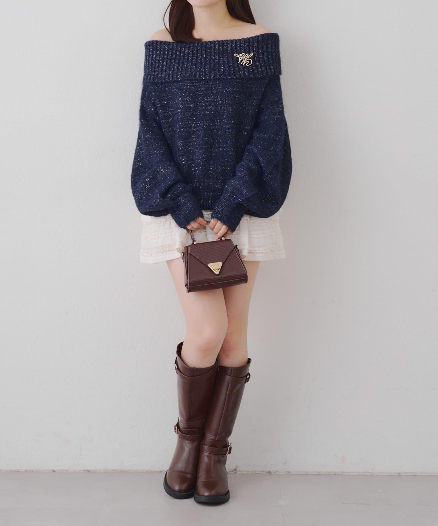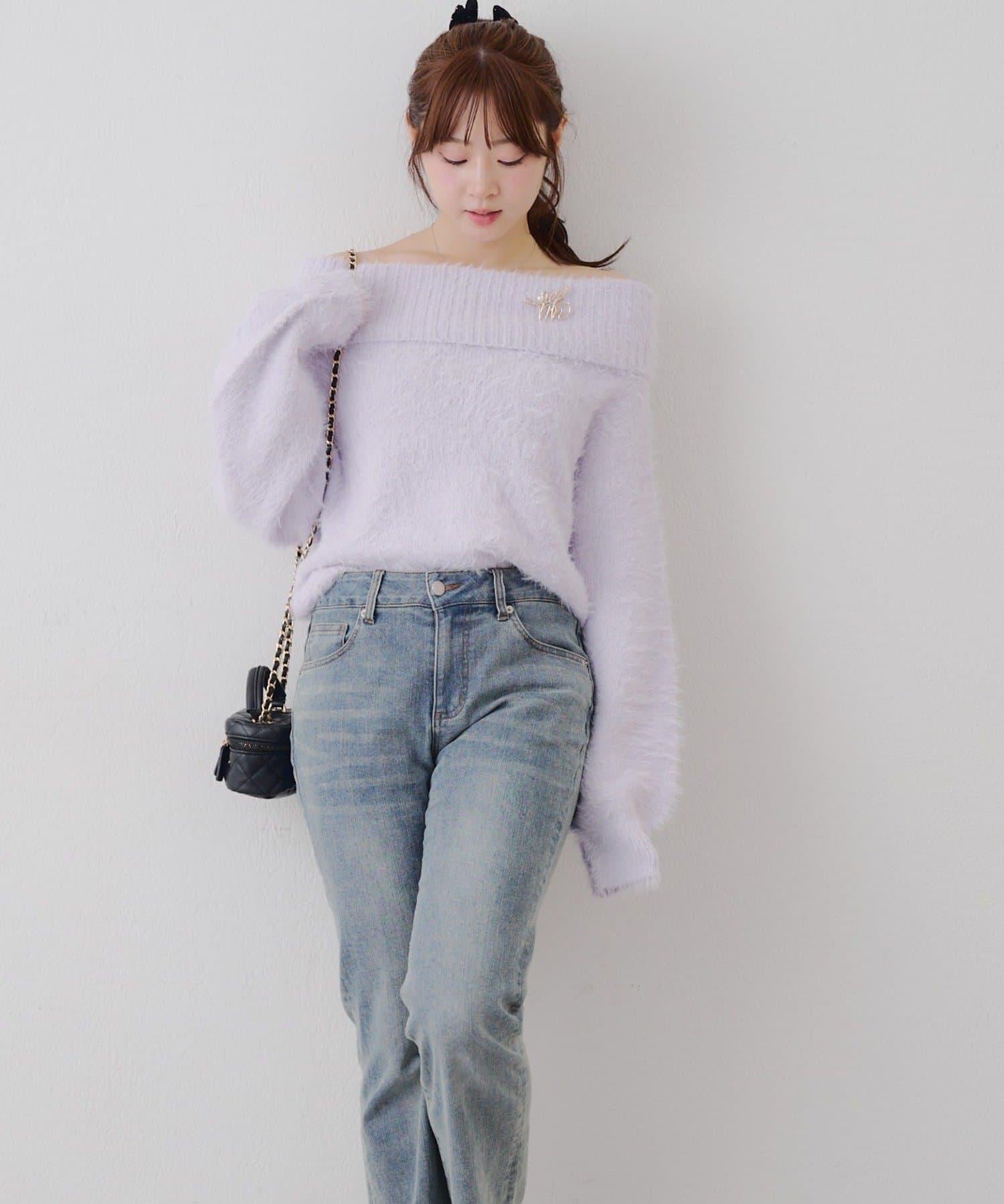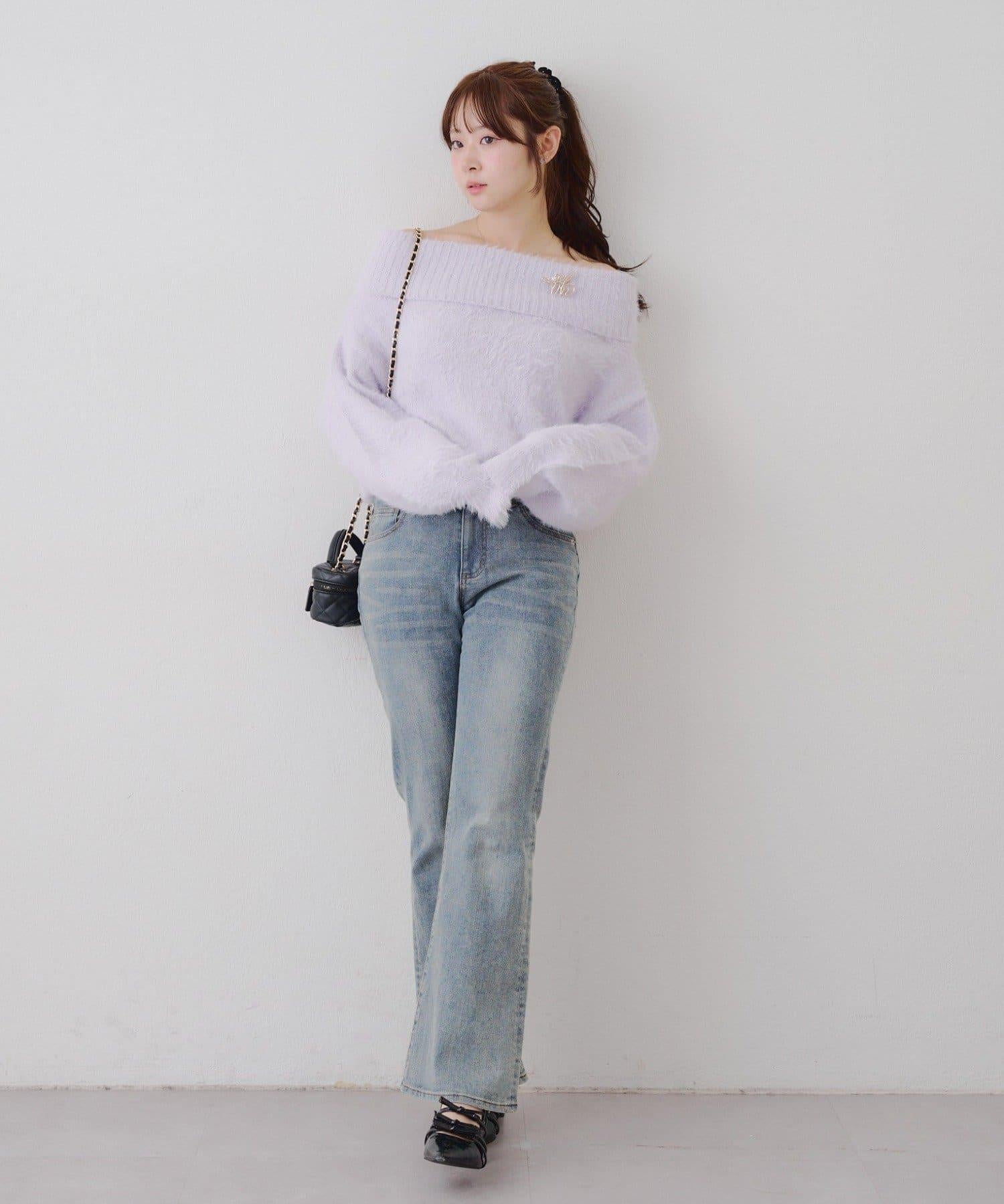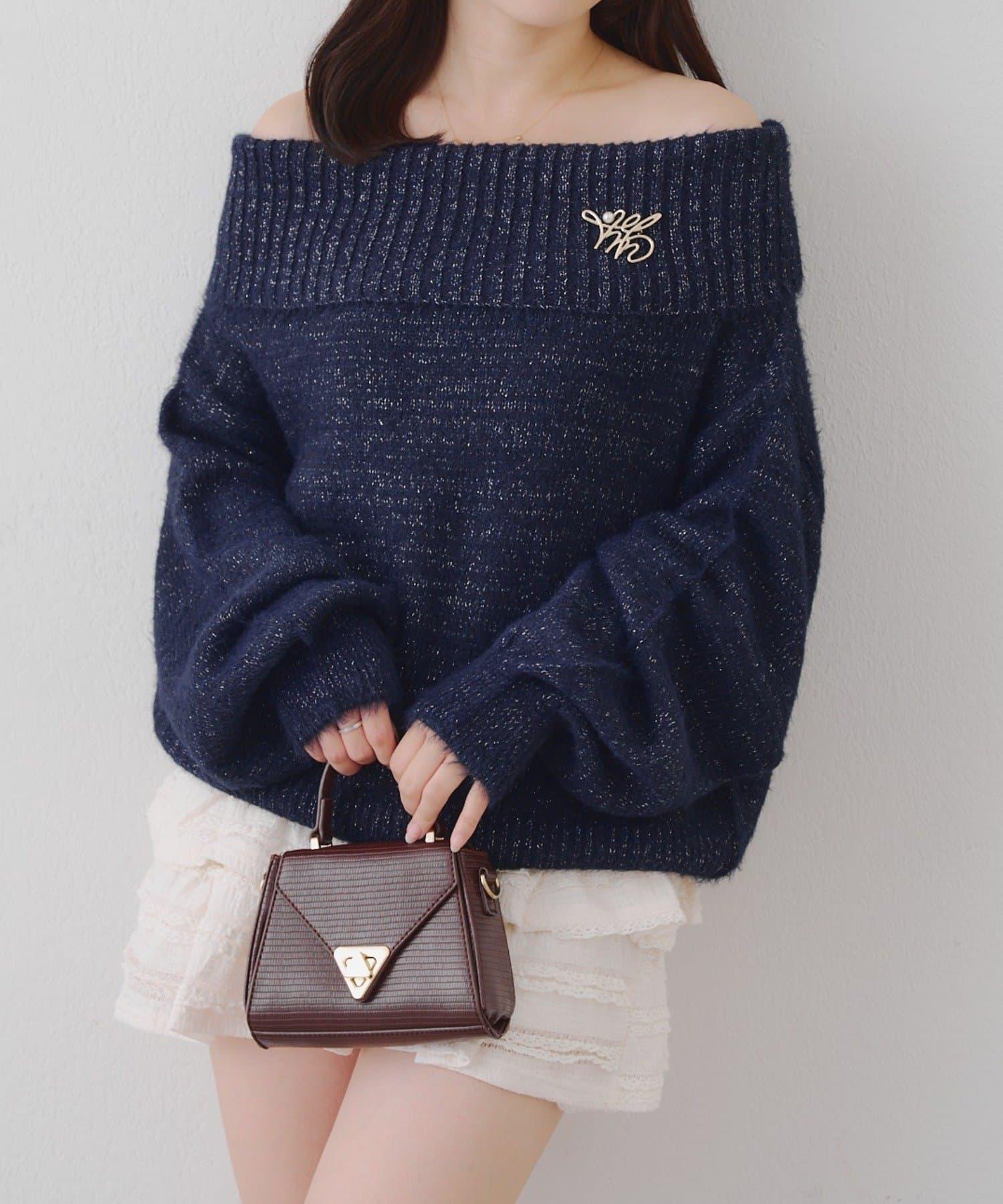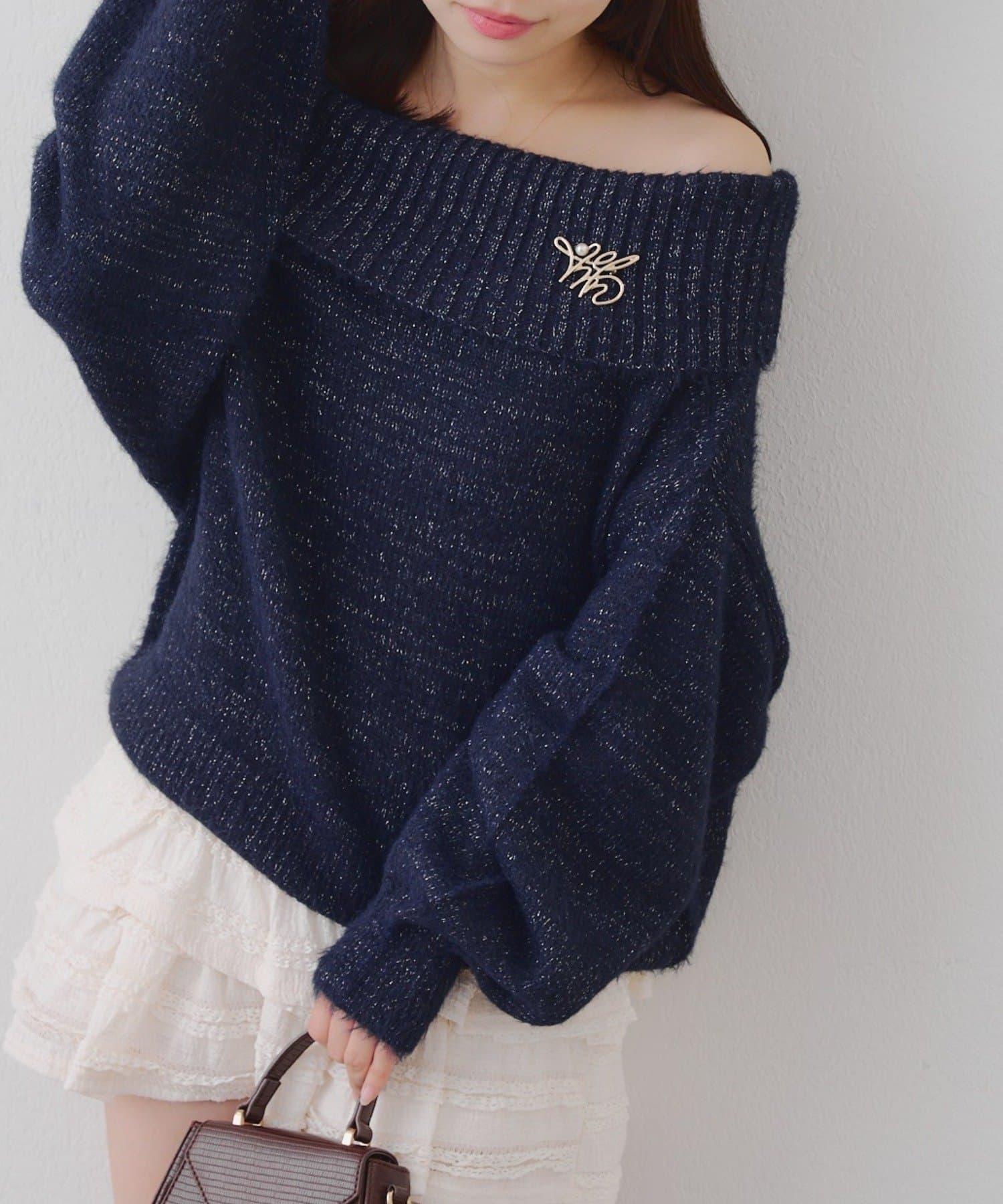 上衣配有可拆卸胸針,露肩設計十分可愛。