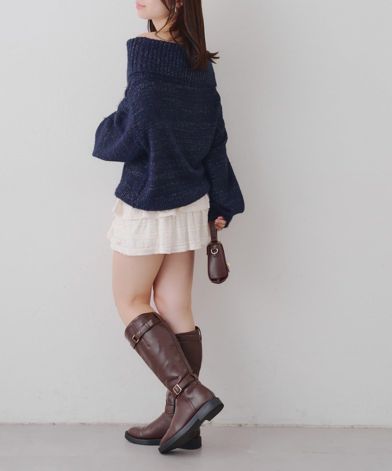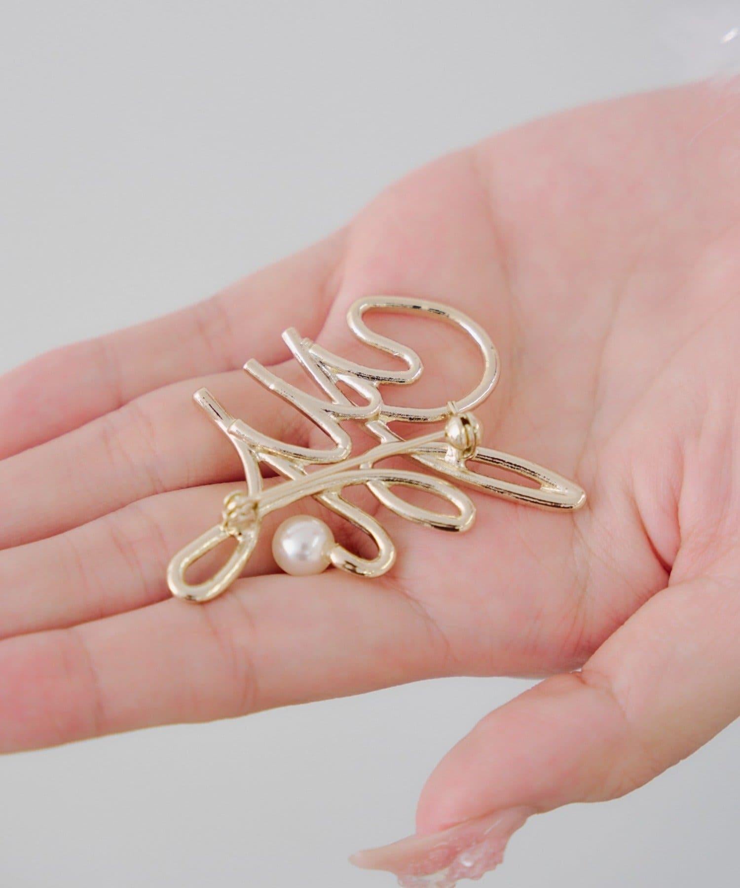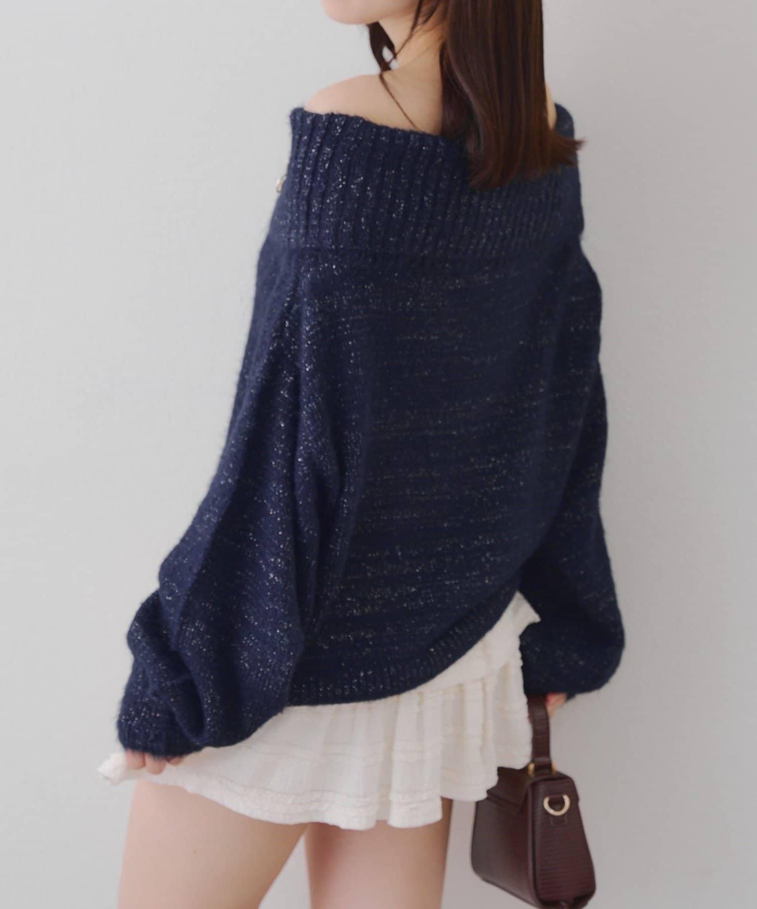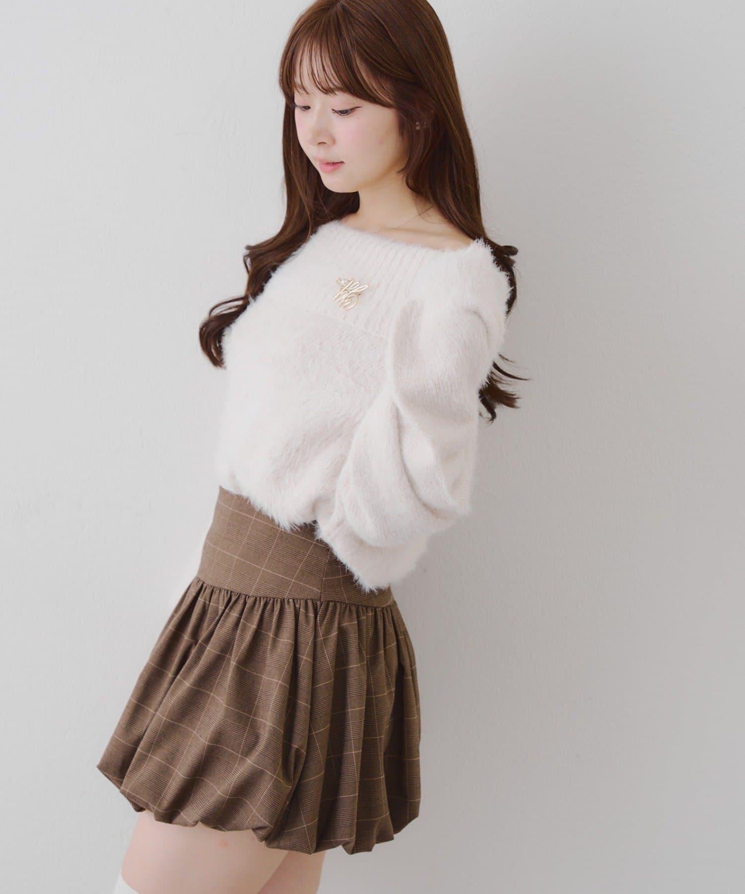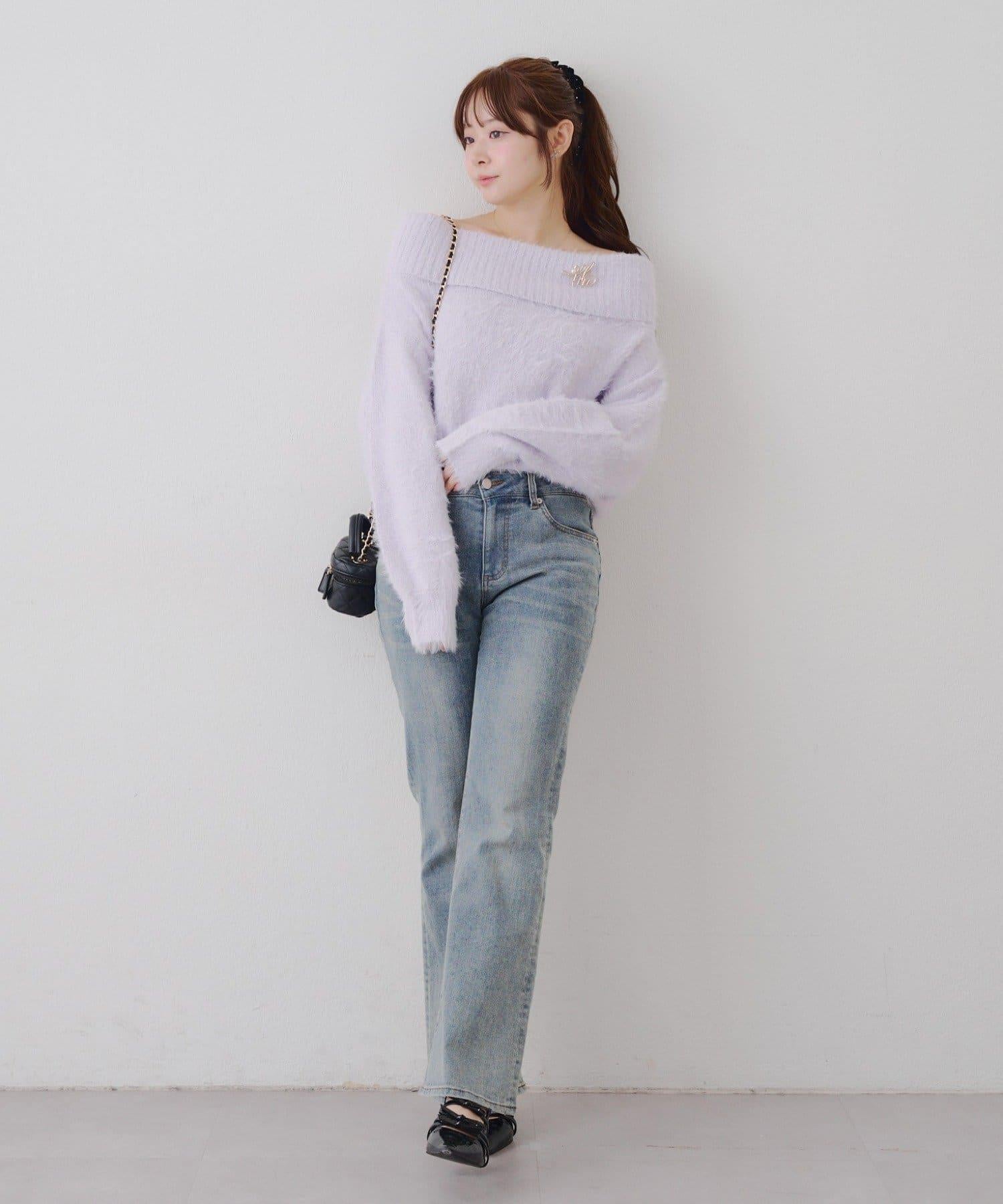 上衣配有可拆卸胸針,露肩設計十分可愛。