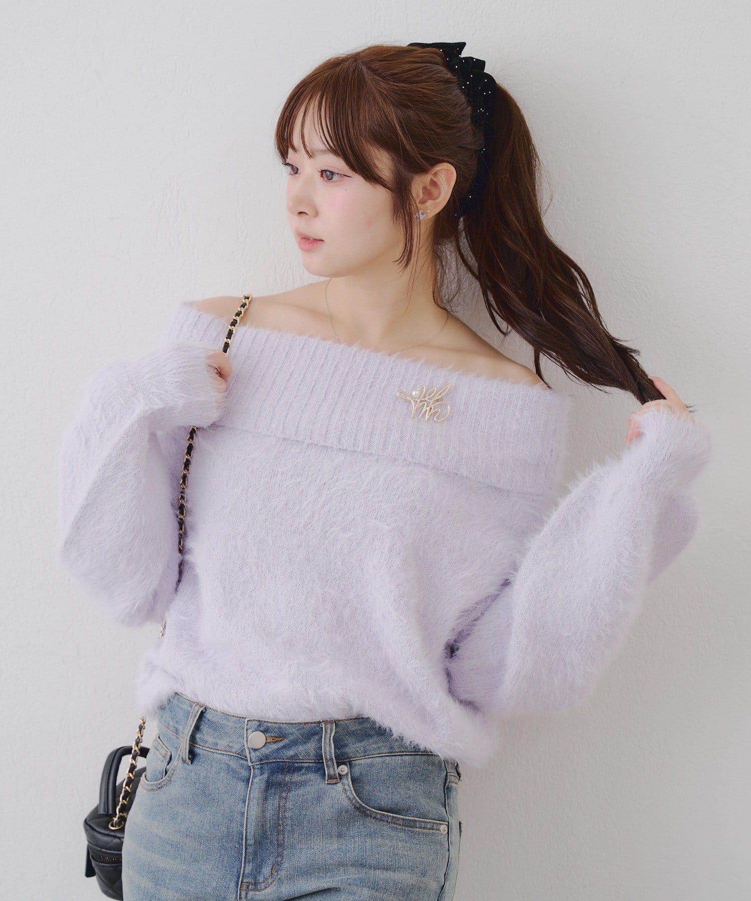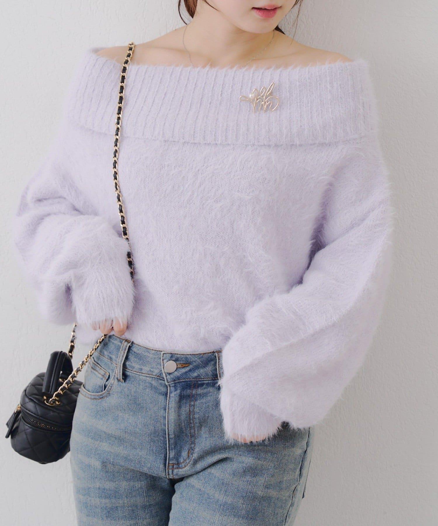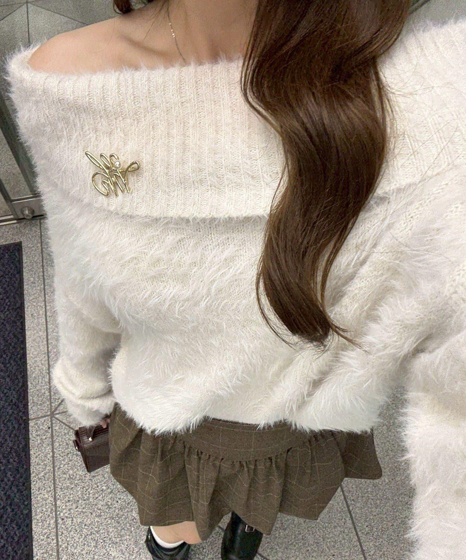 毛茸茸的針織上衣,配有可拆卸胸針。