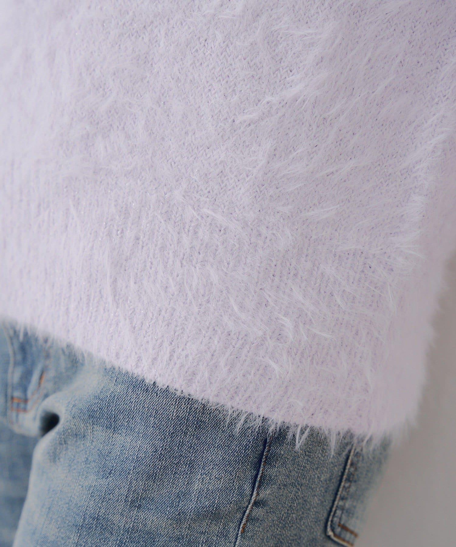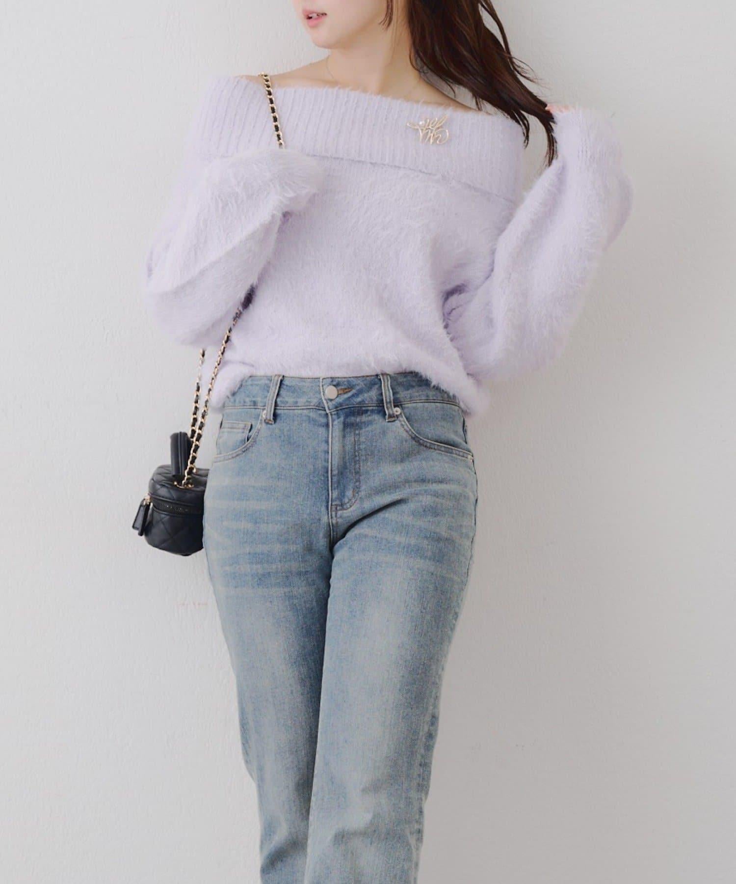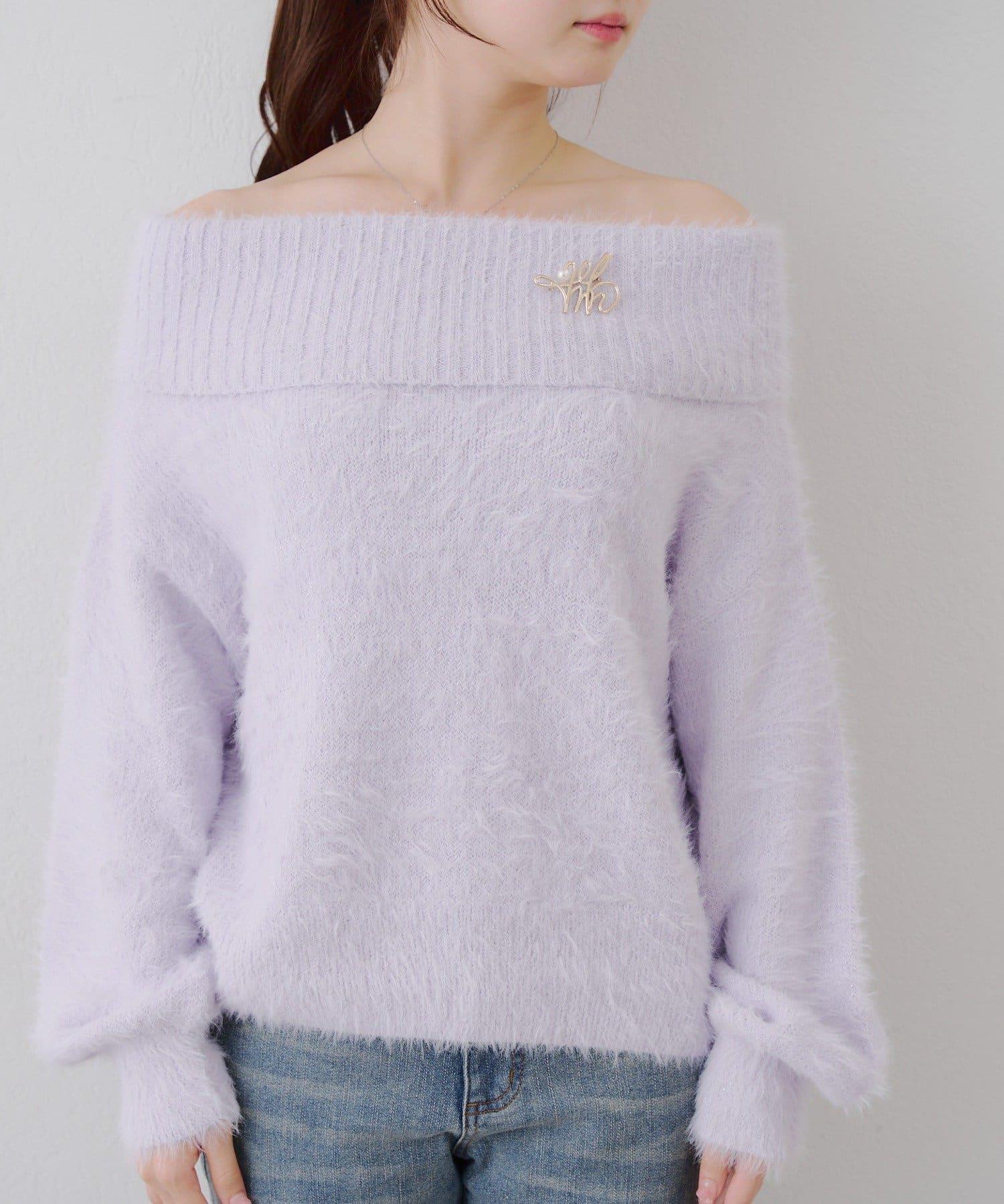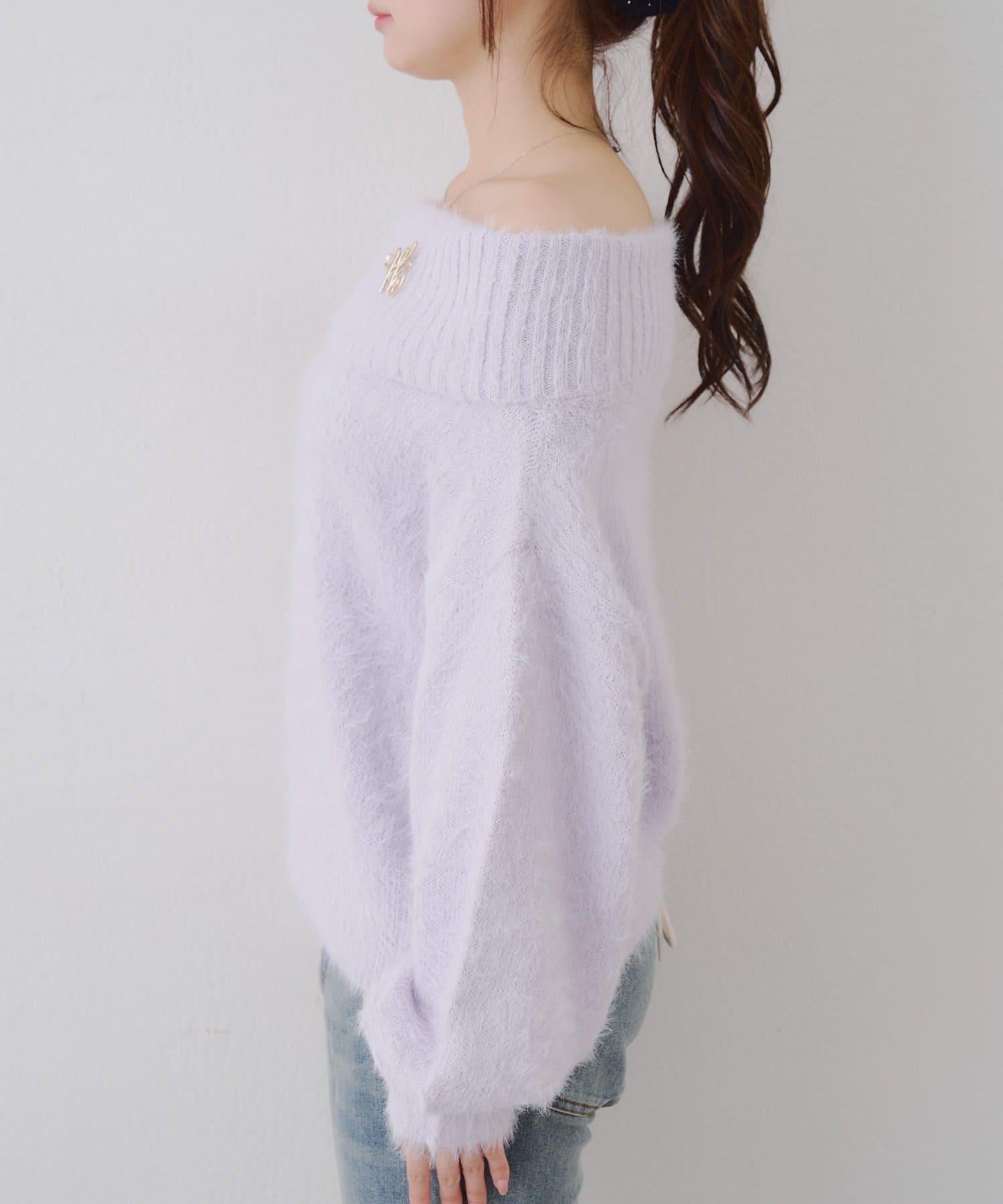 毛茸茸的針織上衣,配有可拆卸胸針。