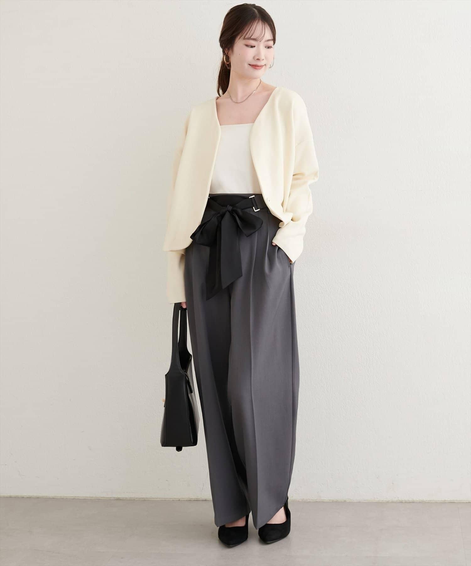 繫上絲帶,在腰部做出標記,塑造出利落的輪廓。