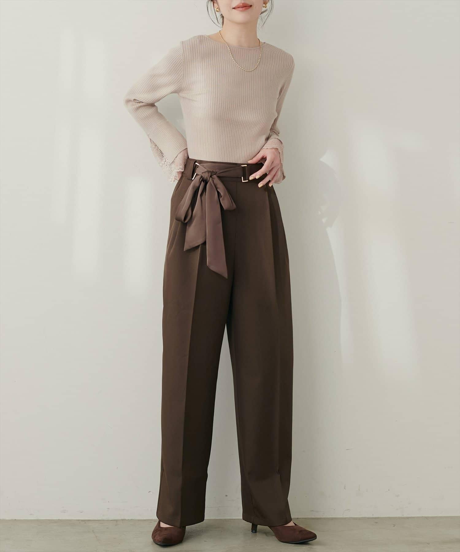 帶腰部緞帶的中壓式長褲,適合成熟的成年女性。