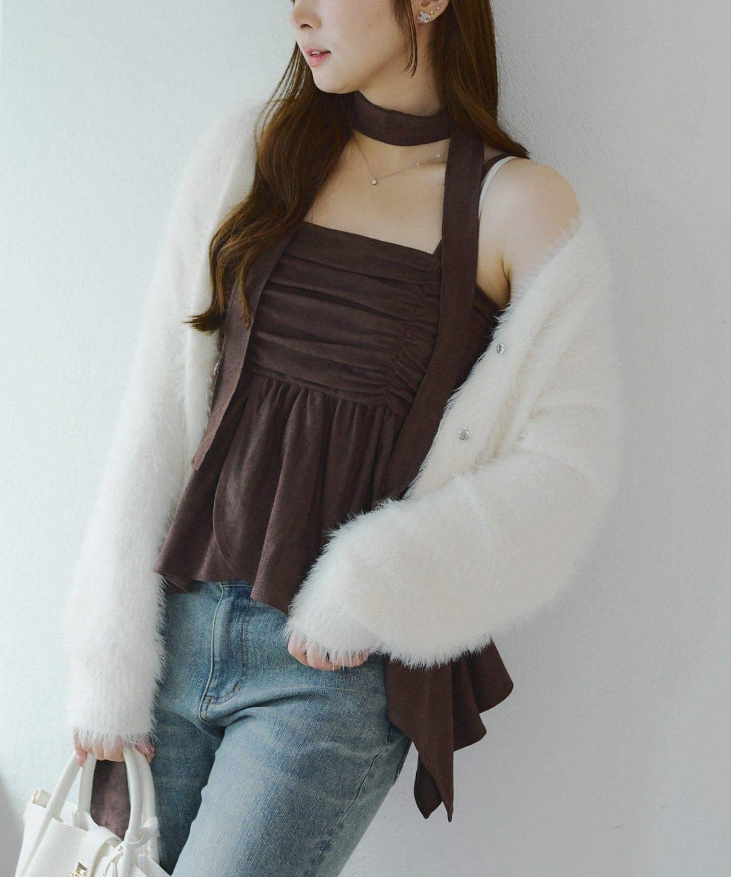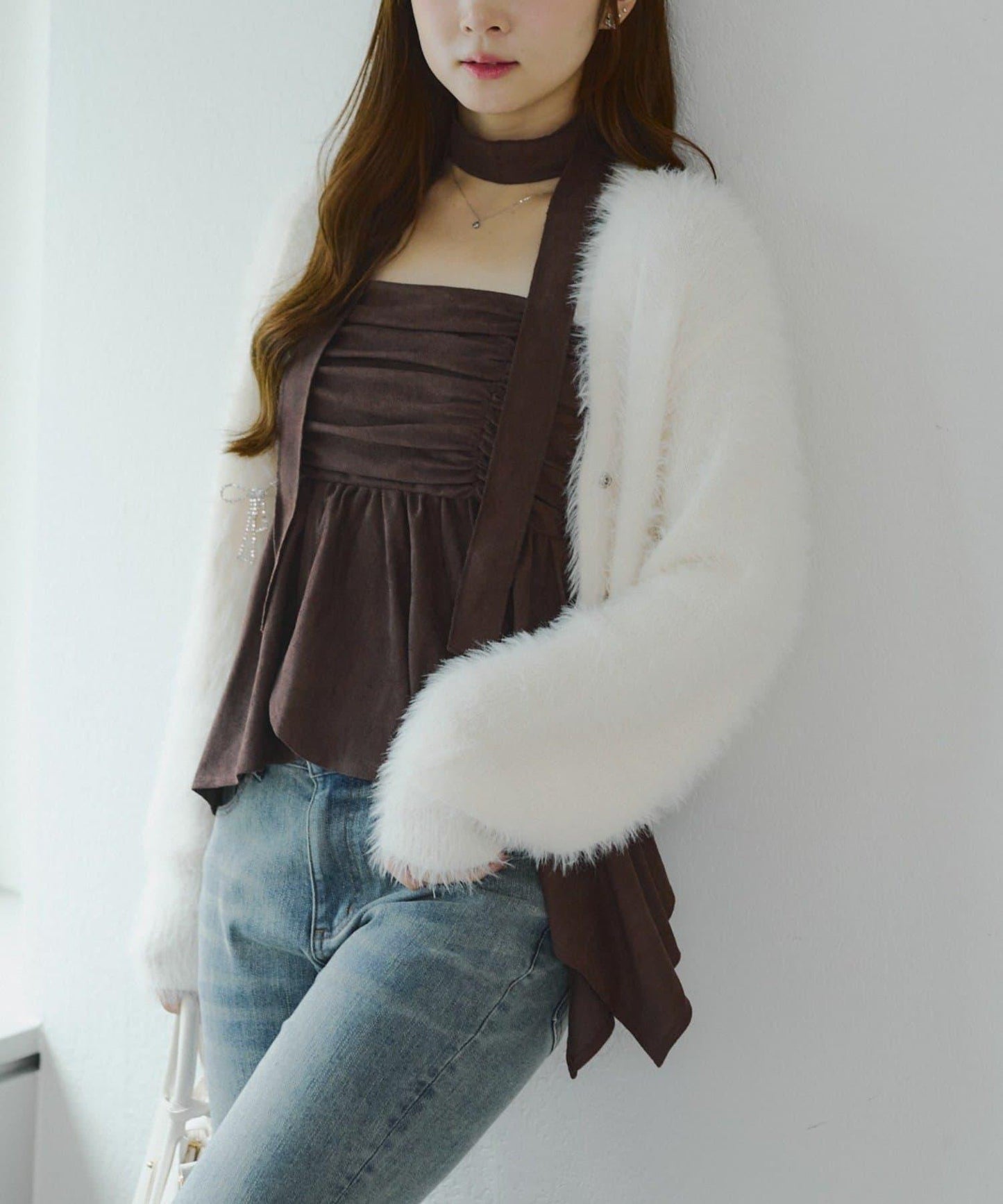 秋冬季節,可在蕾絲或薄紗 T 恤上疊穿一件開衫,打造嫵媚造型。