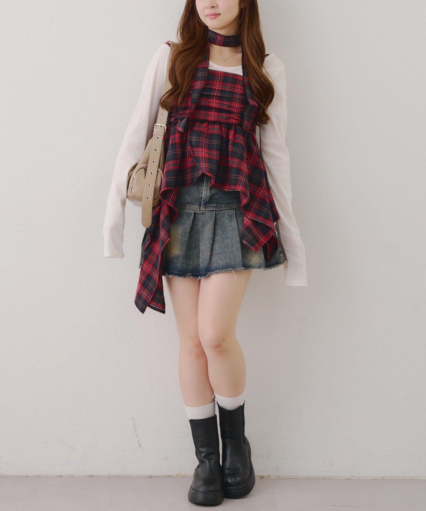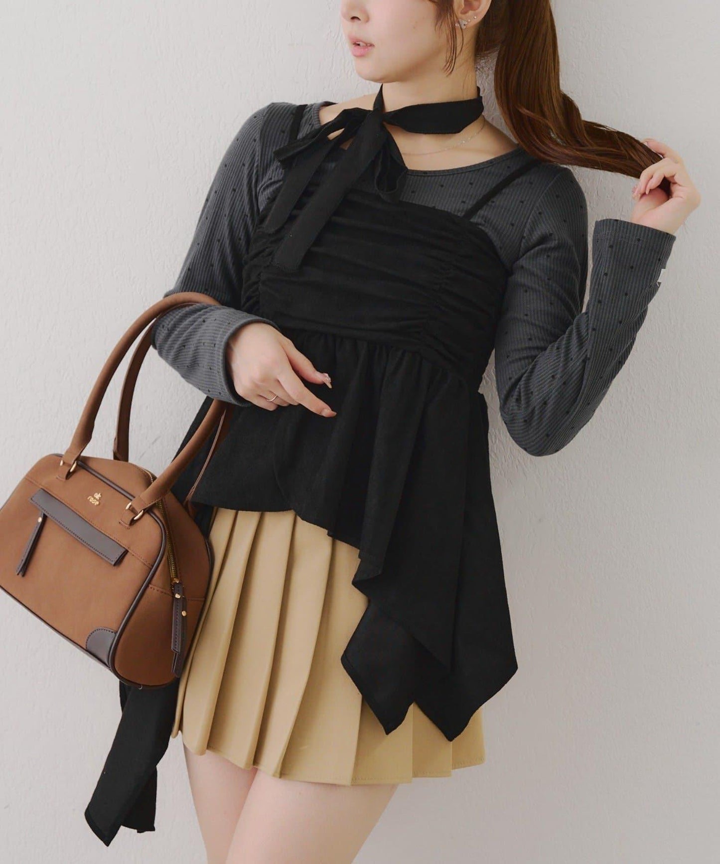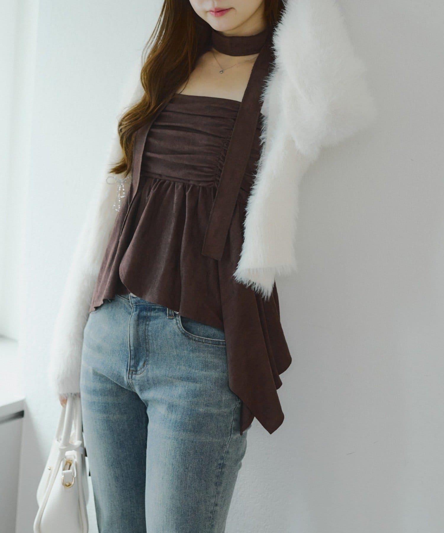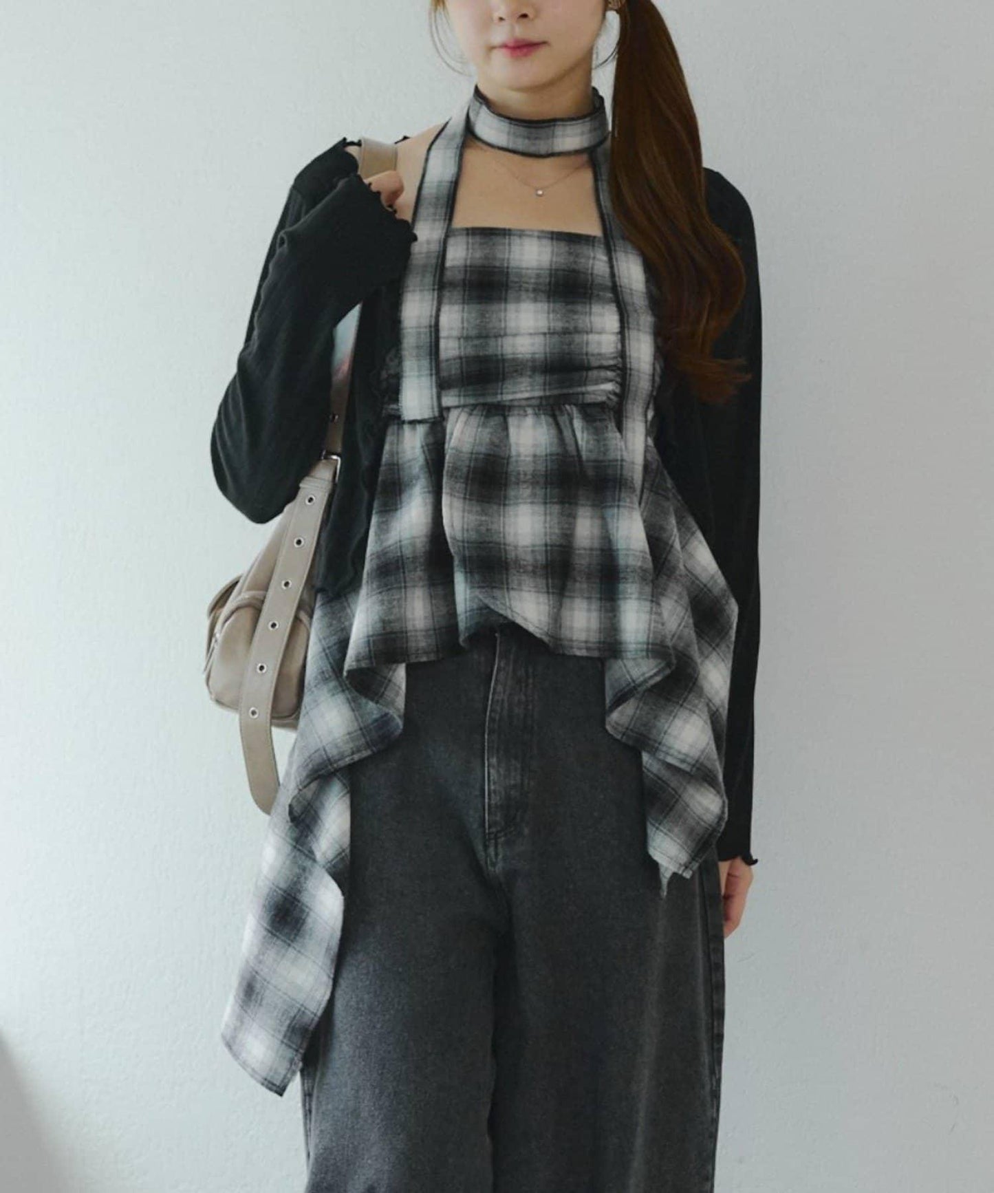 附項鍊頸圈設計顯身材【RMAF】不對稱下襬吊帶長款上衣