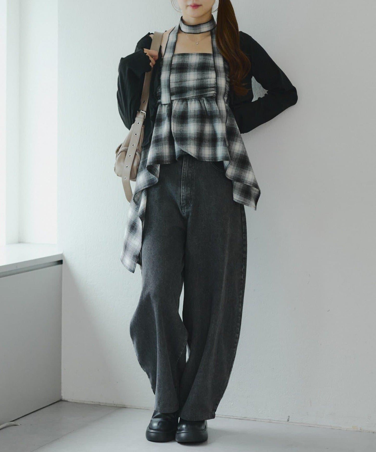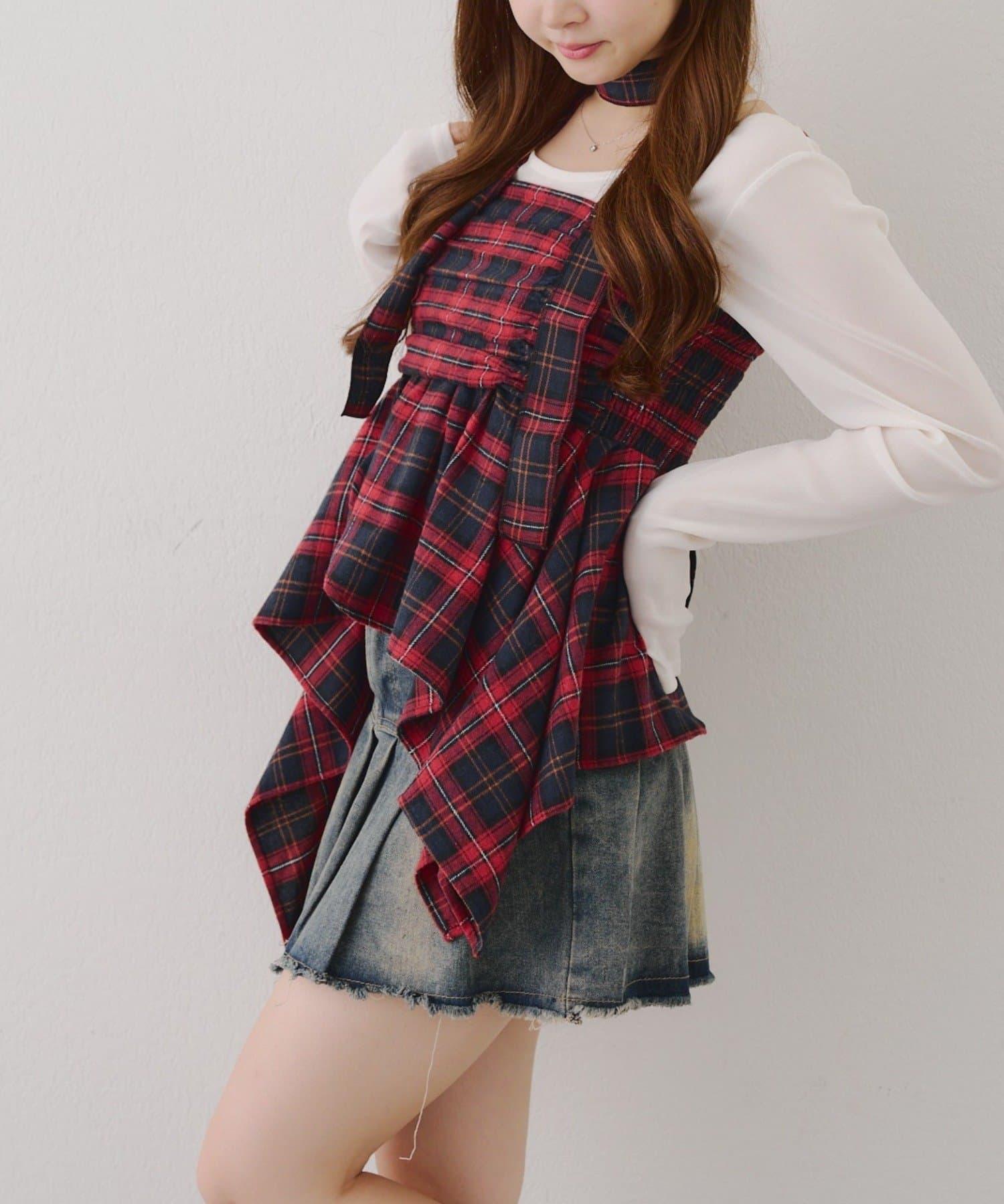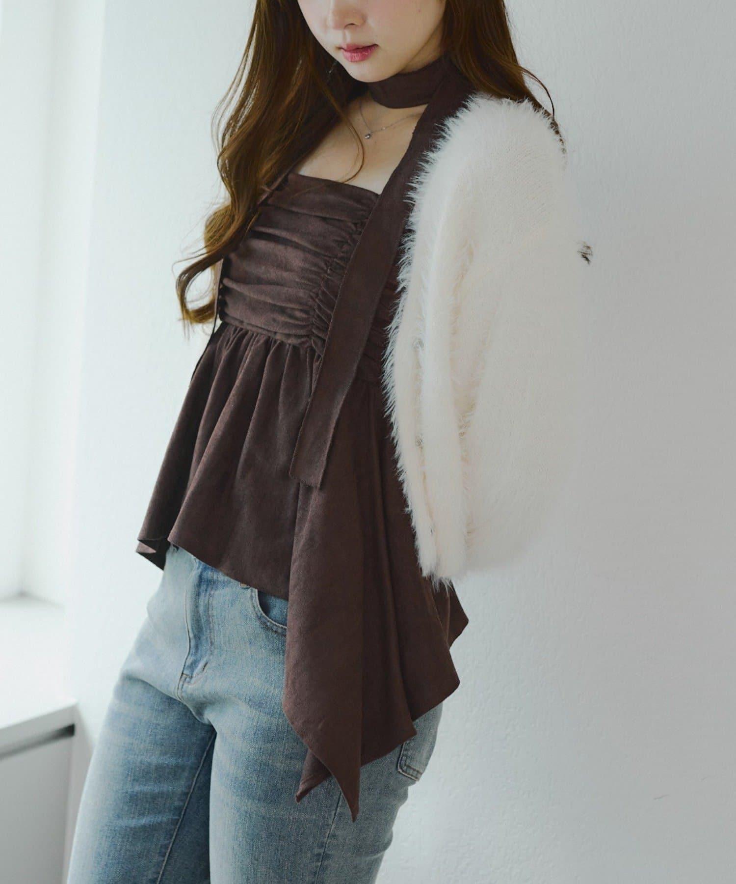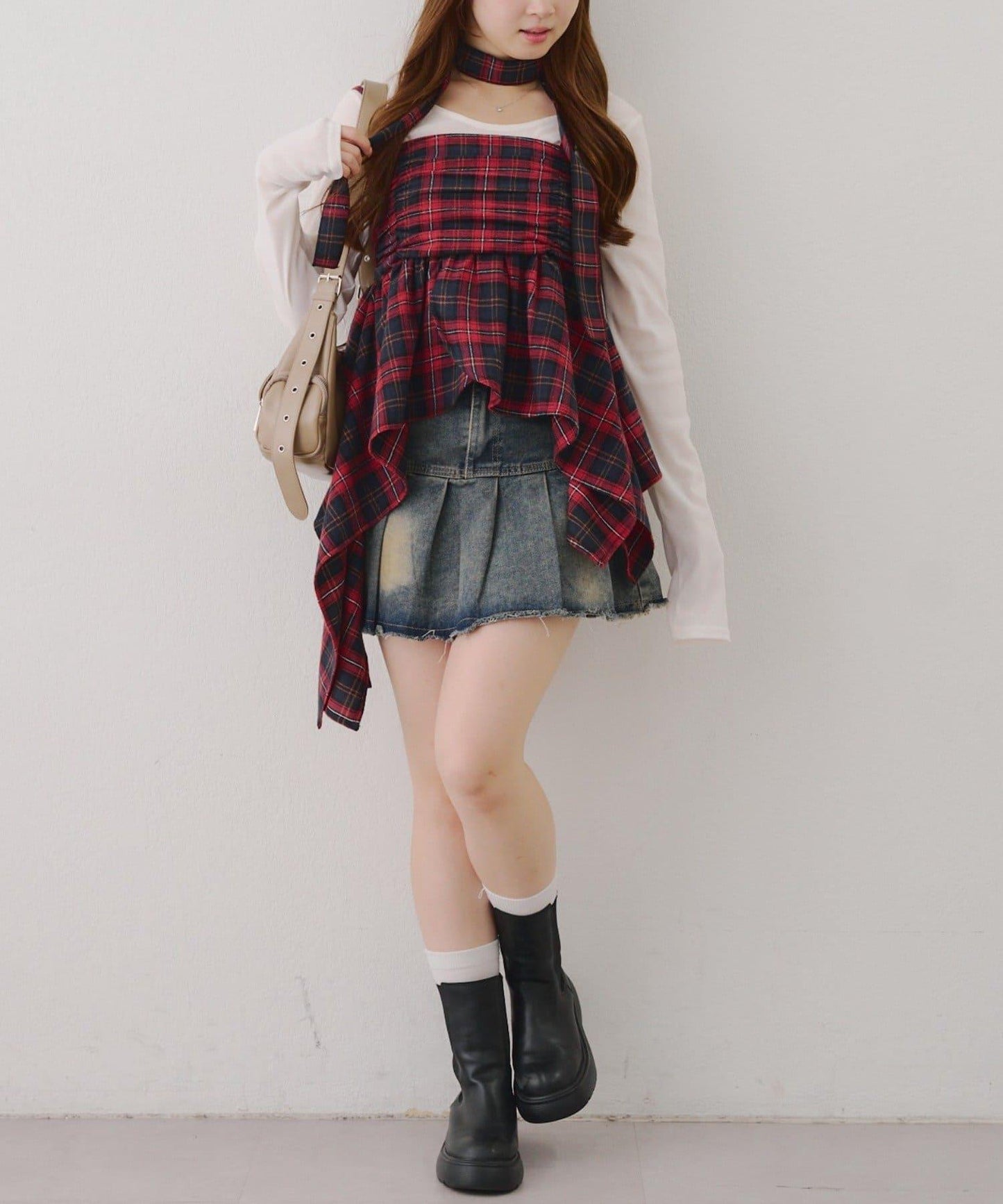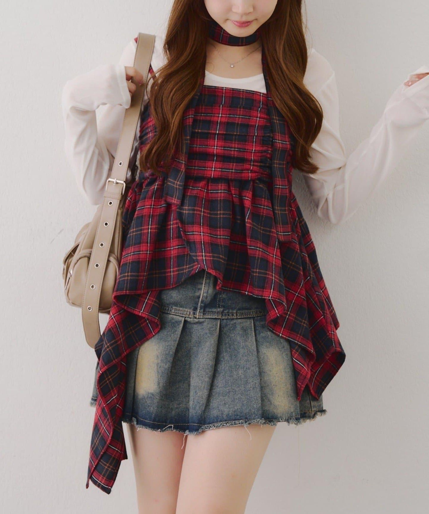 附項鍊頸圈設計顯身材【RMAF】不對稱下襬吊帶長款上衣