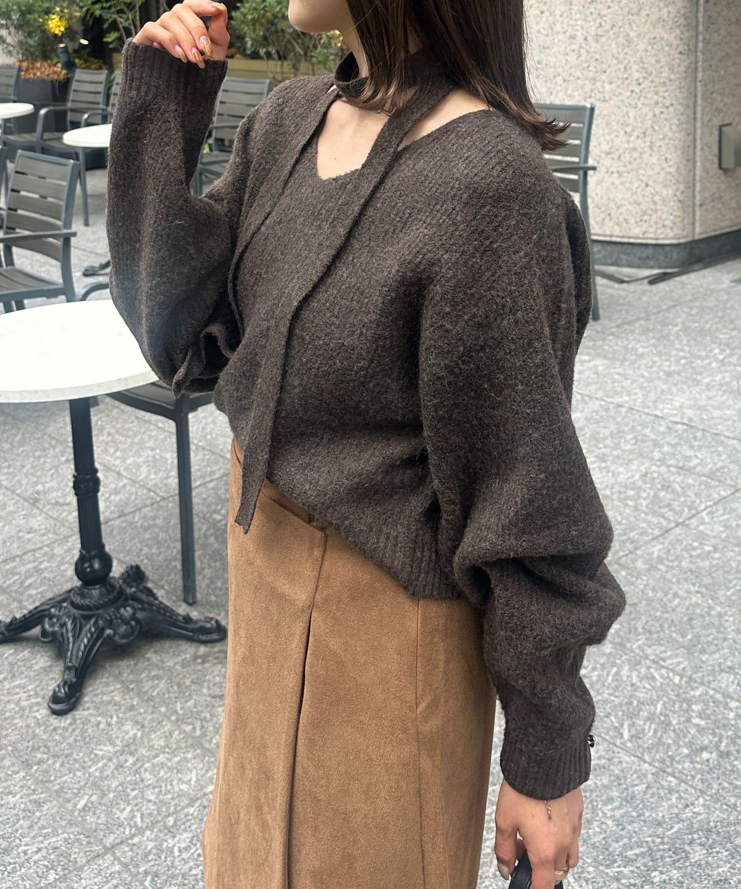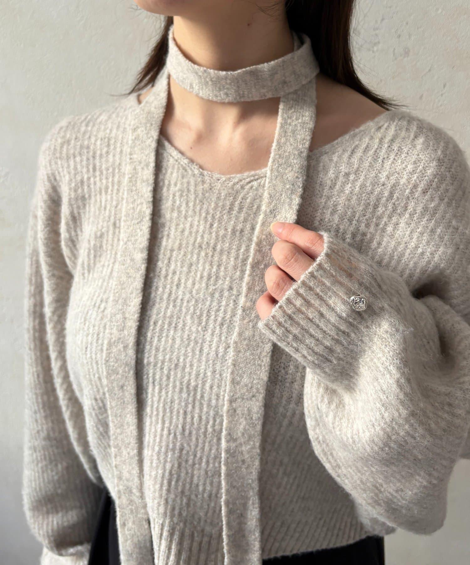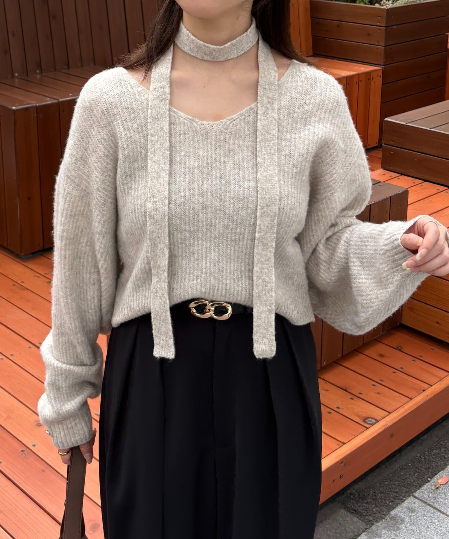 附項鍊V領針織衫