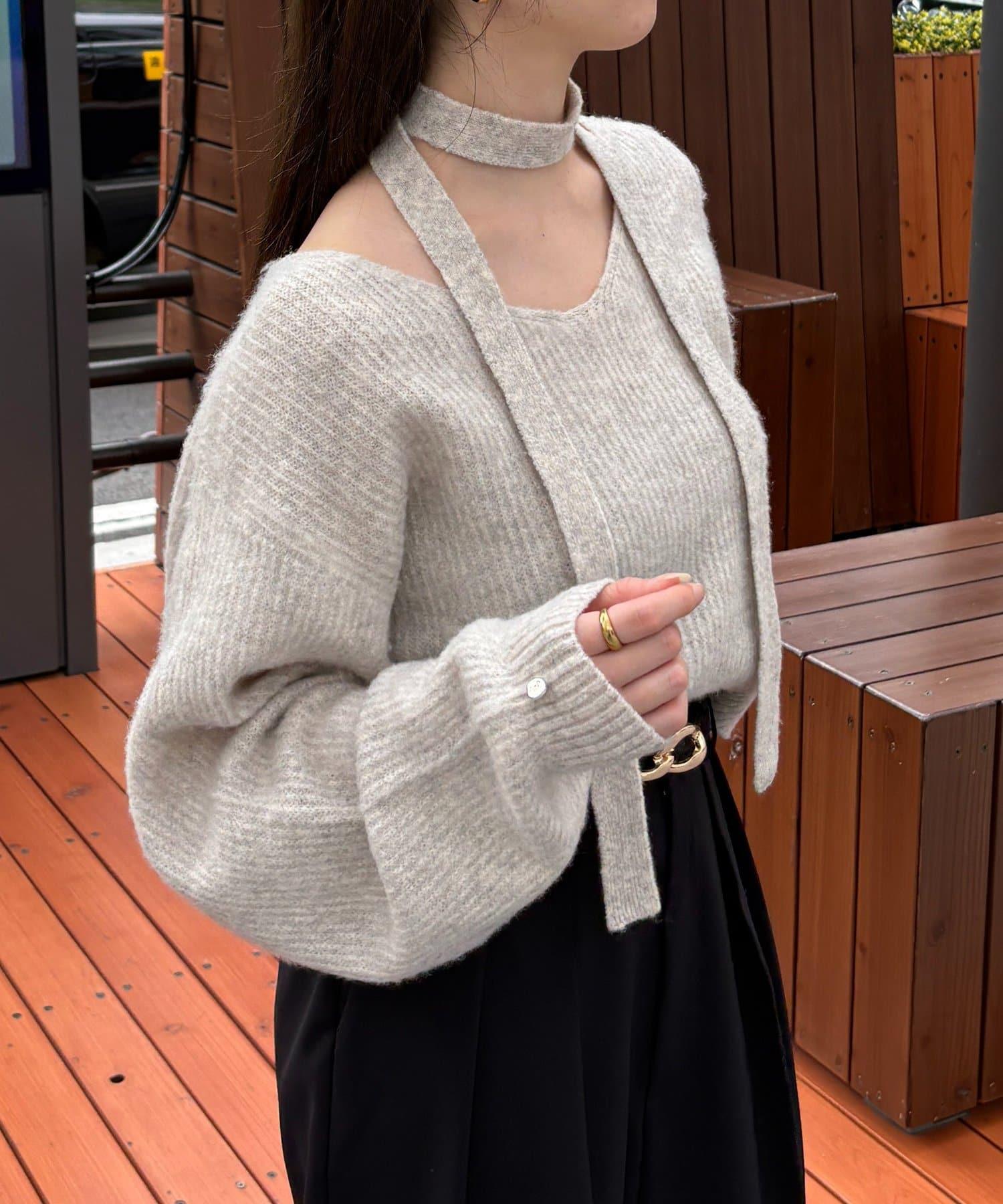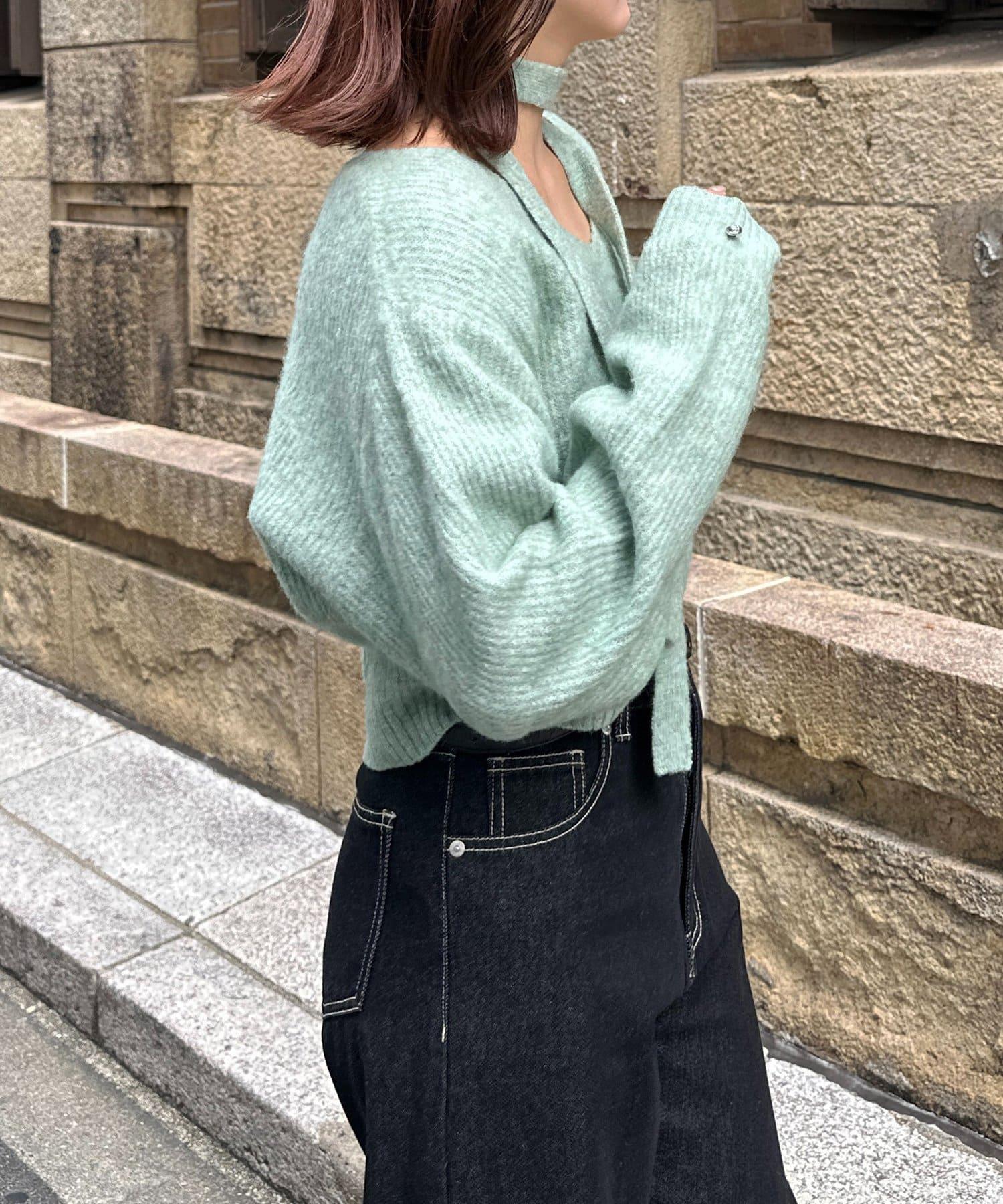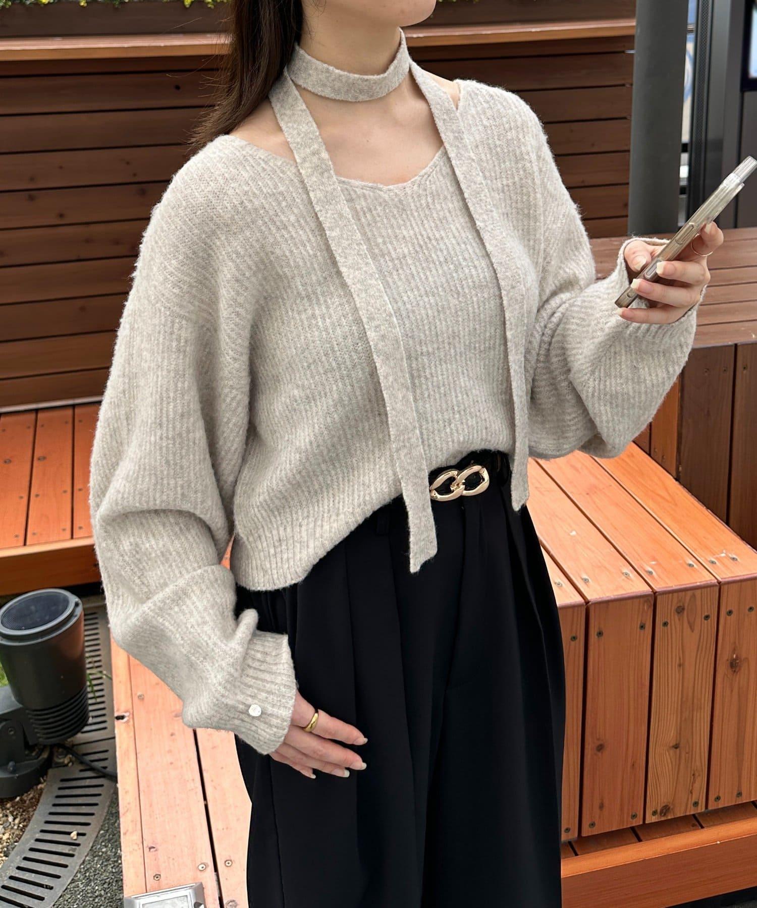 附項鍊V領針織衫
