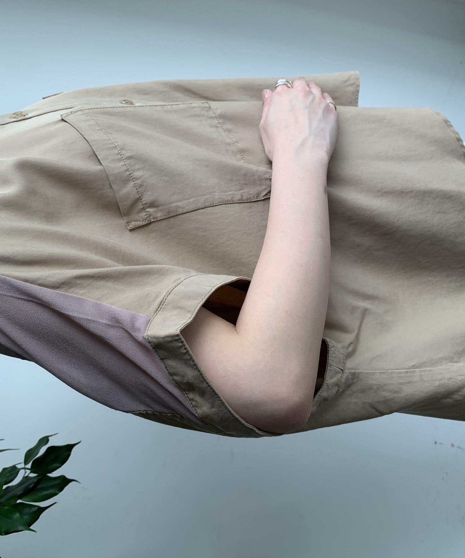 具有成人寬鬆感的襯衫,以不同的材質吸引人。