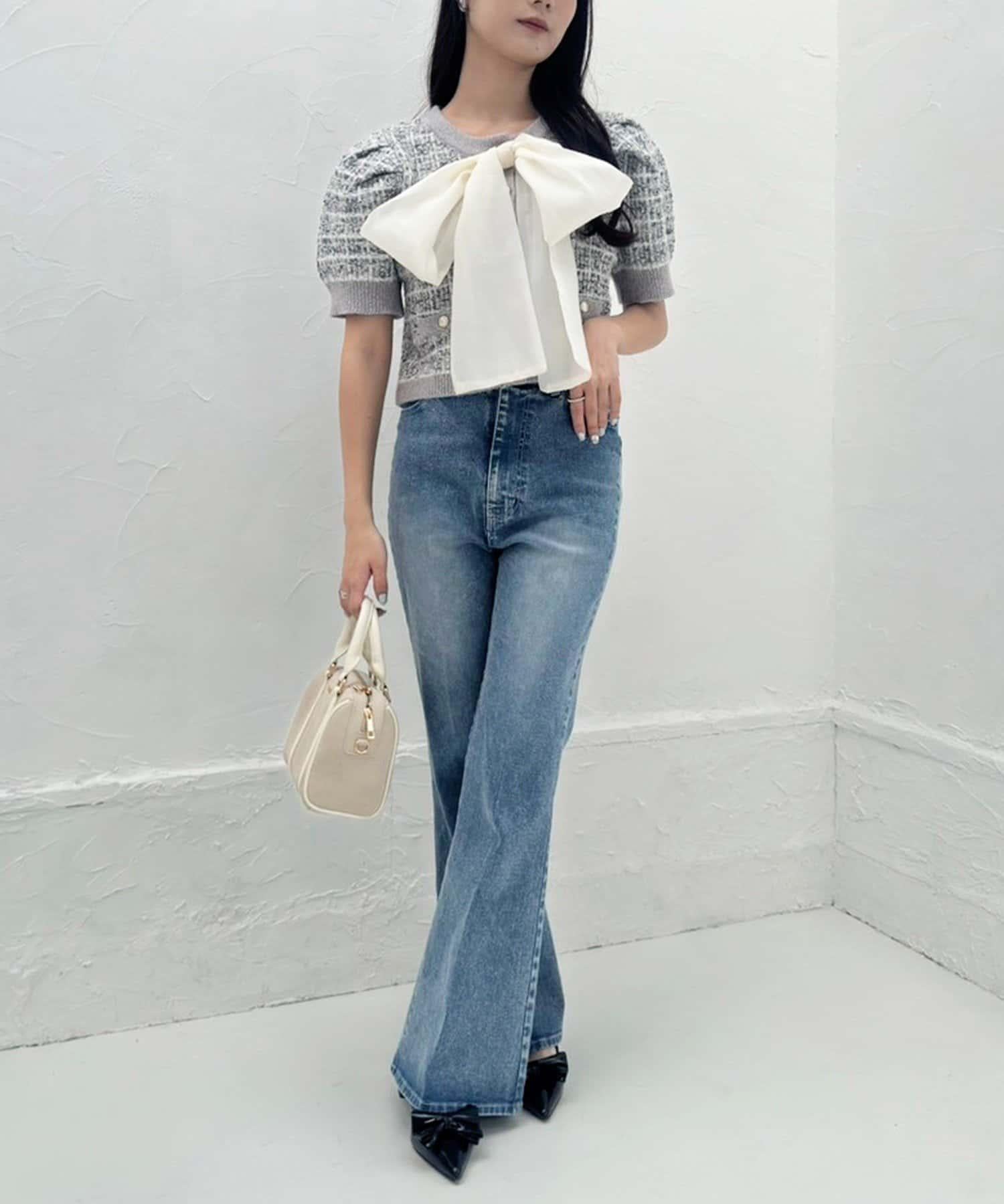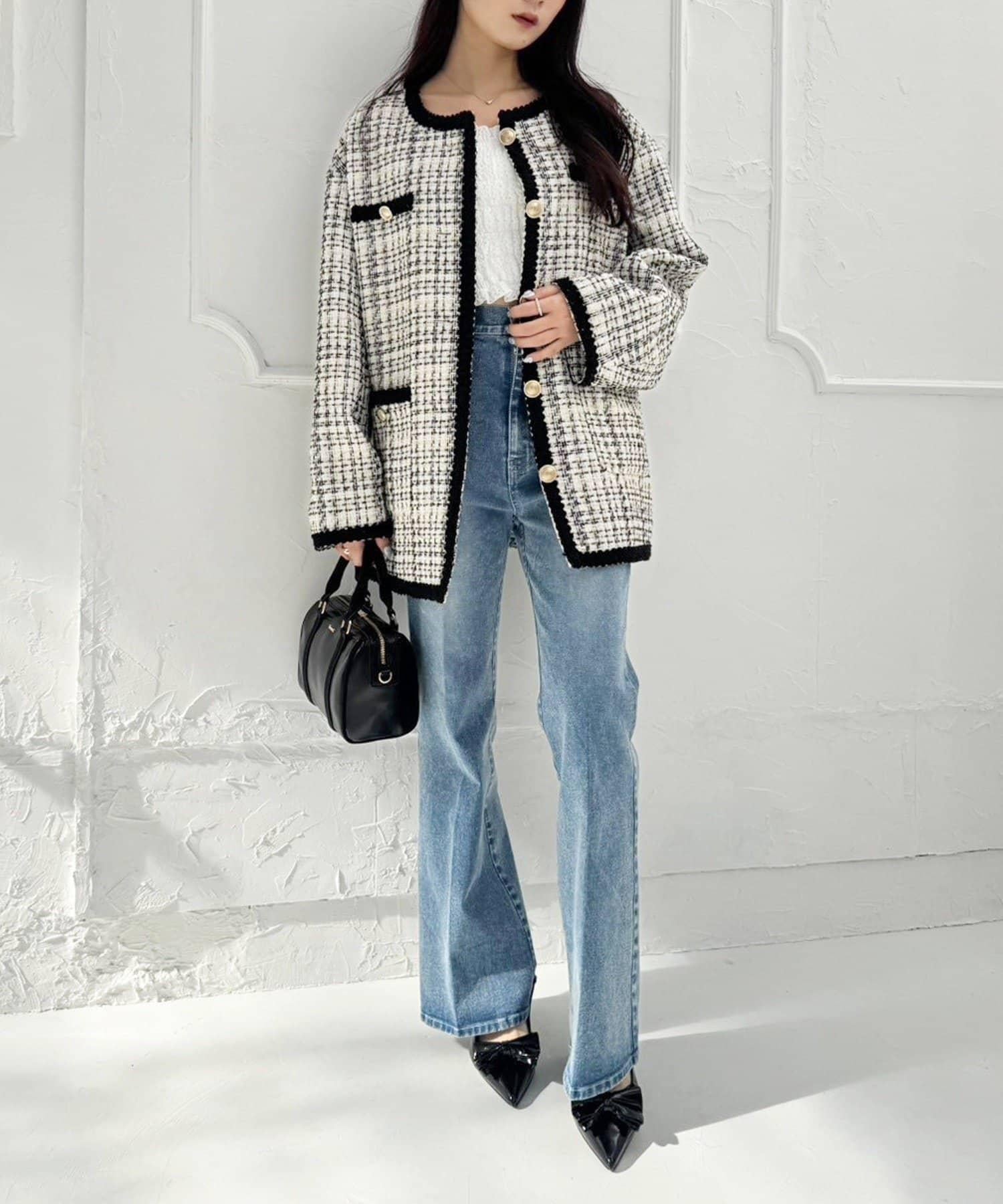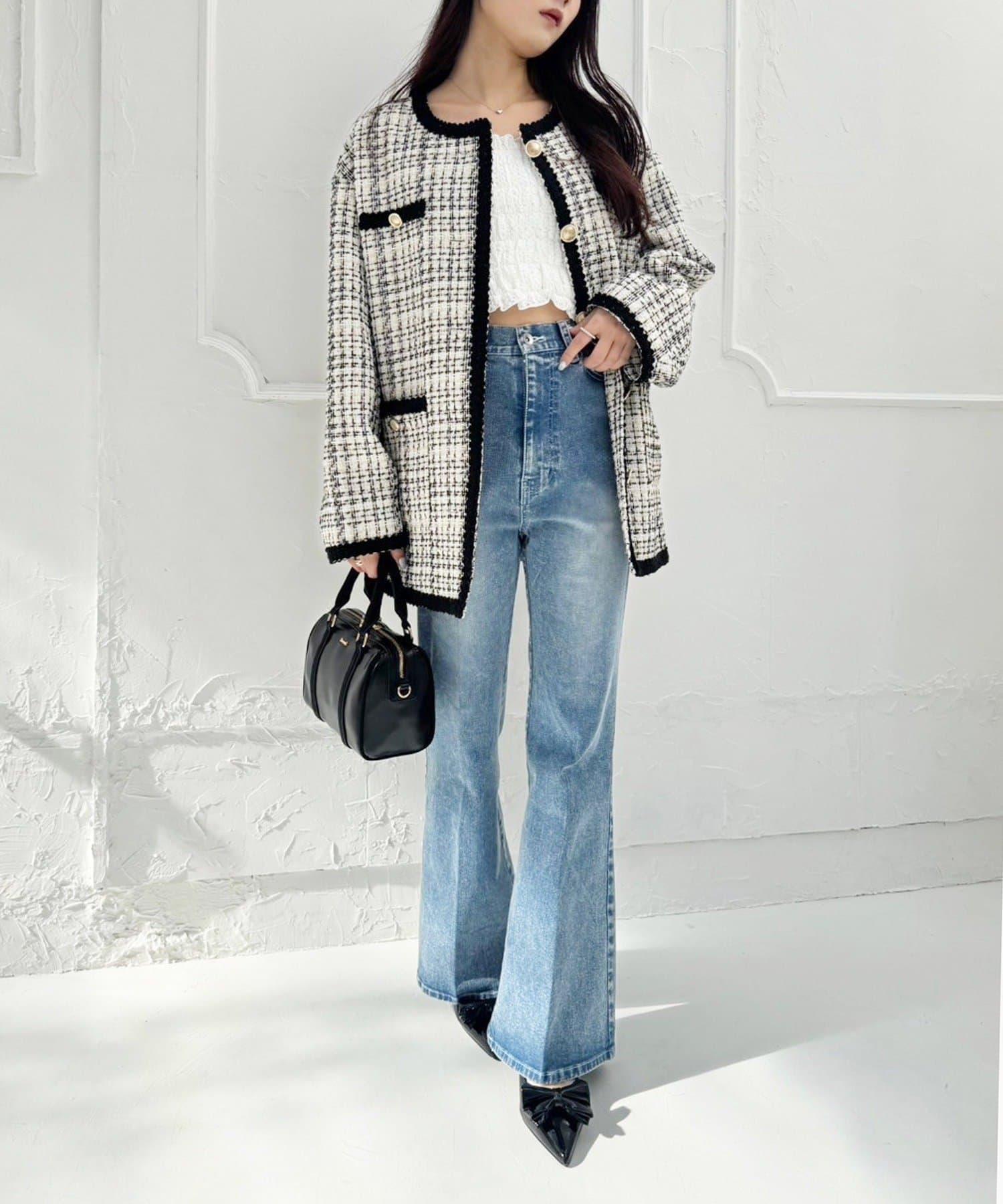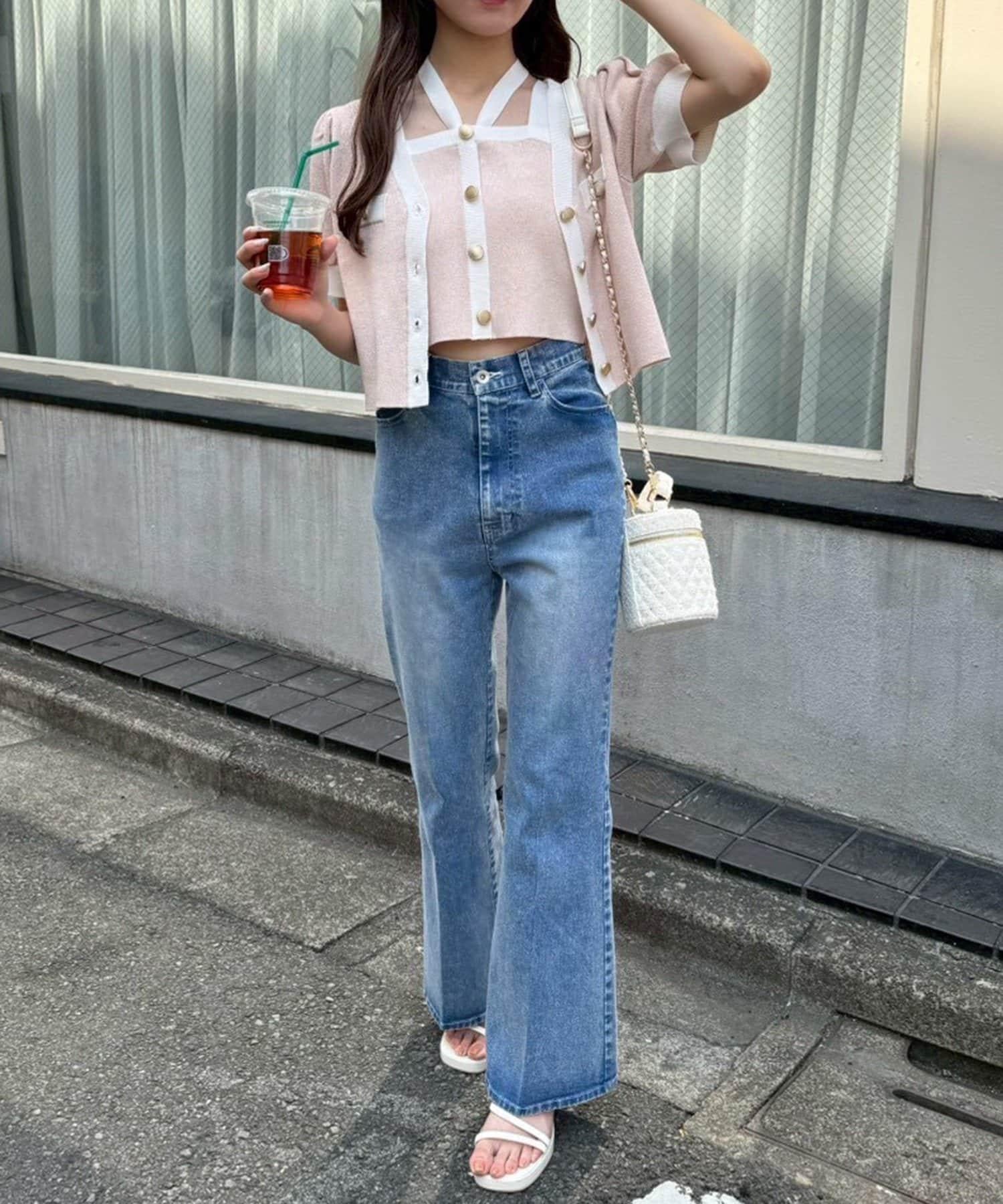 在甜美中加入休閒牛仔,就能打造出法式休閒的協調感。