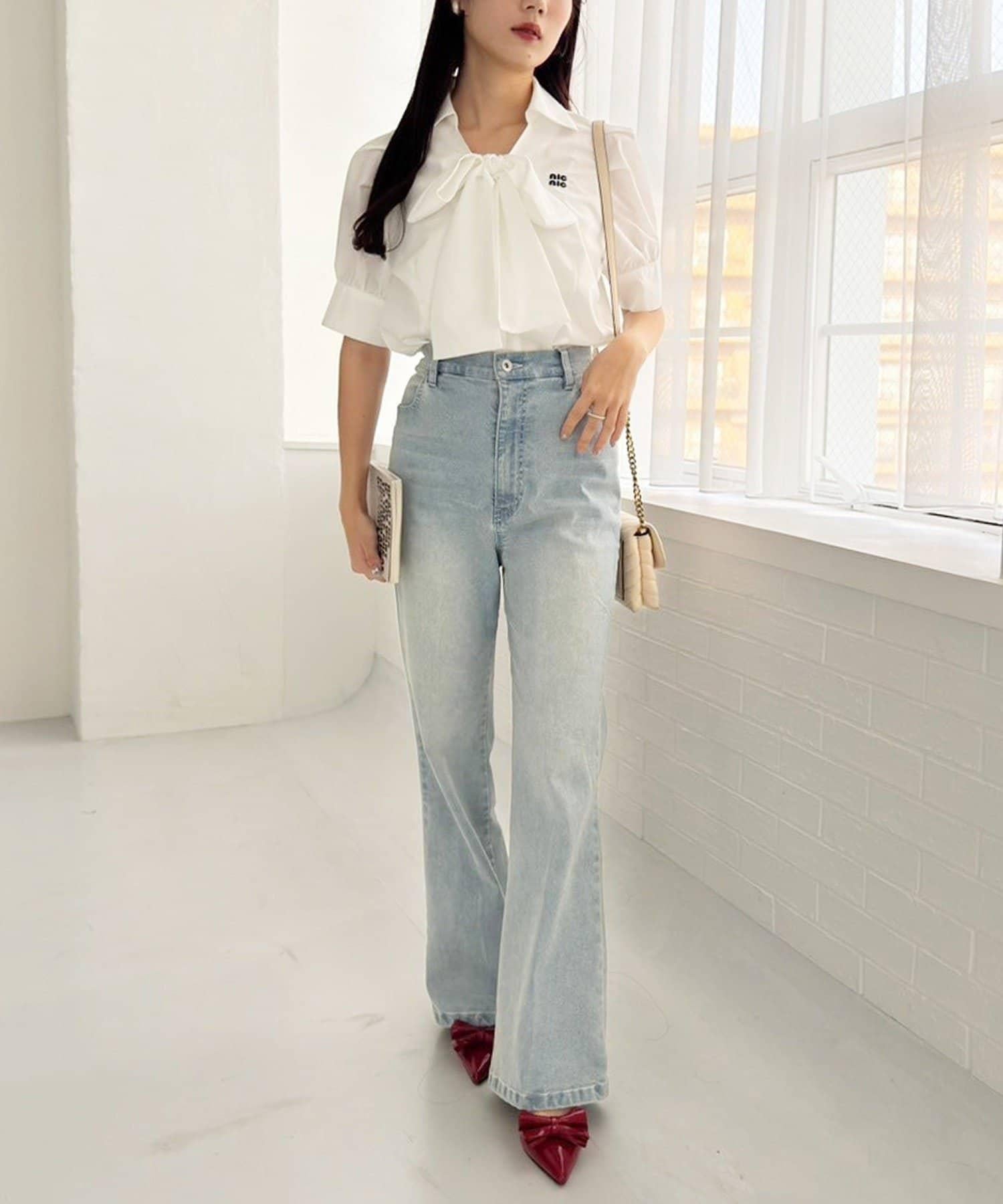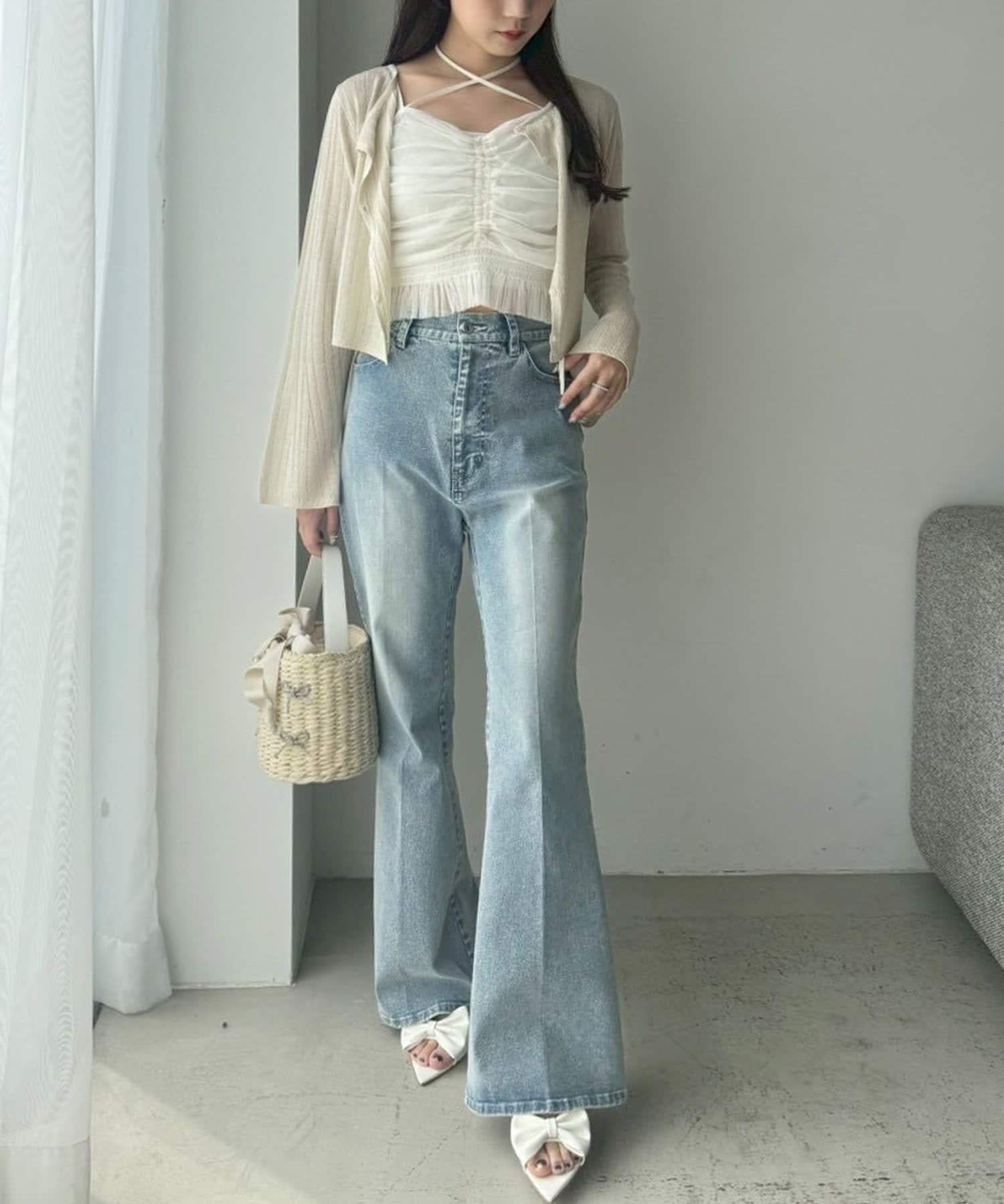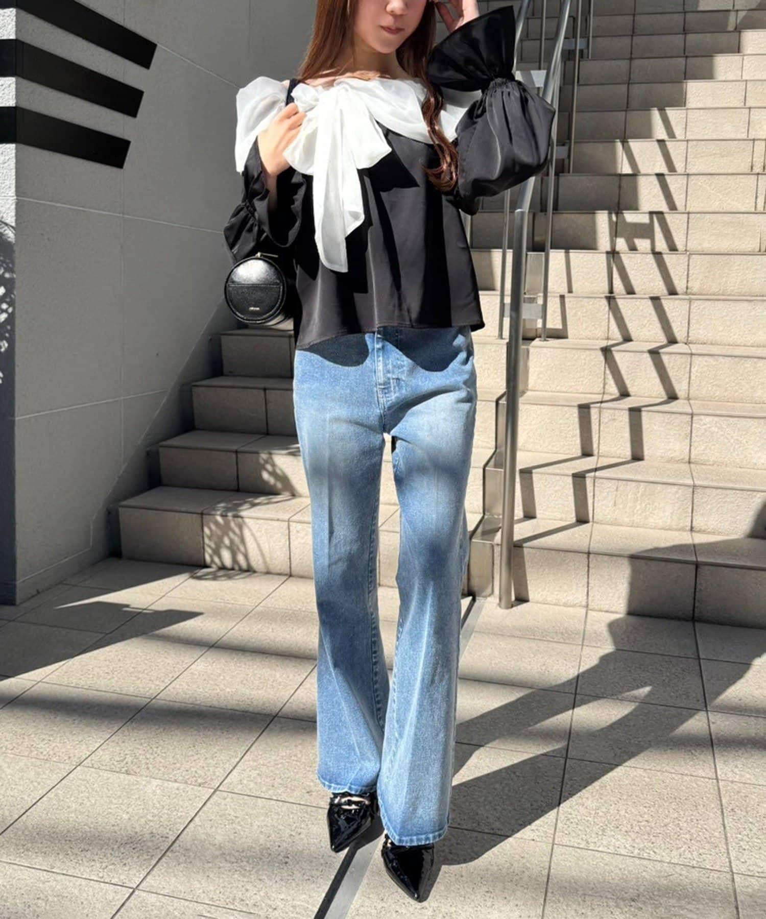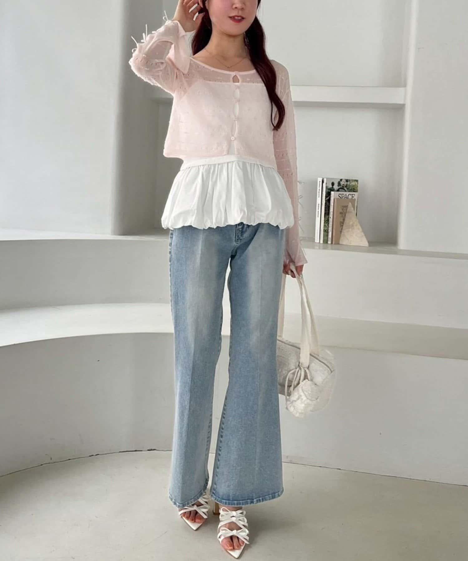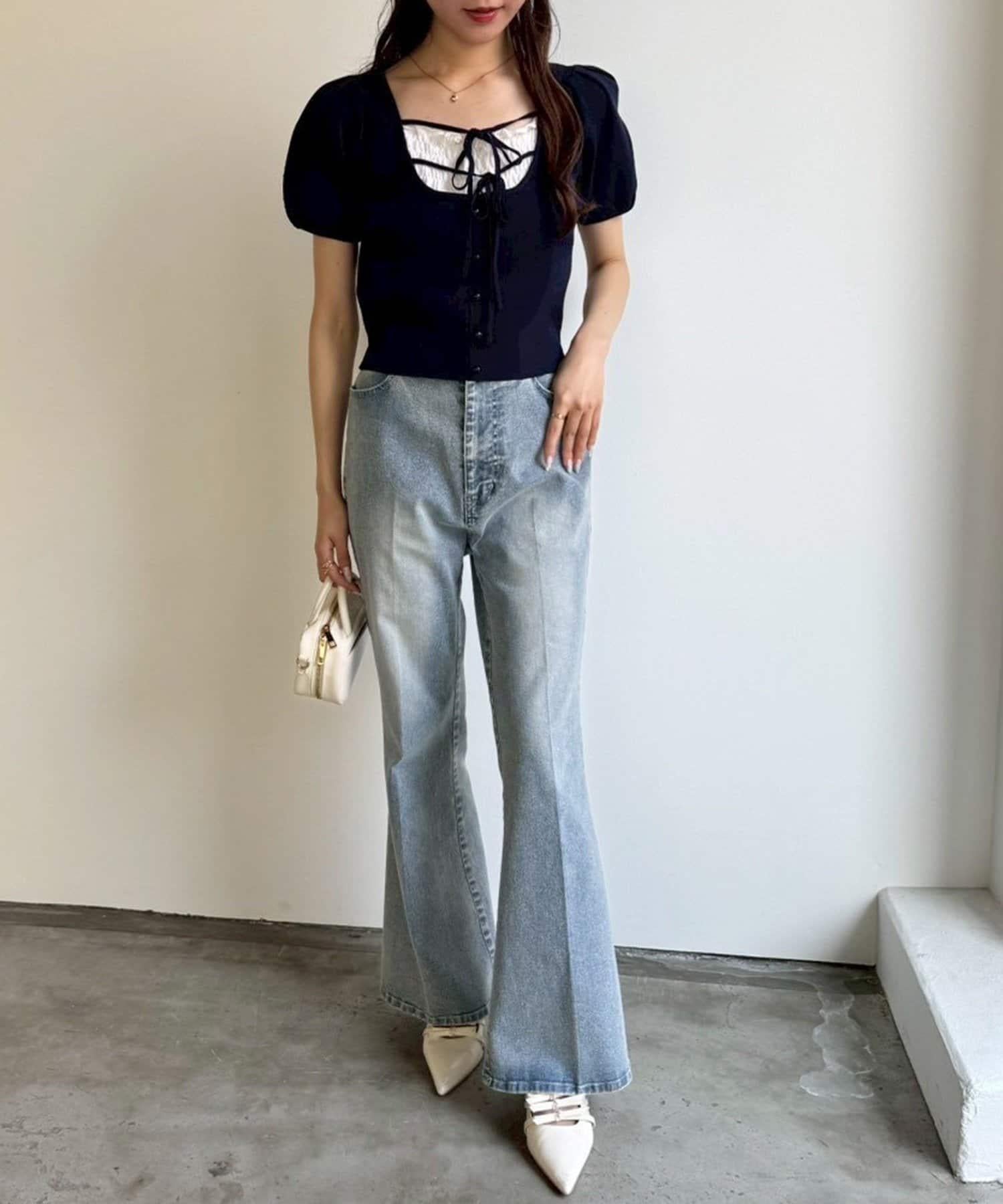 在甜美中加入休閒牛仔,就能打造出法式休閒的協調感。