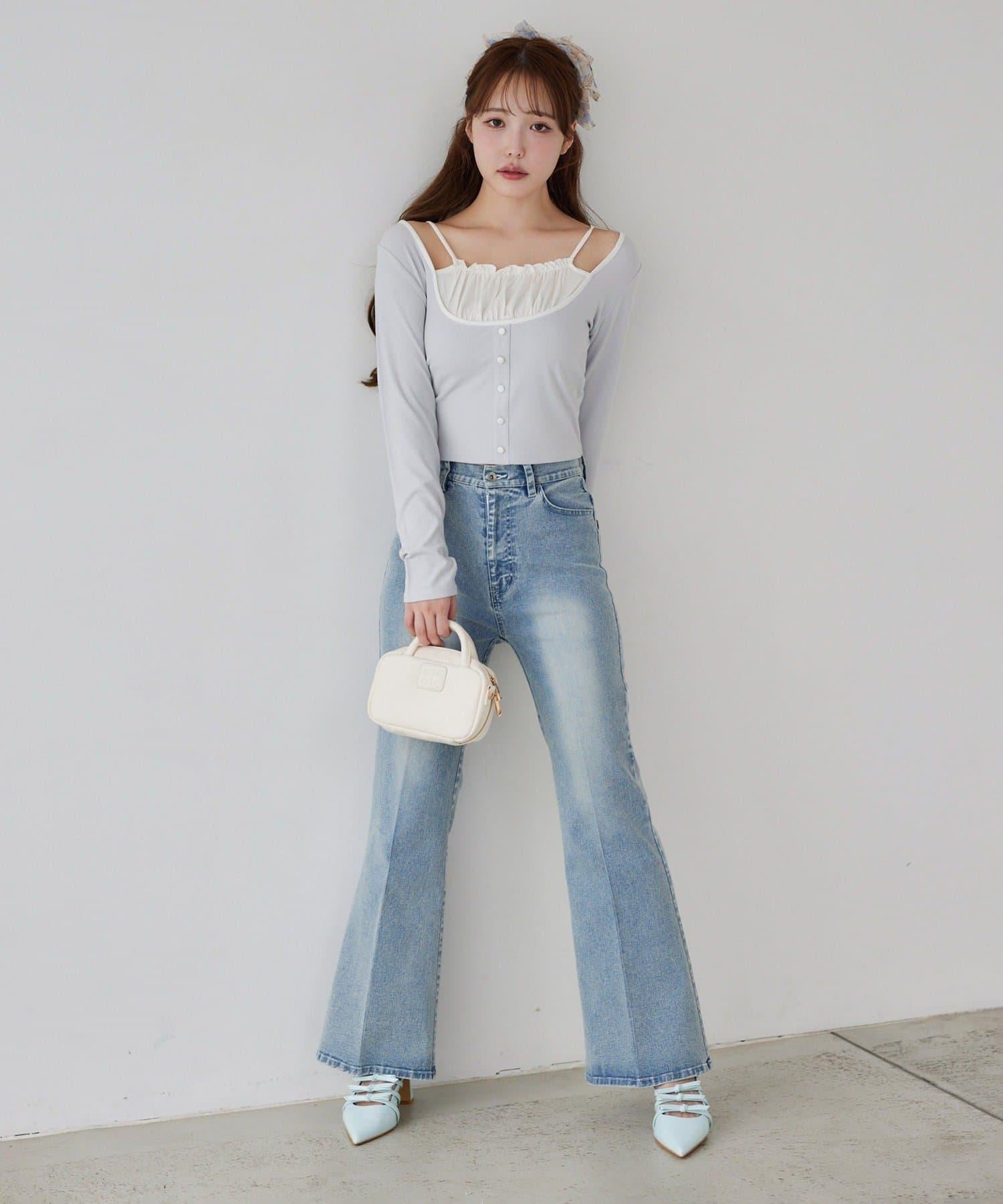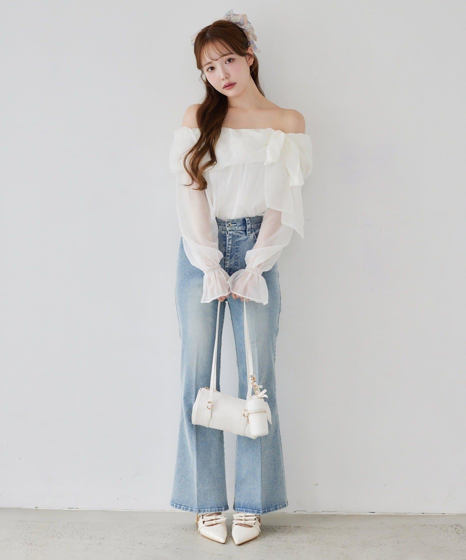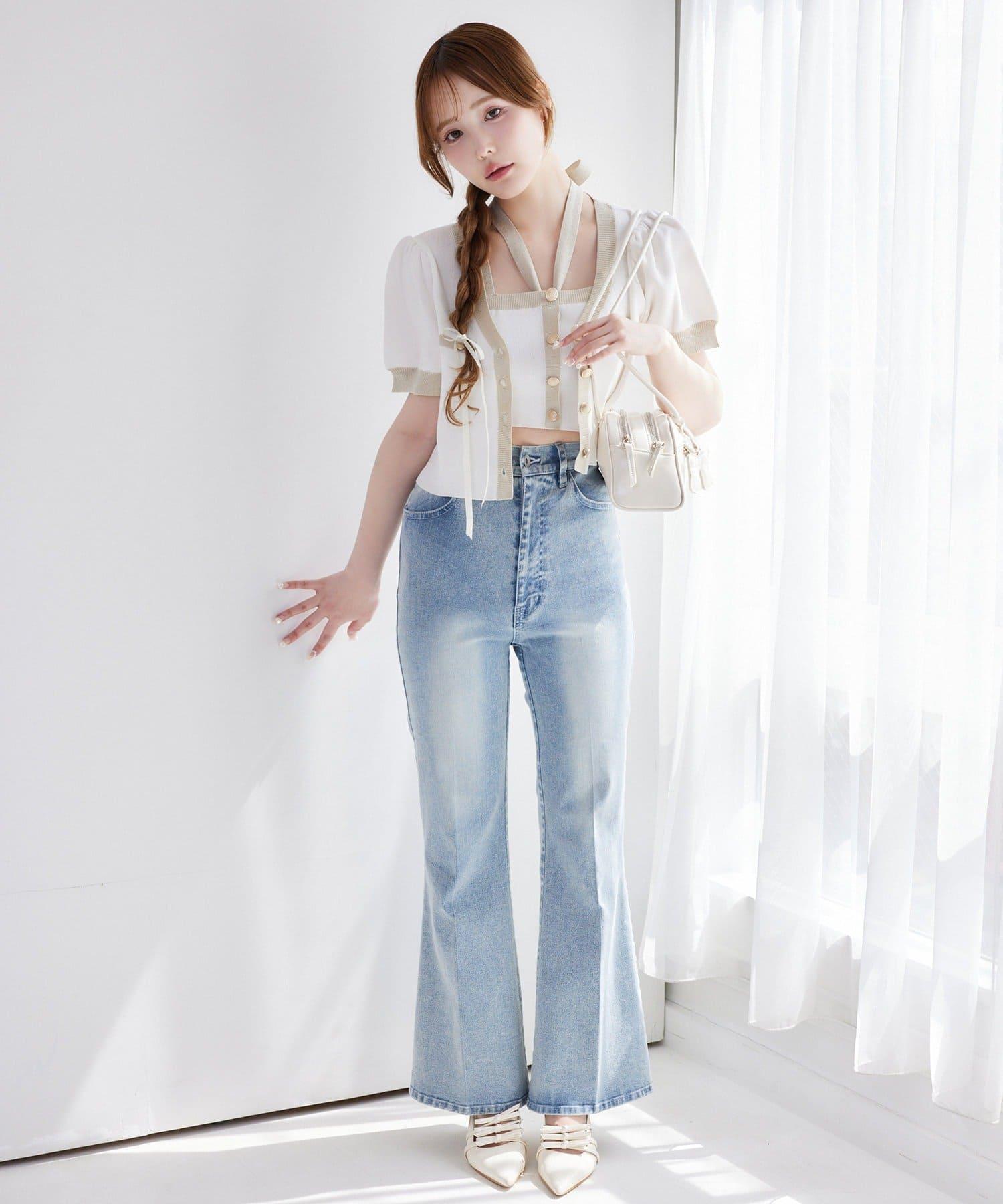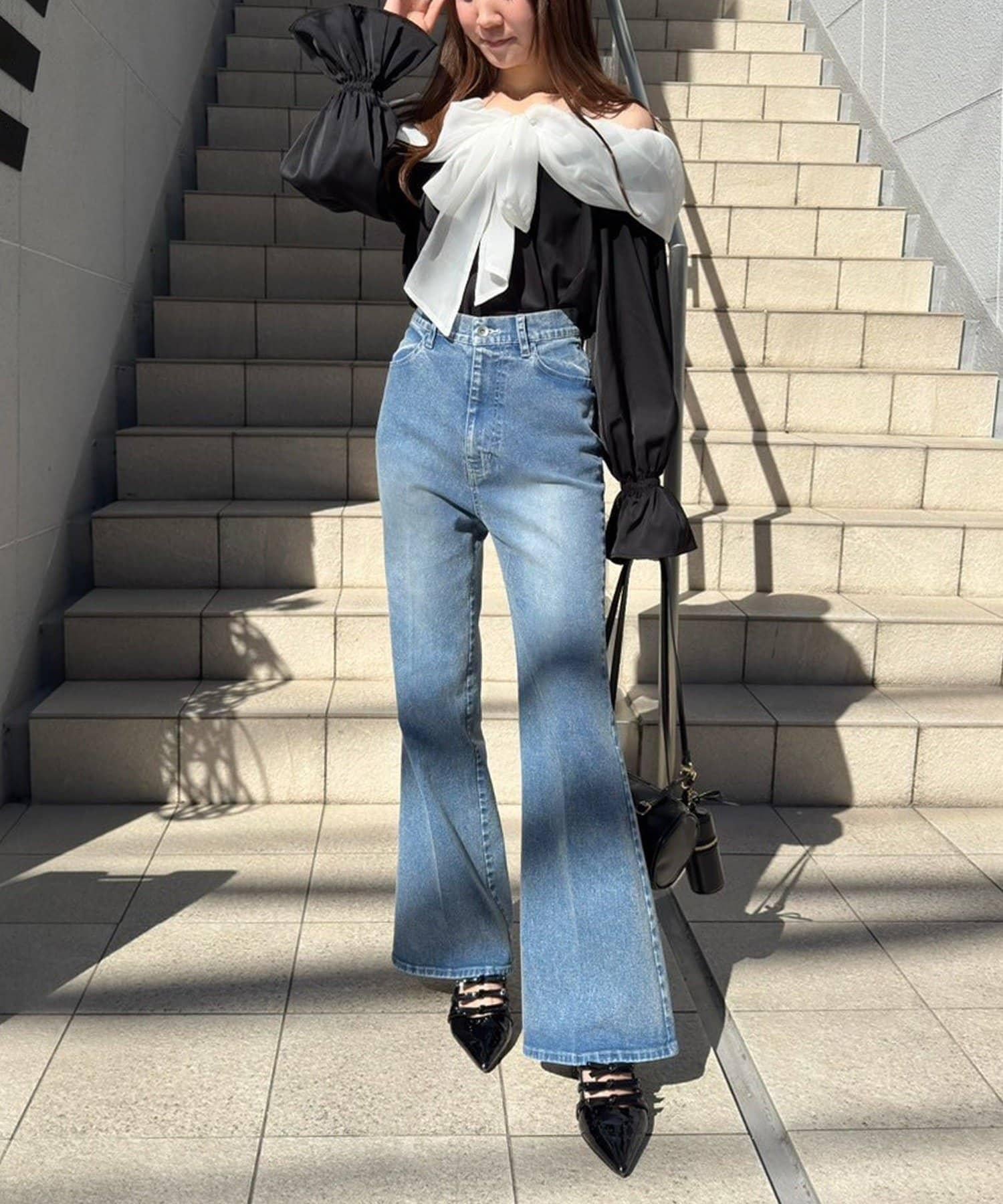 在甜美中加入休閒牛仔,就能打造出法式休閒的協調感。