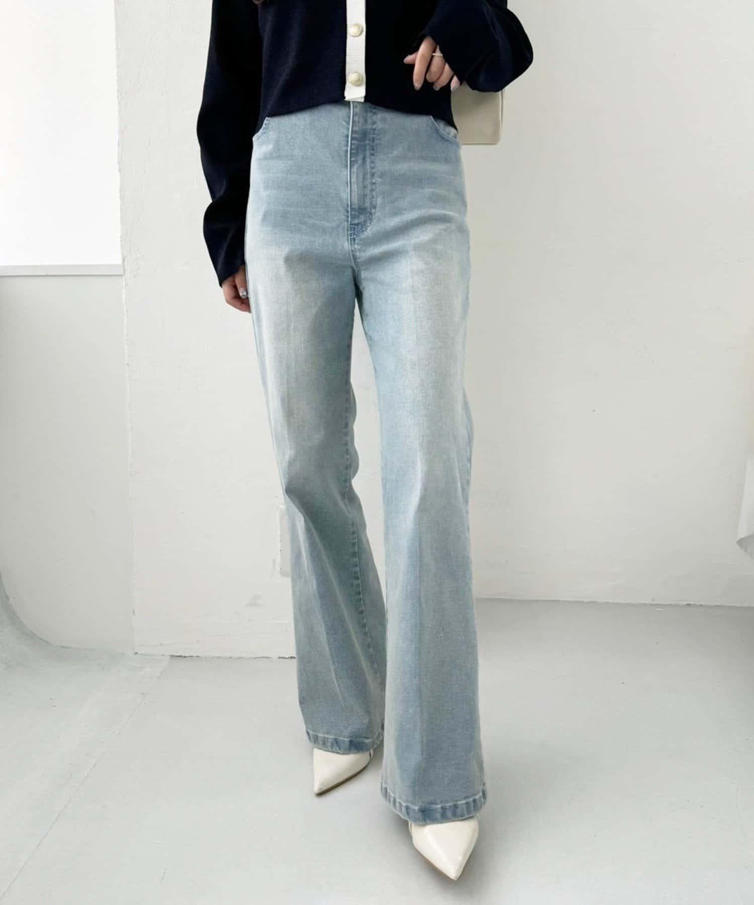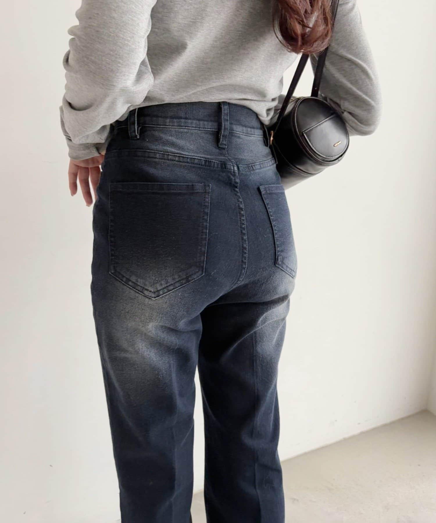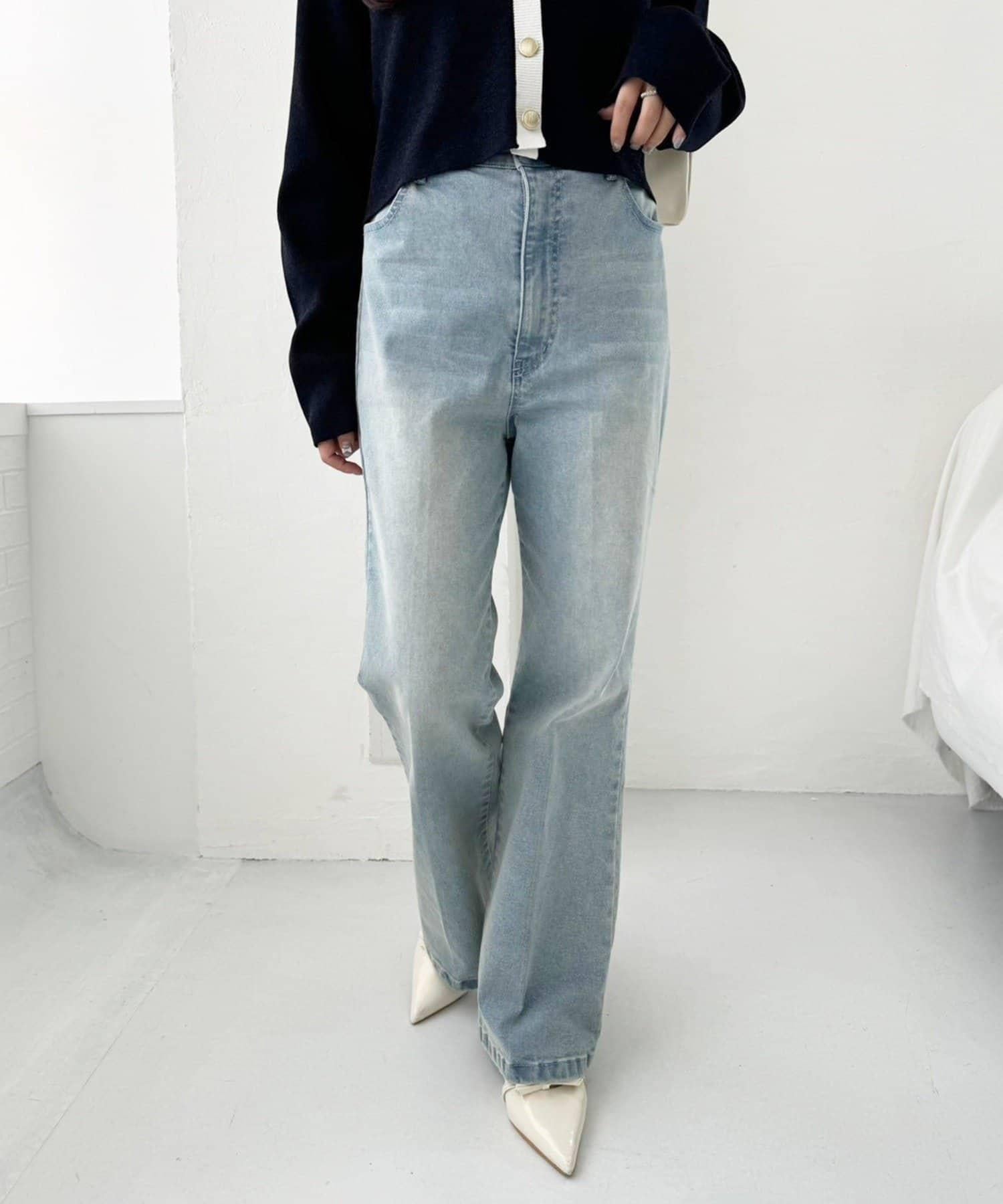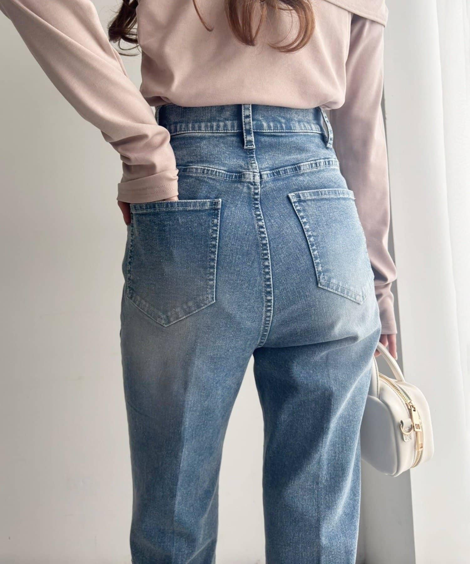 牛仔長褲,廓形優美,褲腿效果極佳。