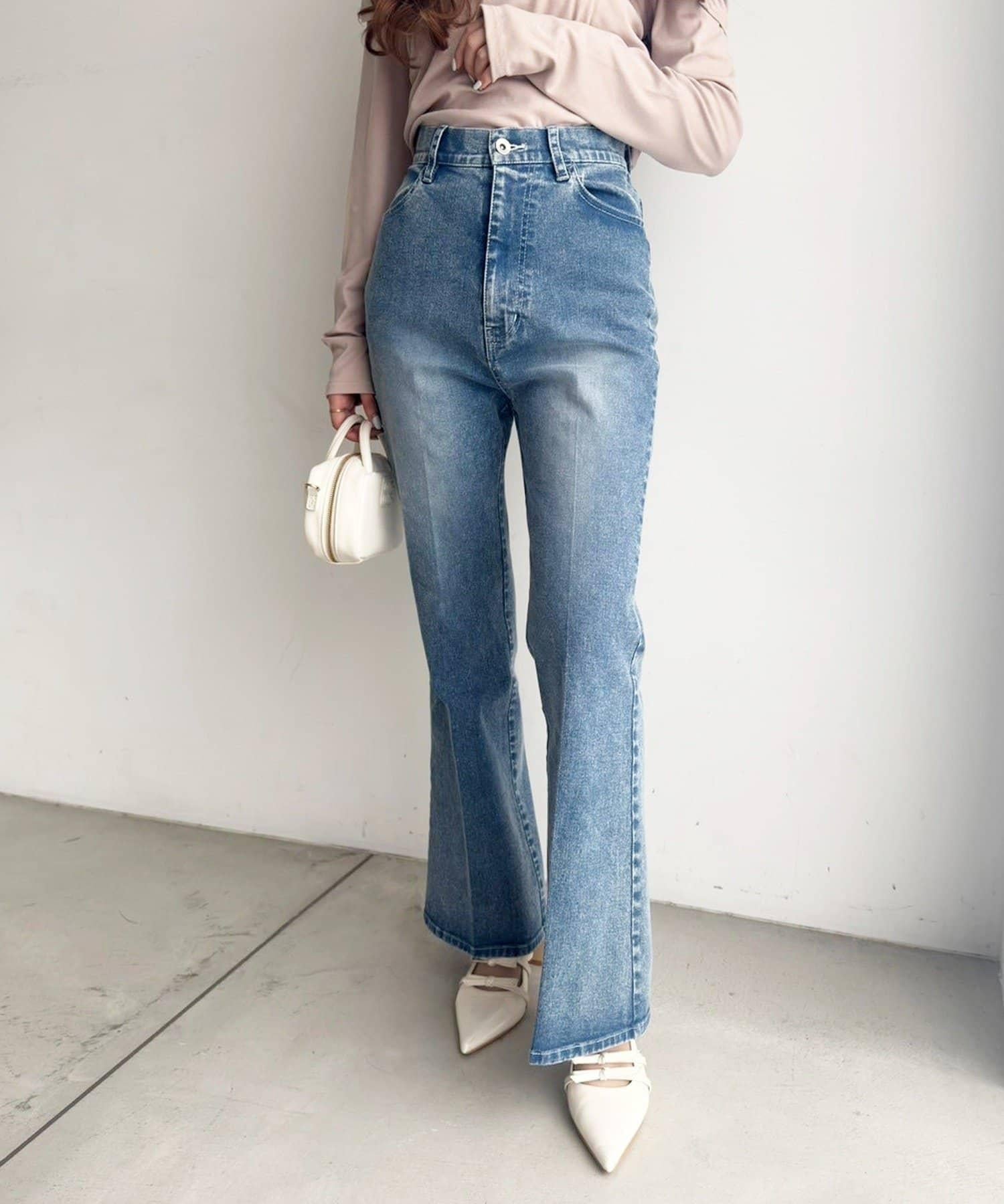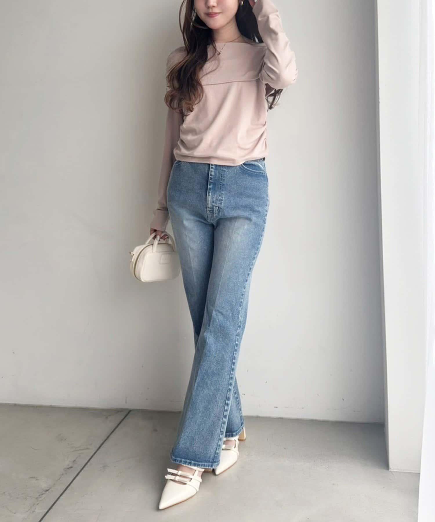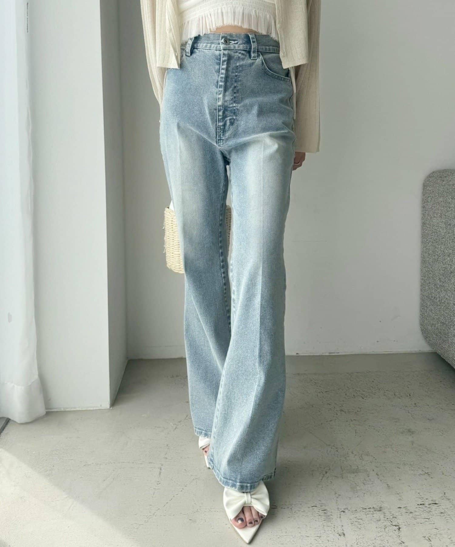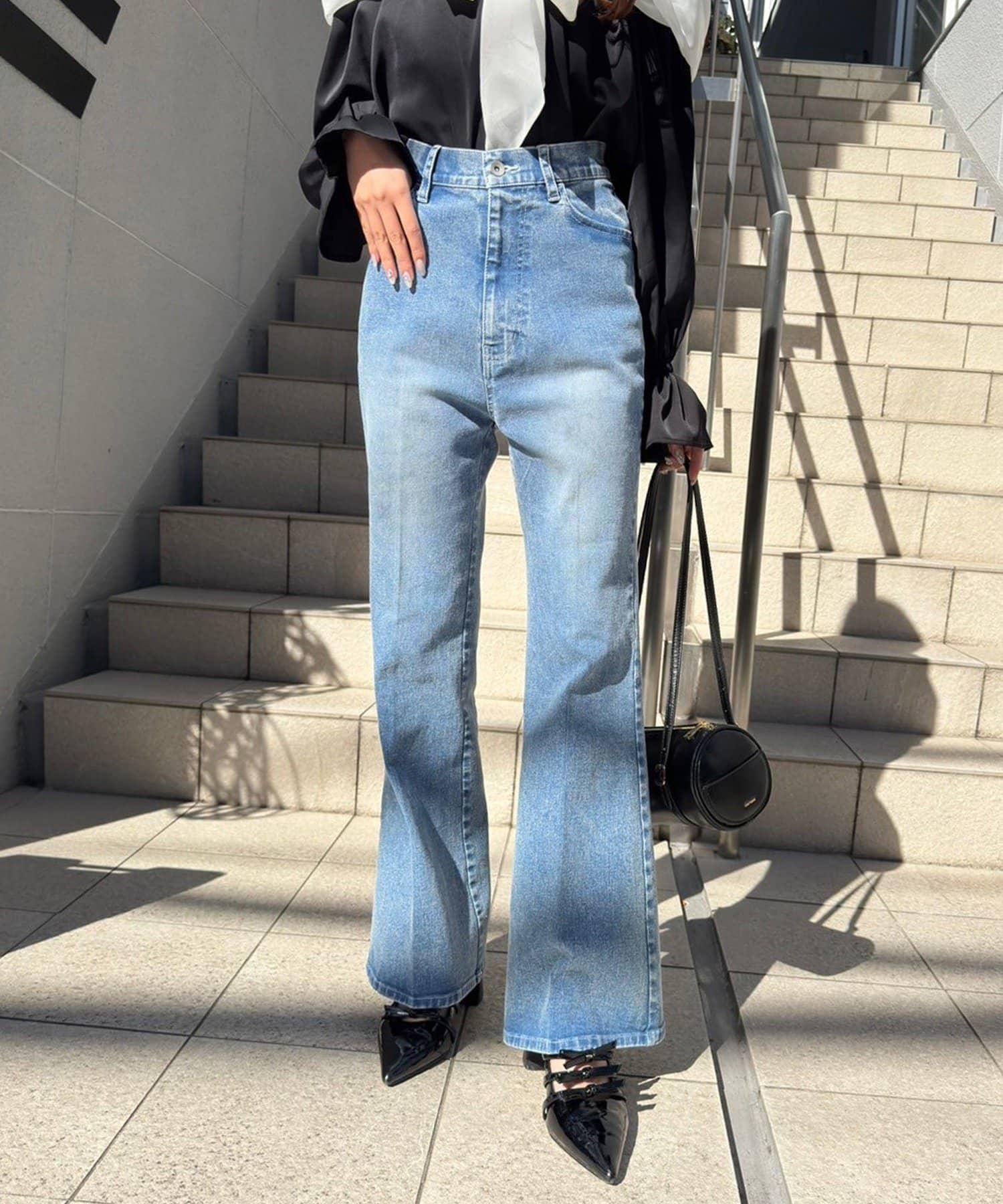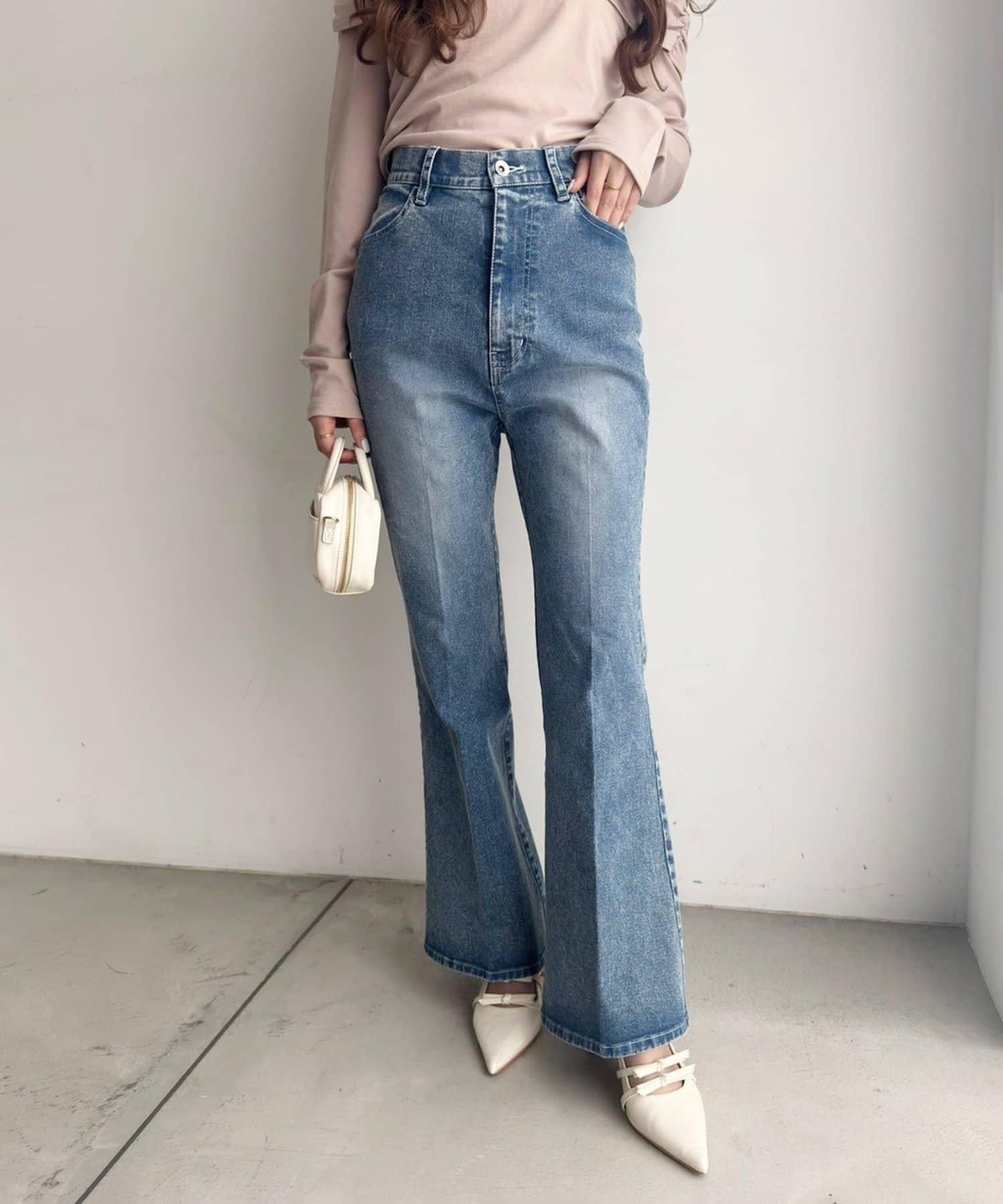 牛仔長褲,廓形優美,褲腿效果極佳。
