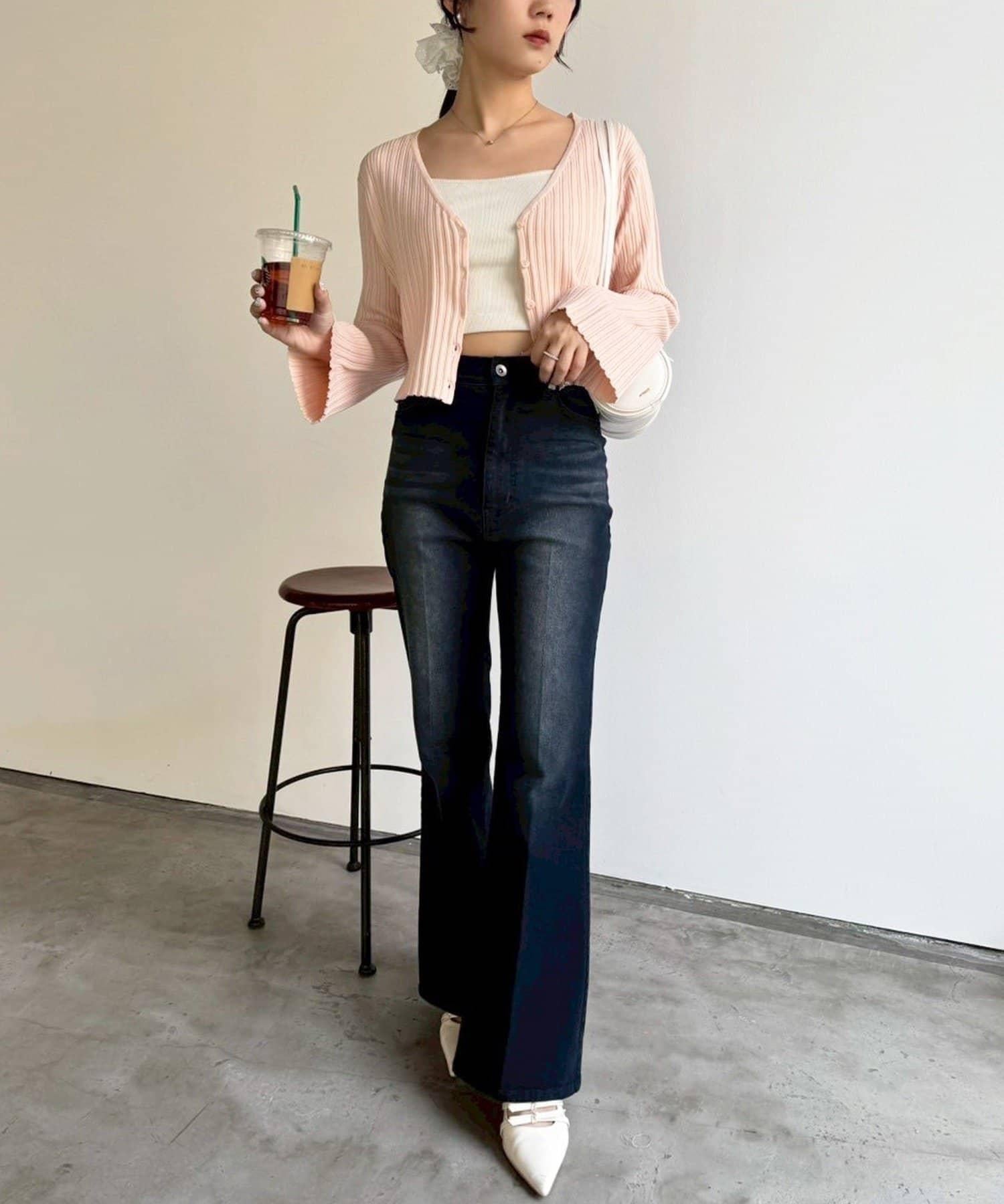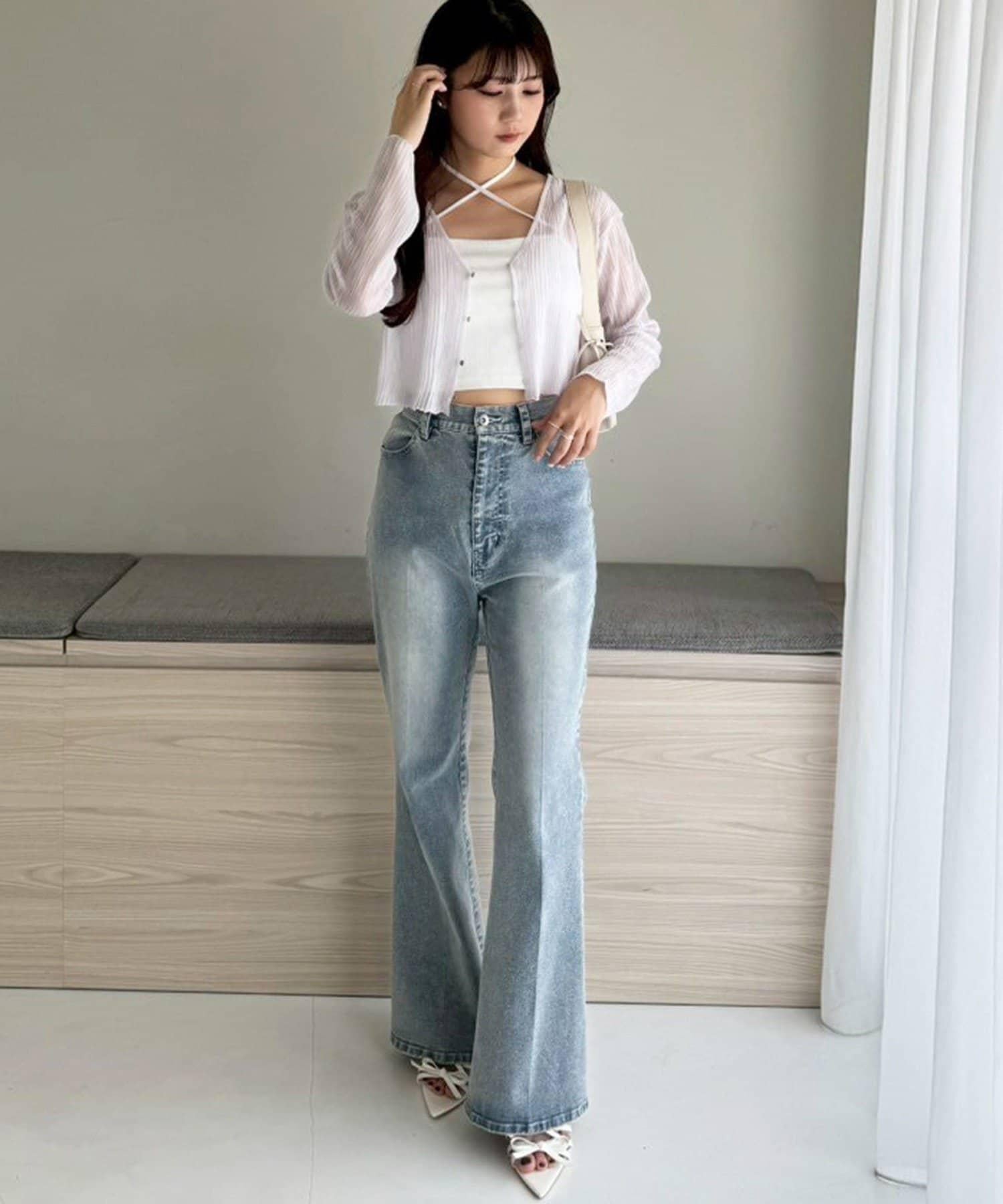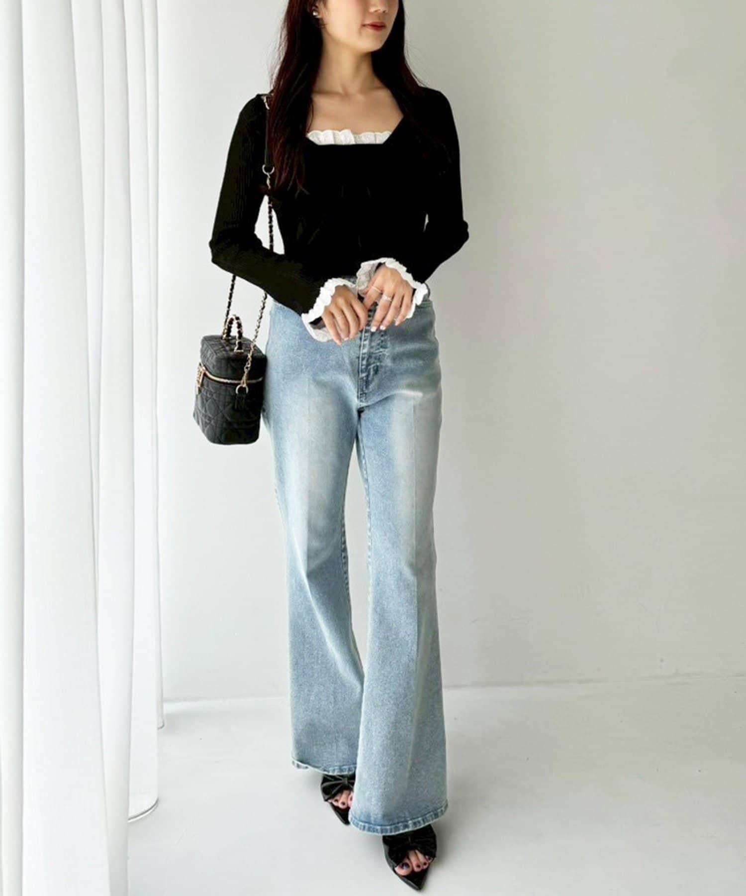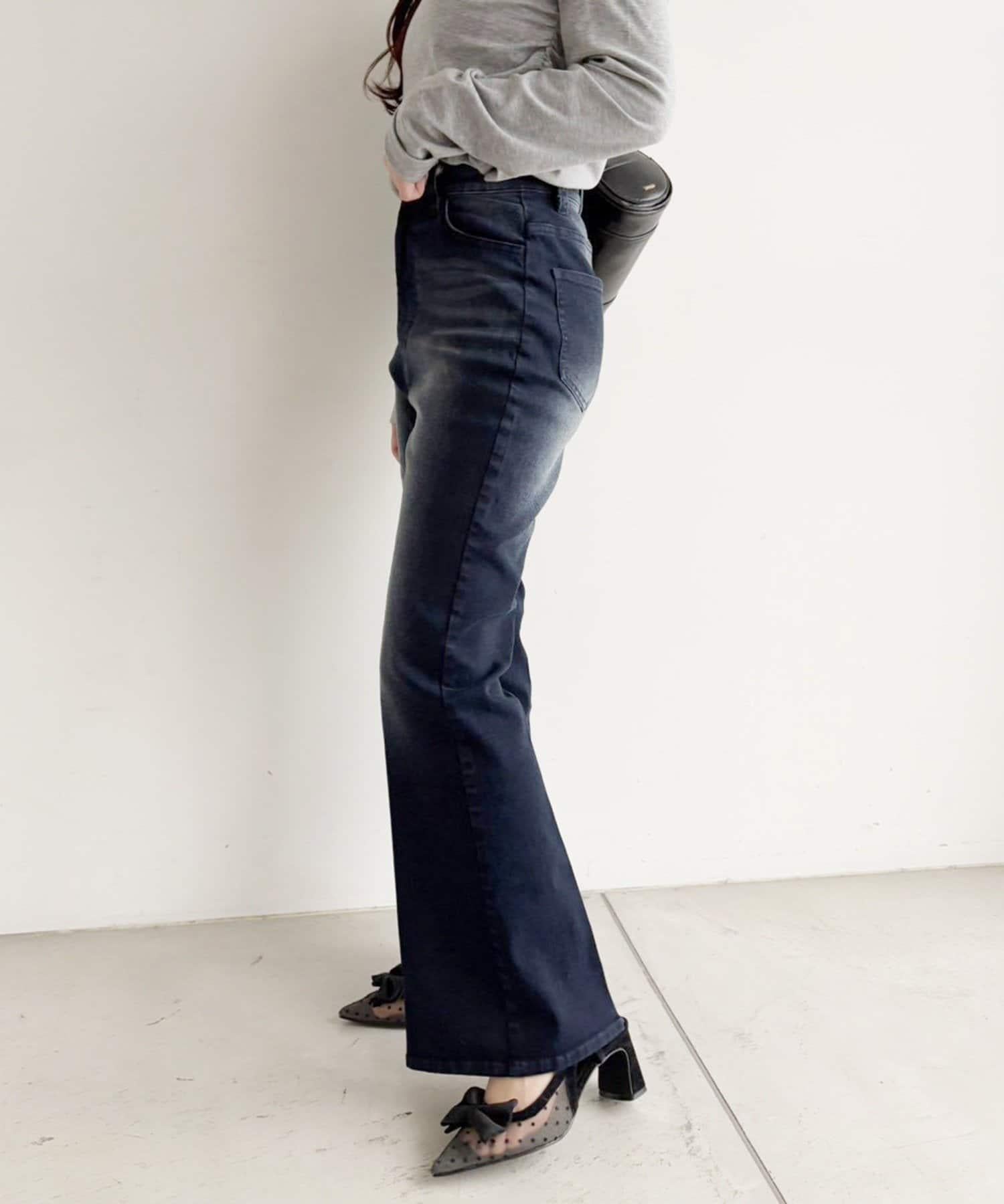 牛仔長褲,廓形優美,褲腿效果極佳。