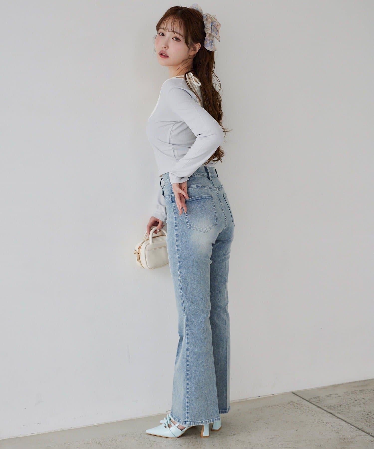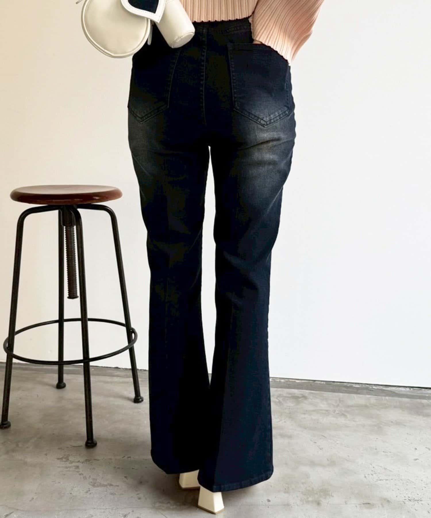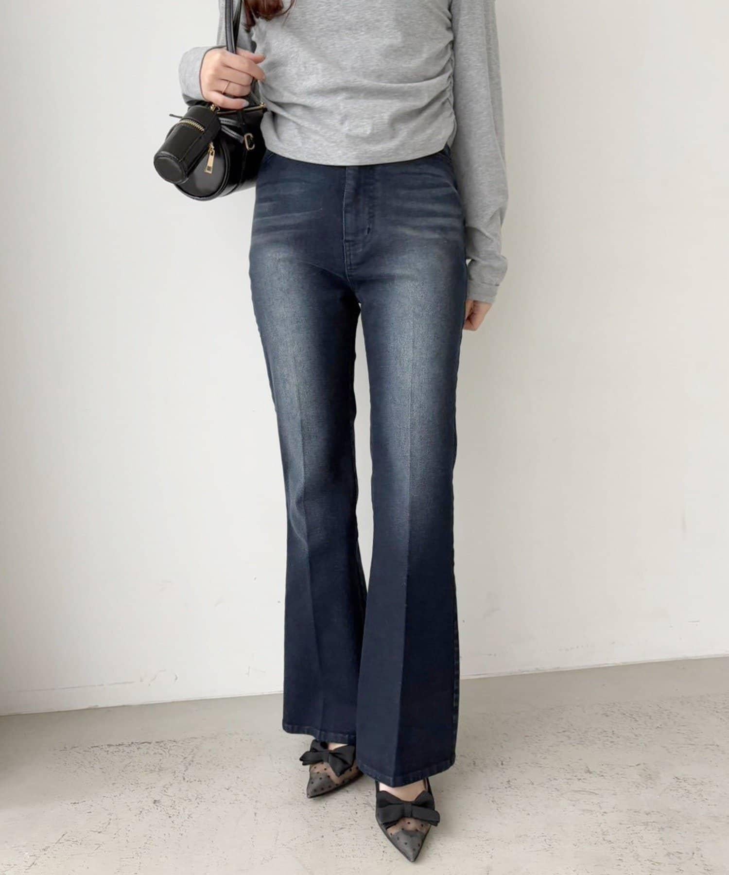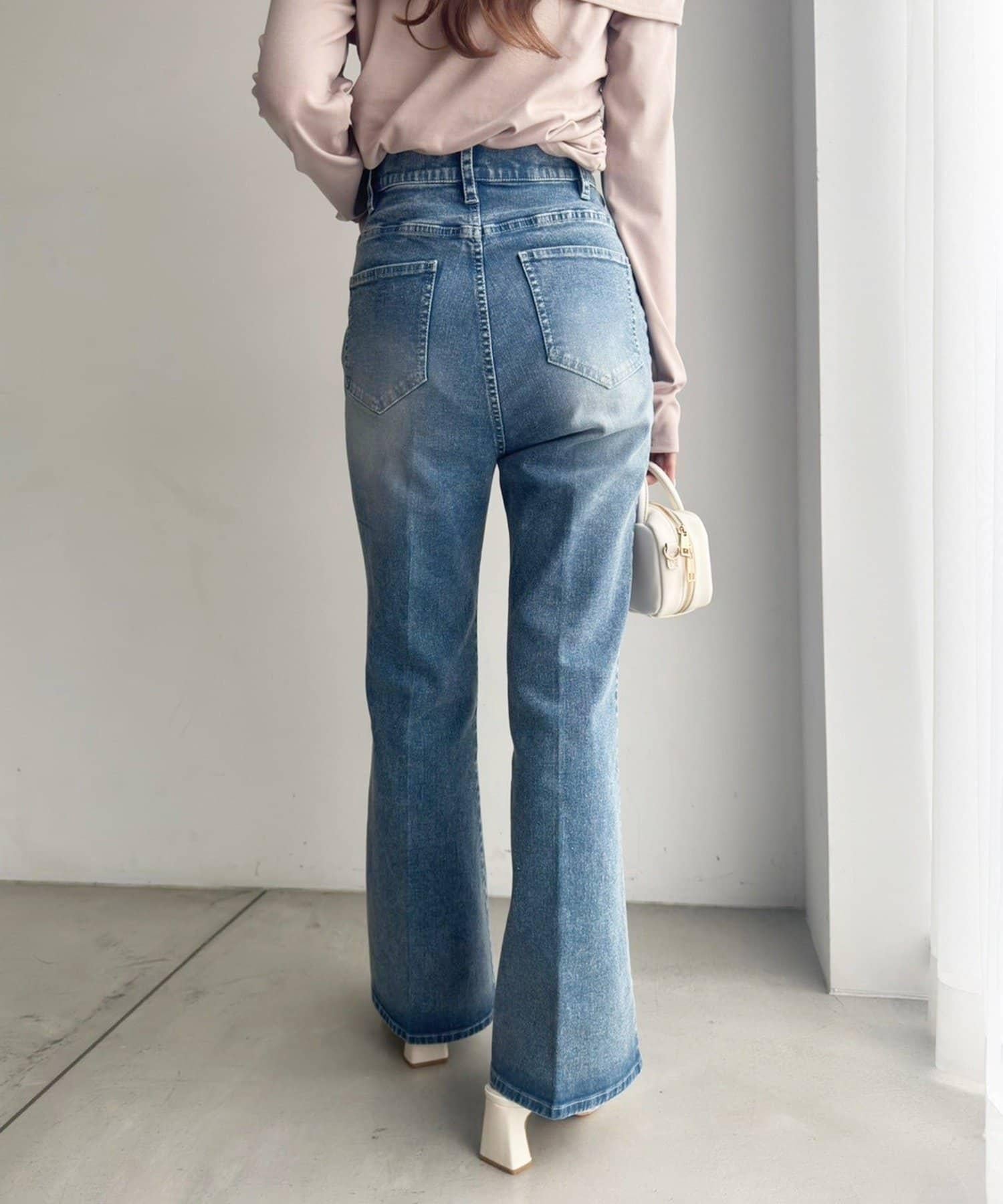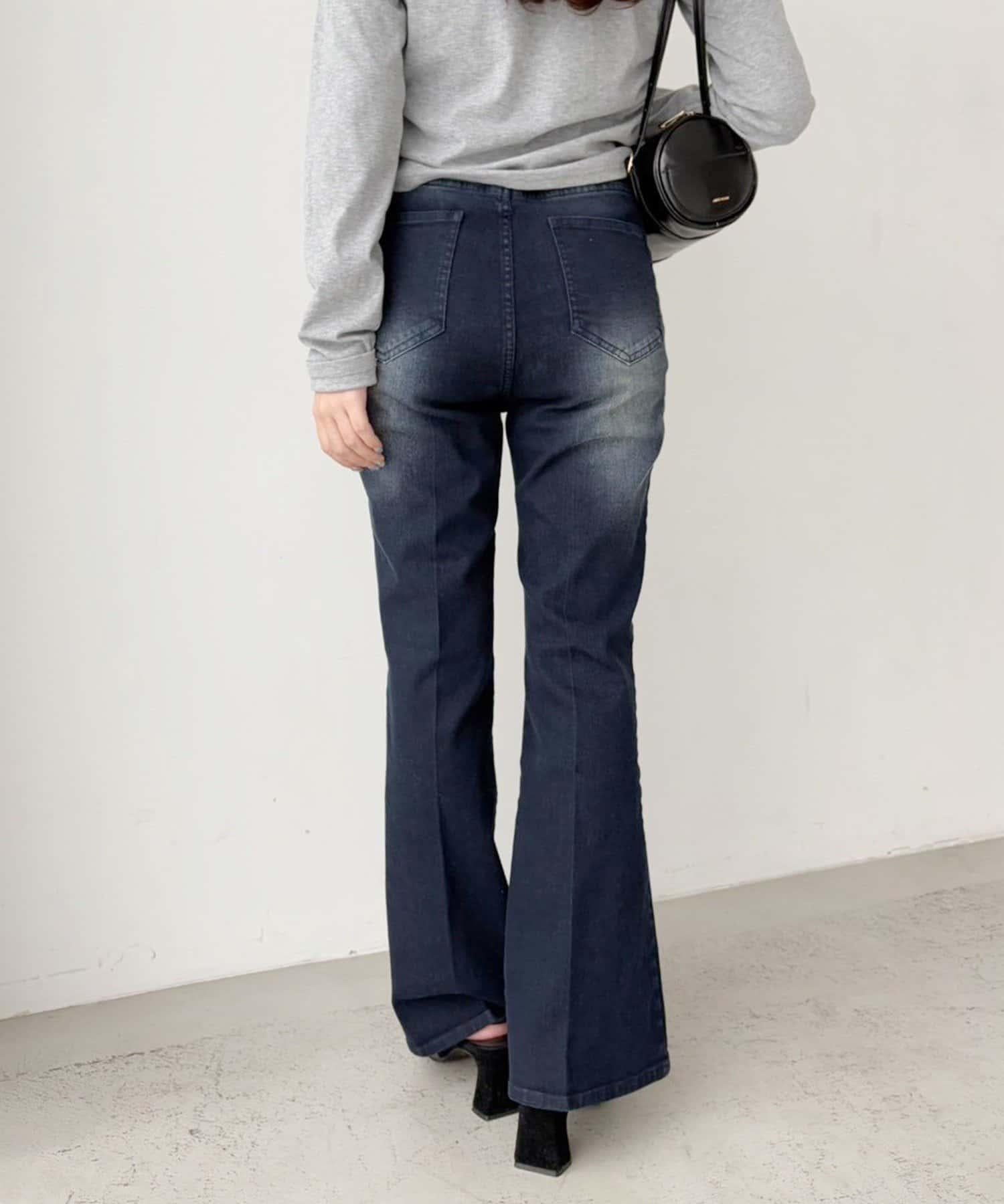 牛仔長褲,廓形優美,褲腿效果極佳。