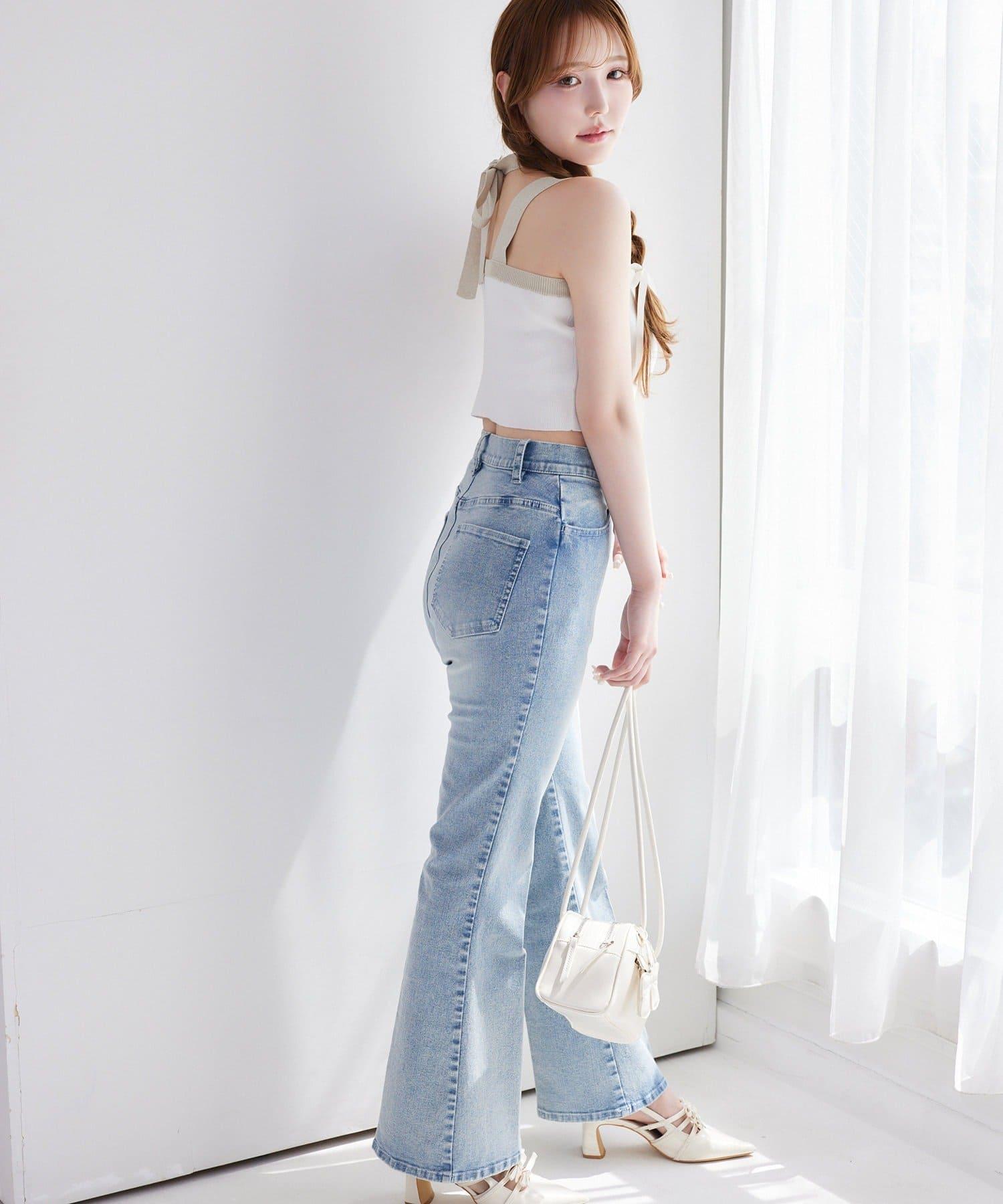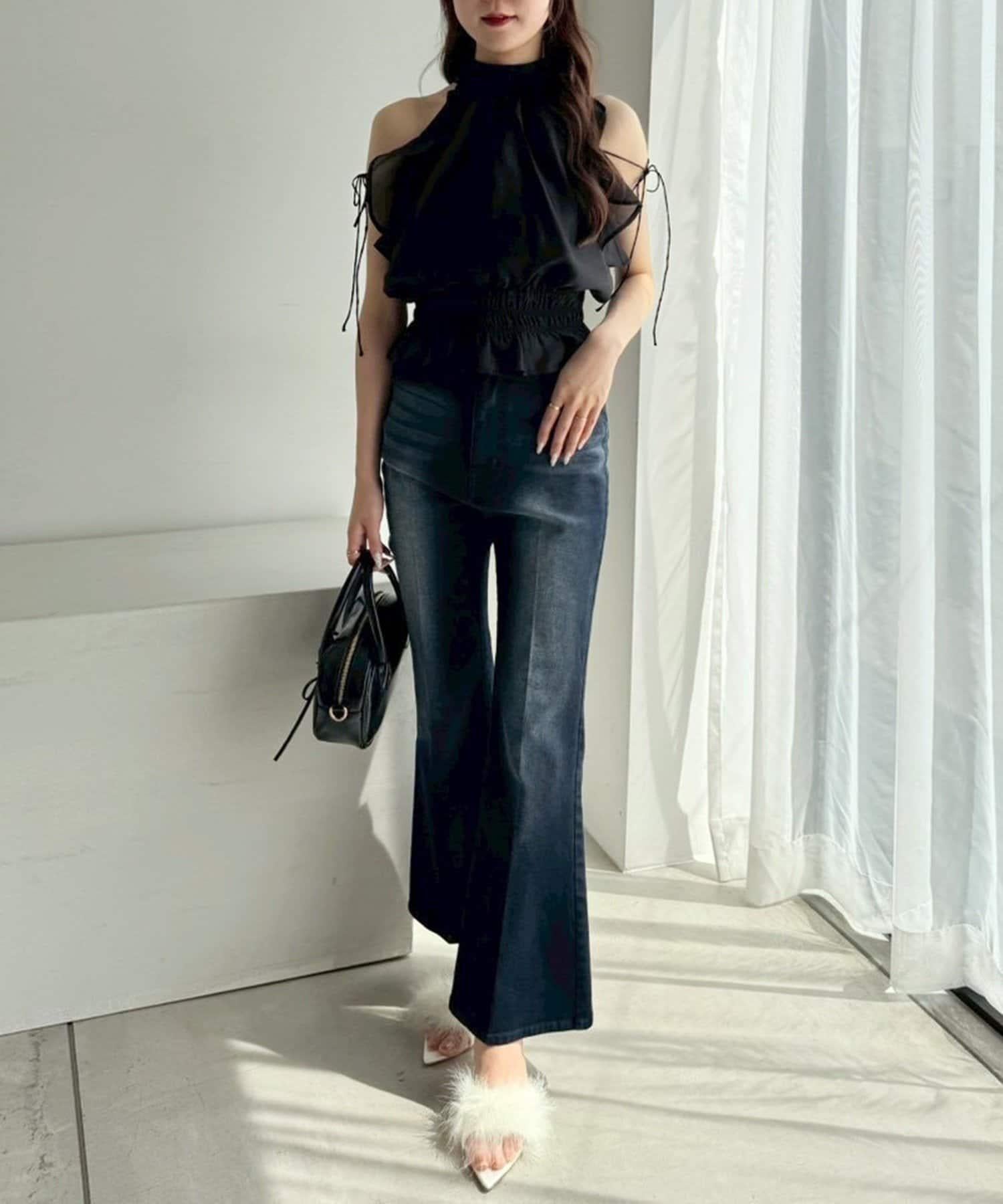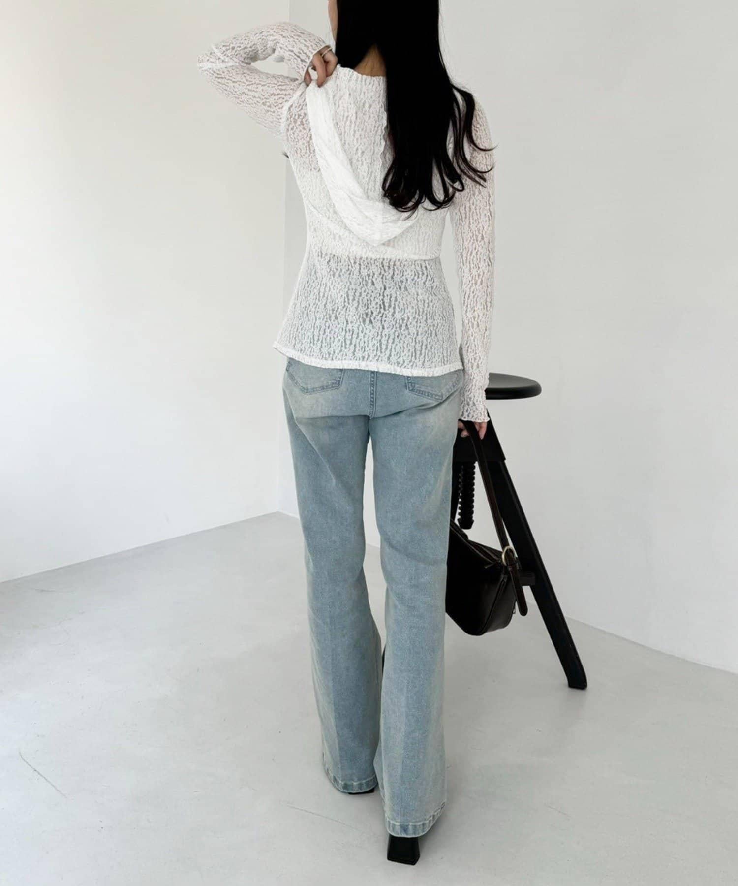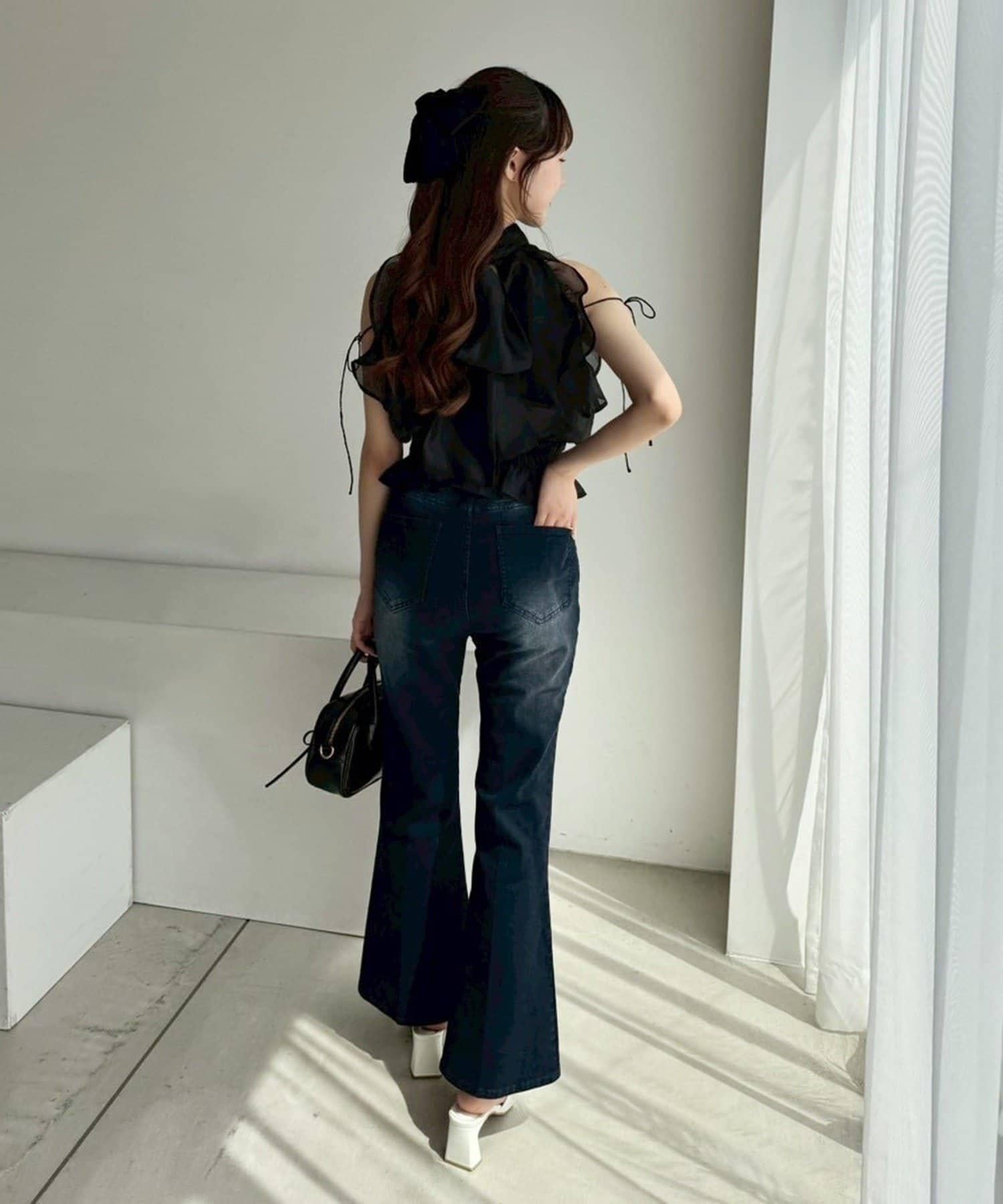 牛仔長褲,廓形優美,褲腿效果極佳。