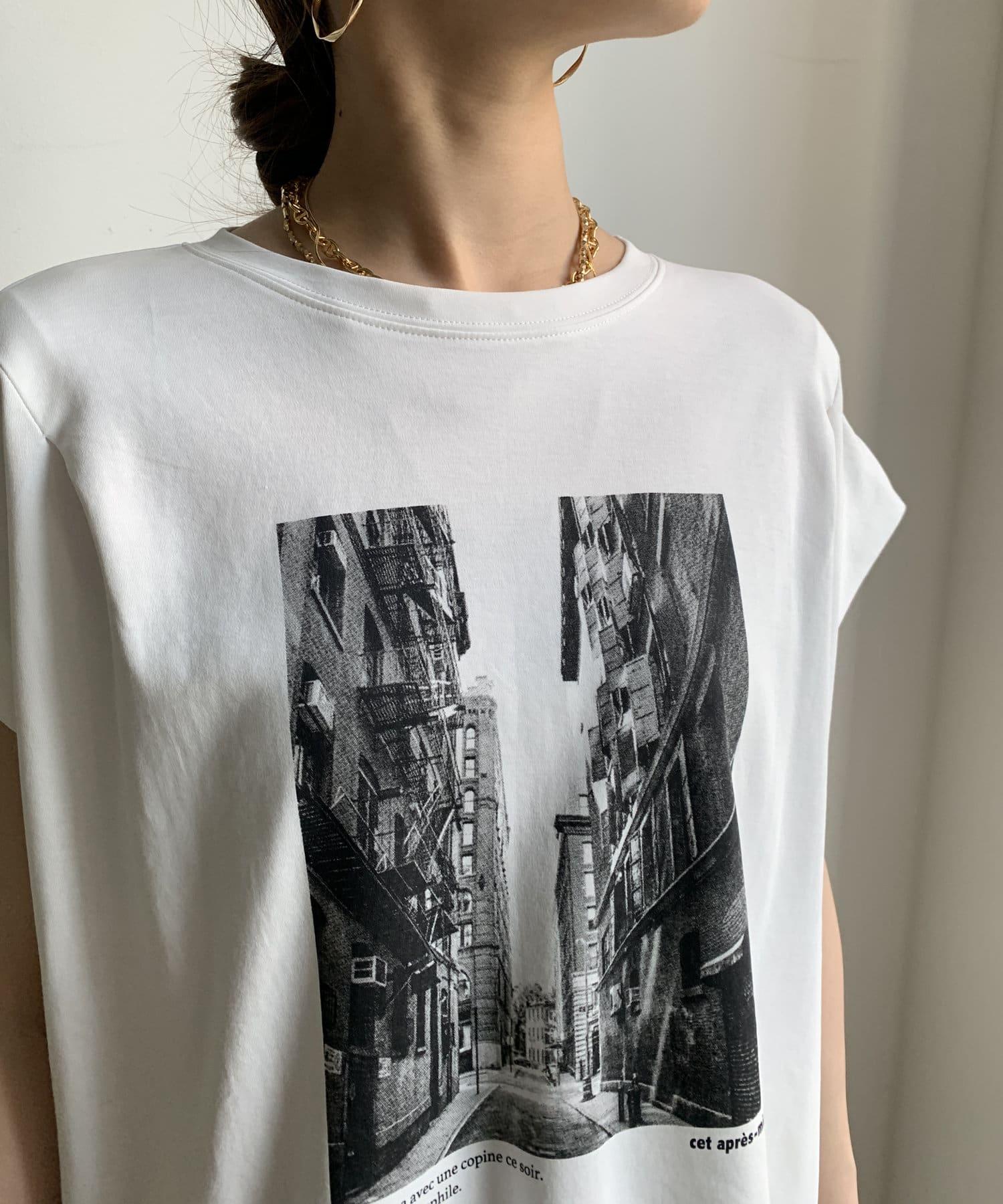 一款印有令人印象深刻的單色照片的 T 恤,適合在成人氛圍中穿著。