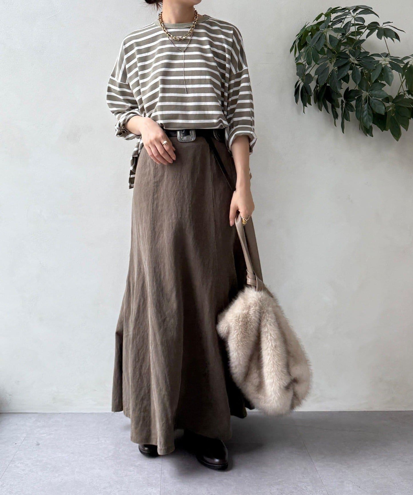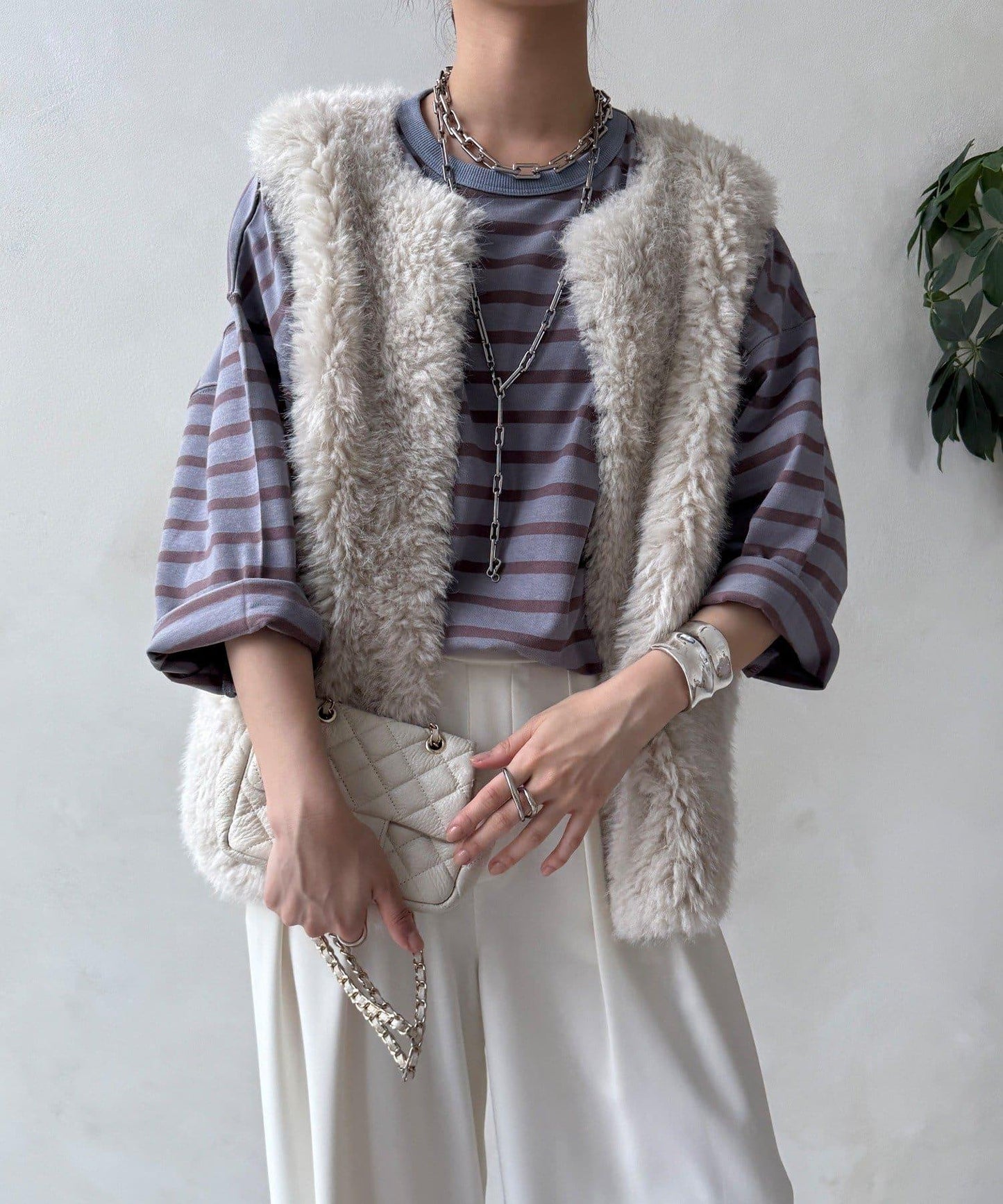 不太開放的領口給人優雅的印象。與配飾也很搭。