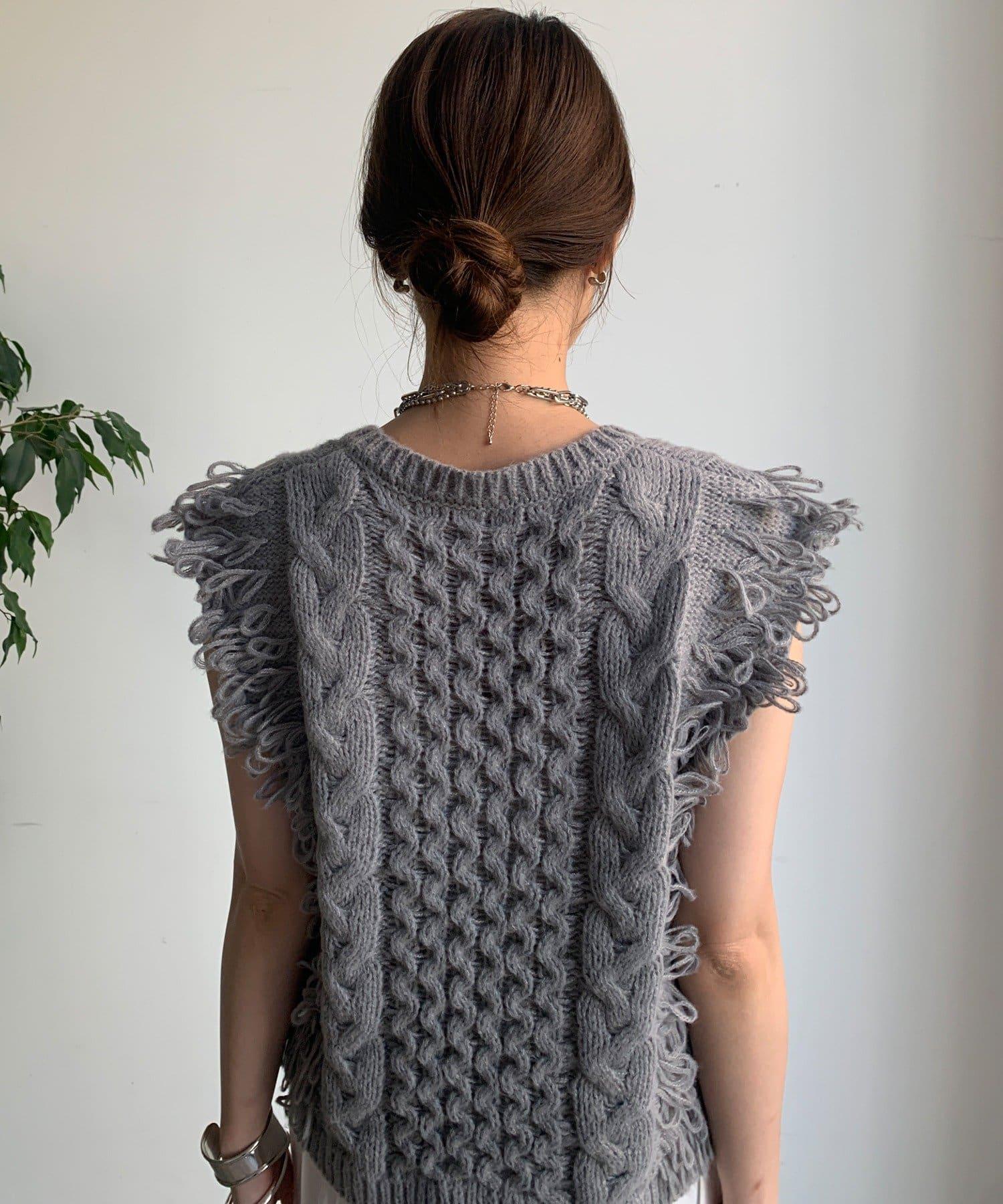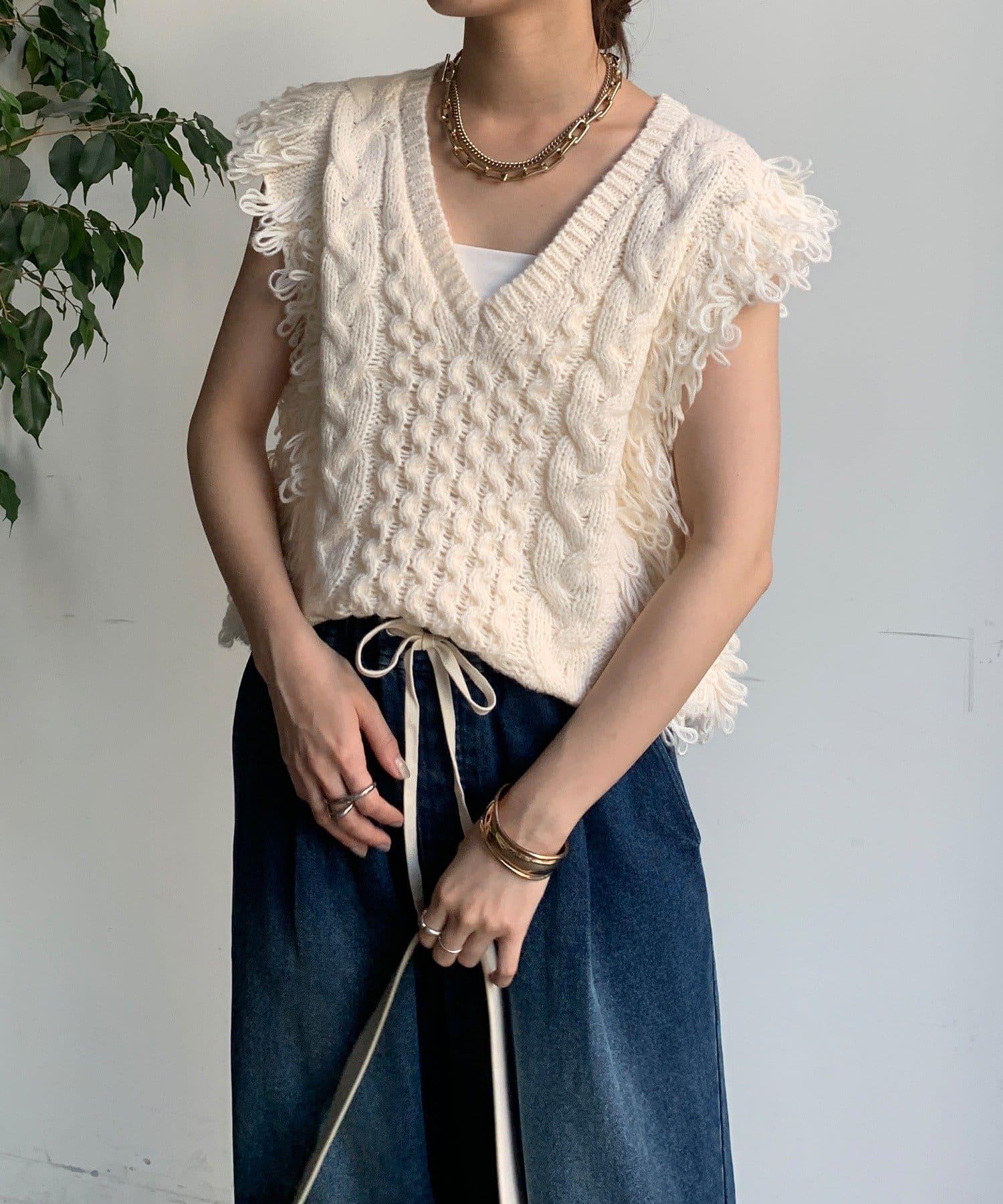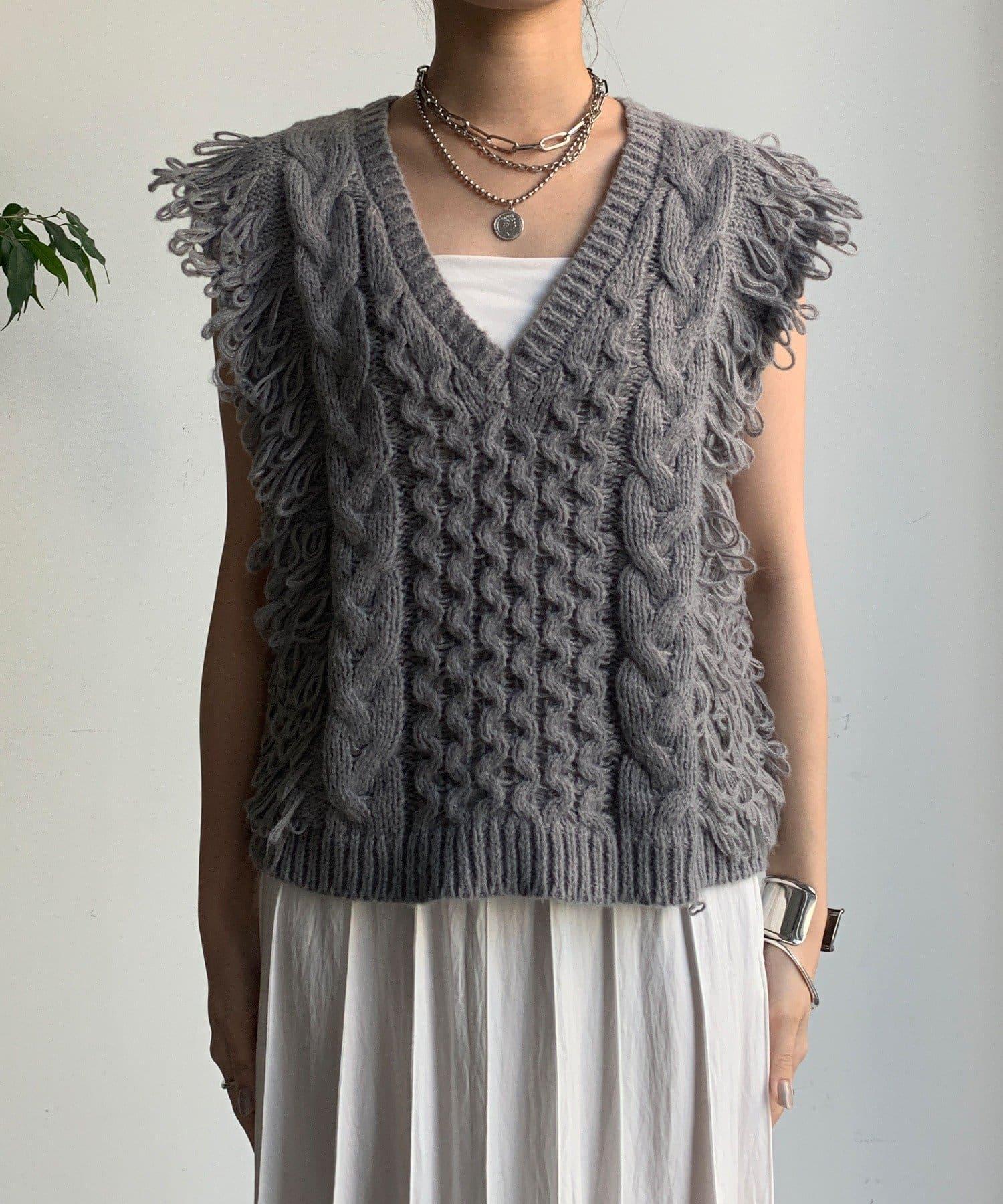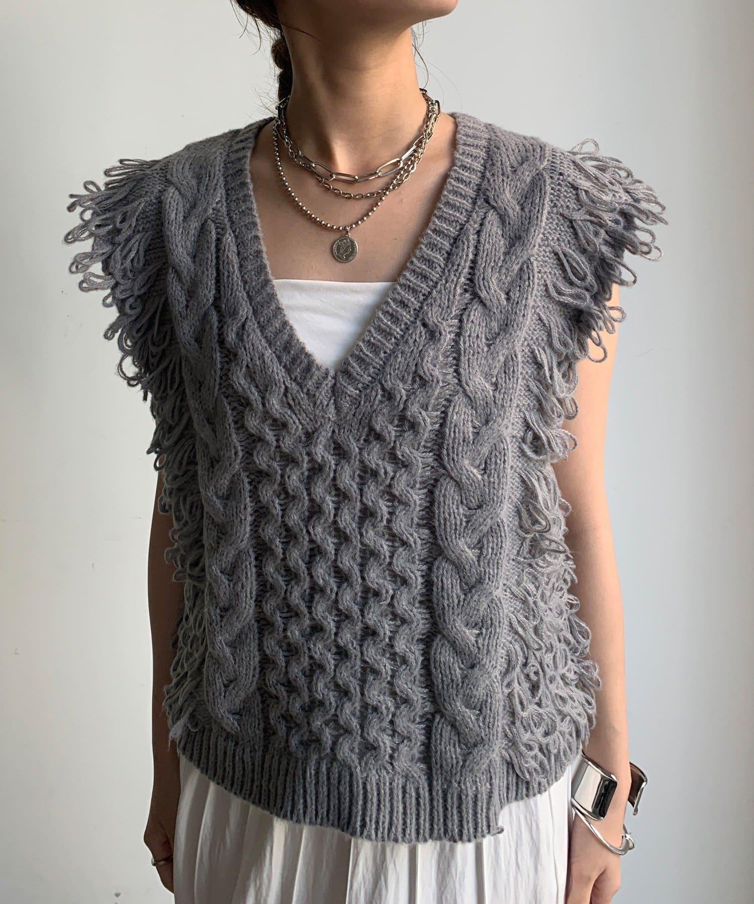 這款針織馬甲醒目的環形流蘇為您的著裝增添了層次感和趣味性。
