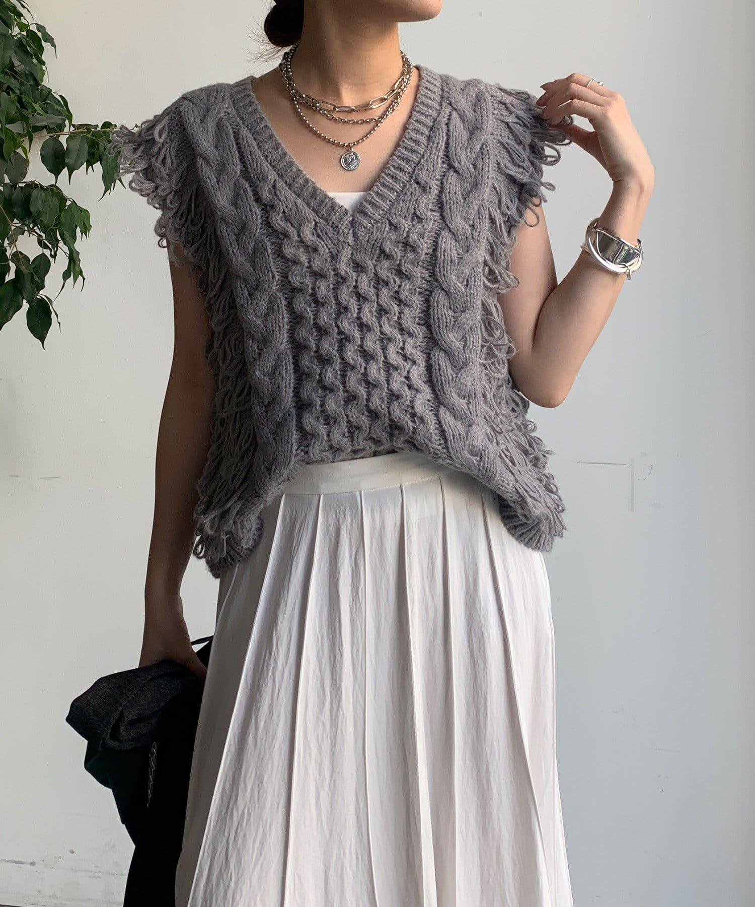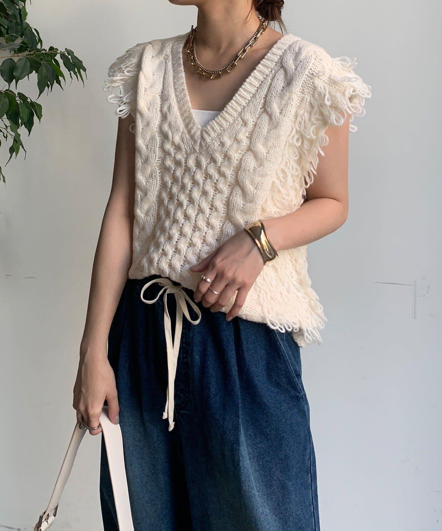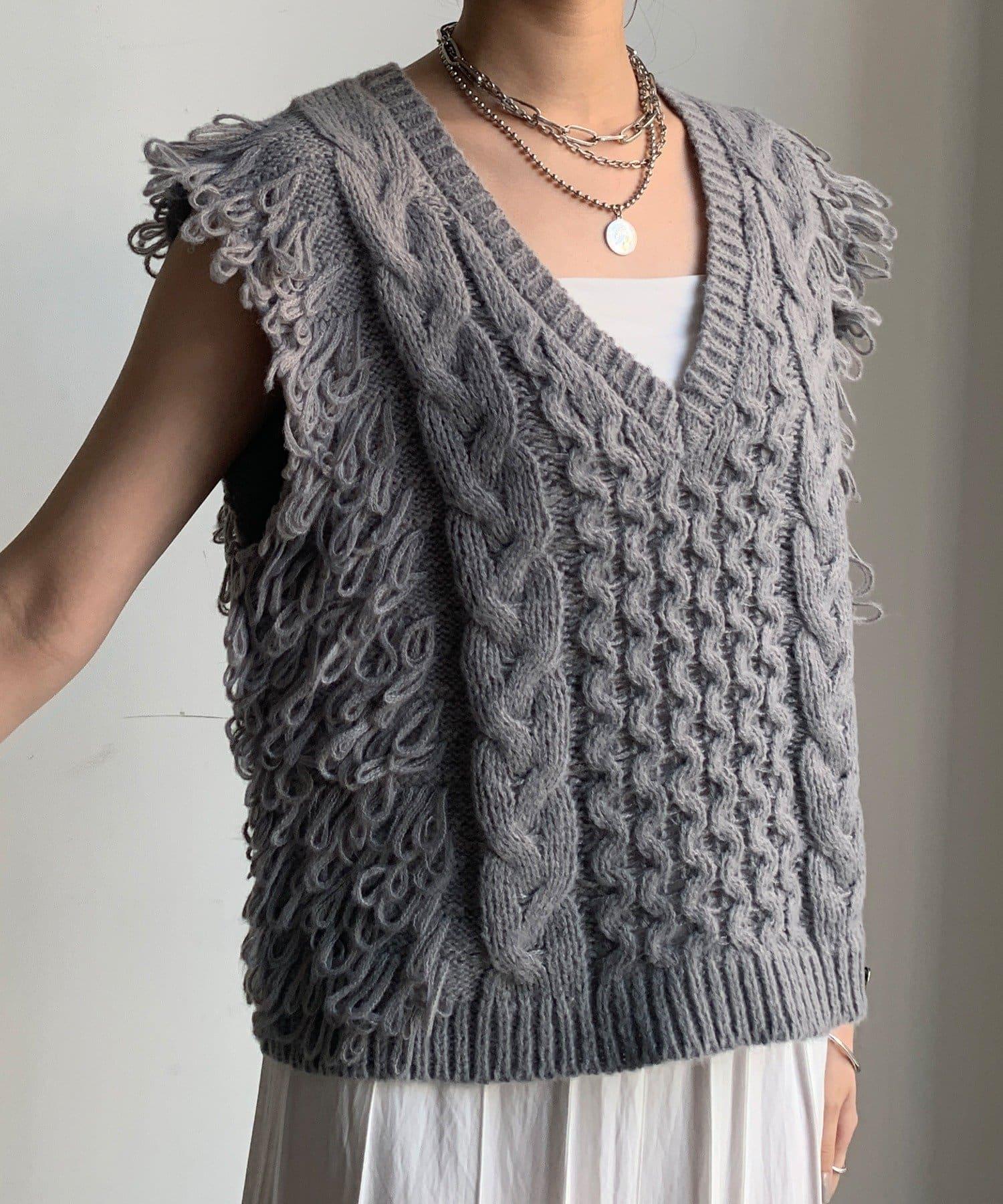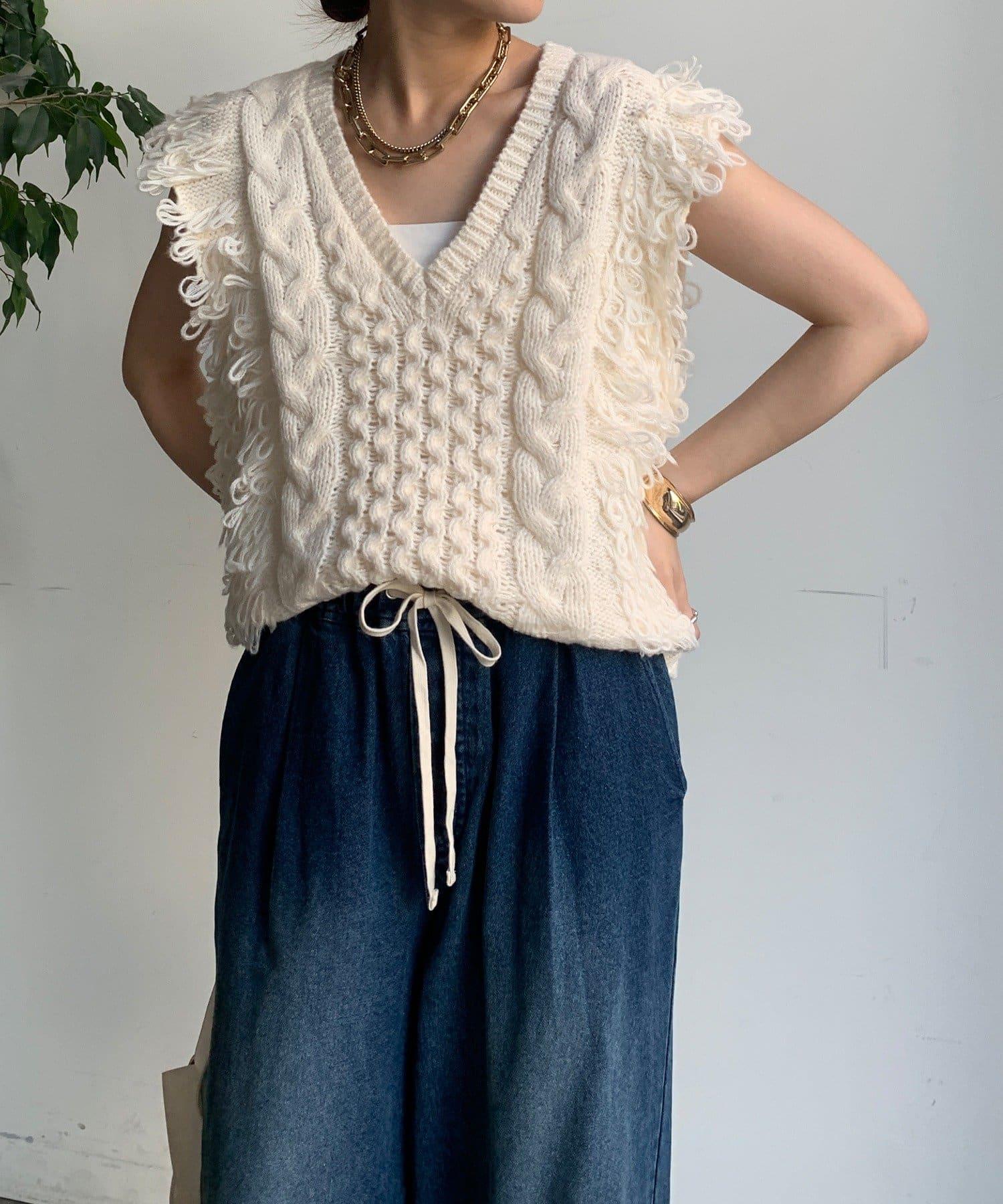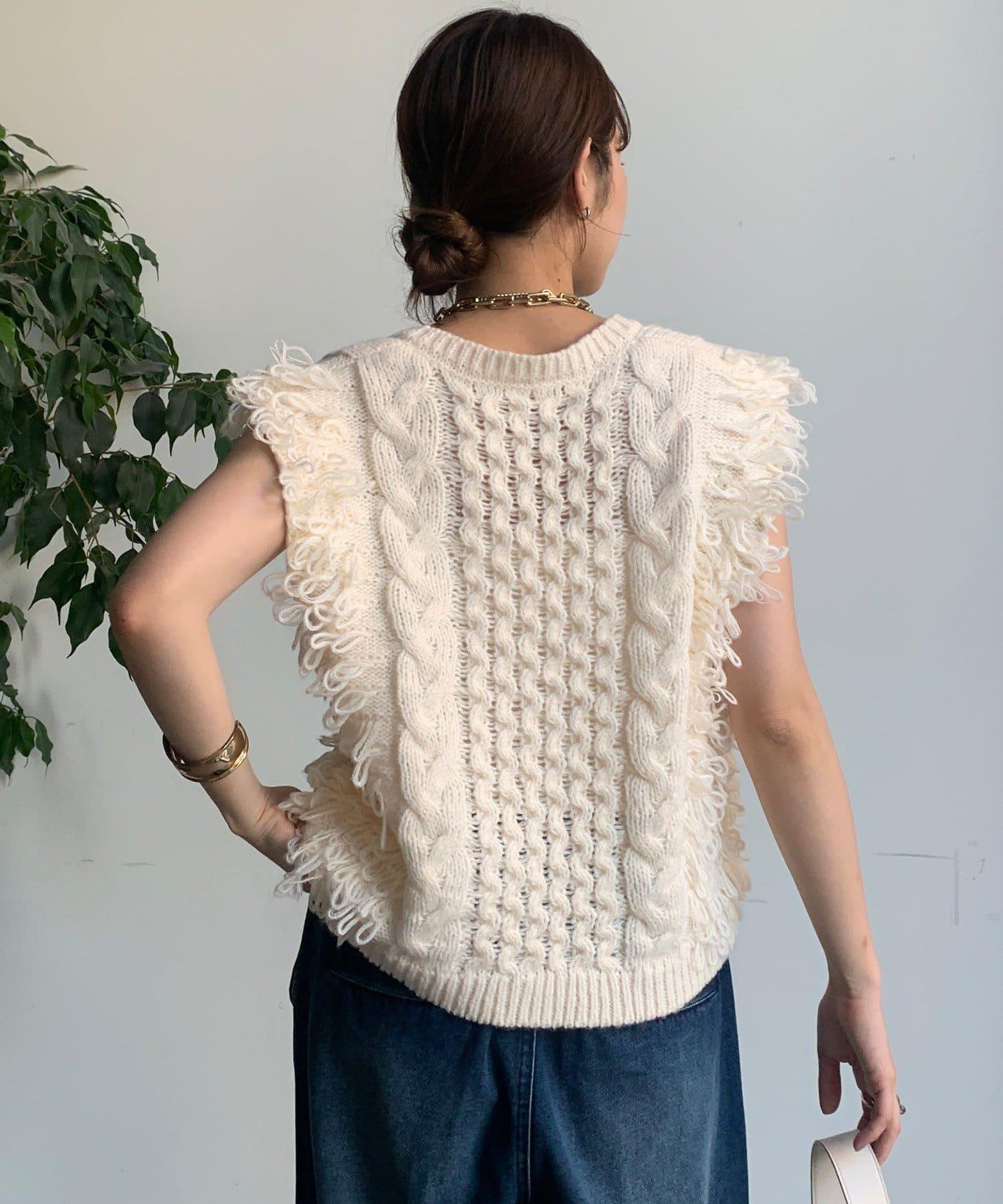 這款針織馬甲醒目的環形流蘇為您的著裝增添了層次感和趣味性。