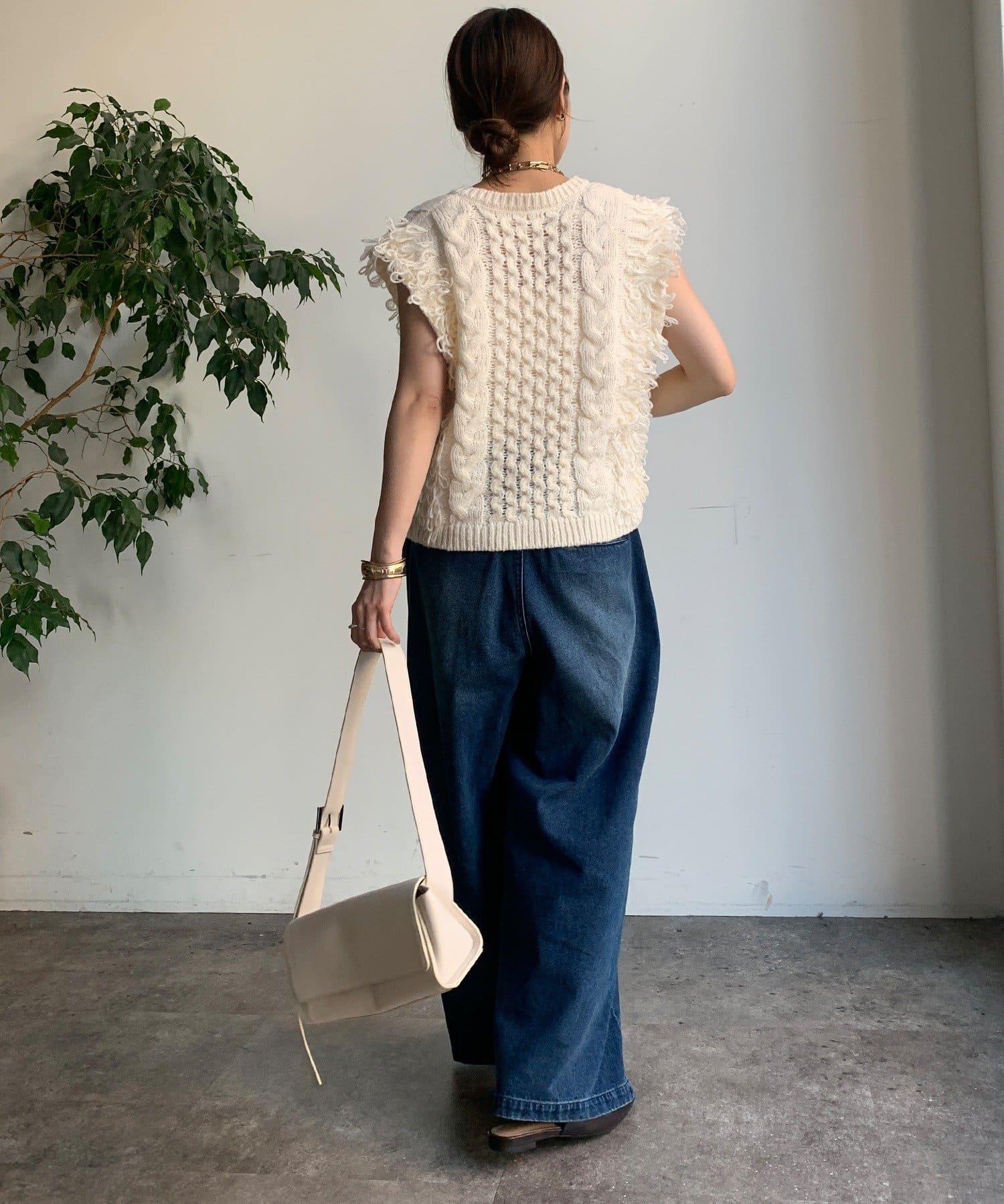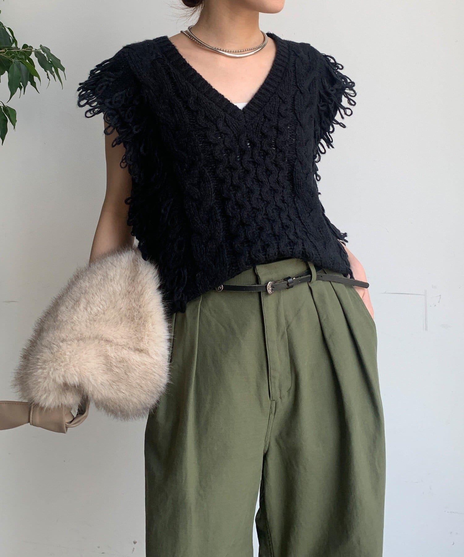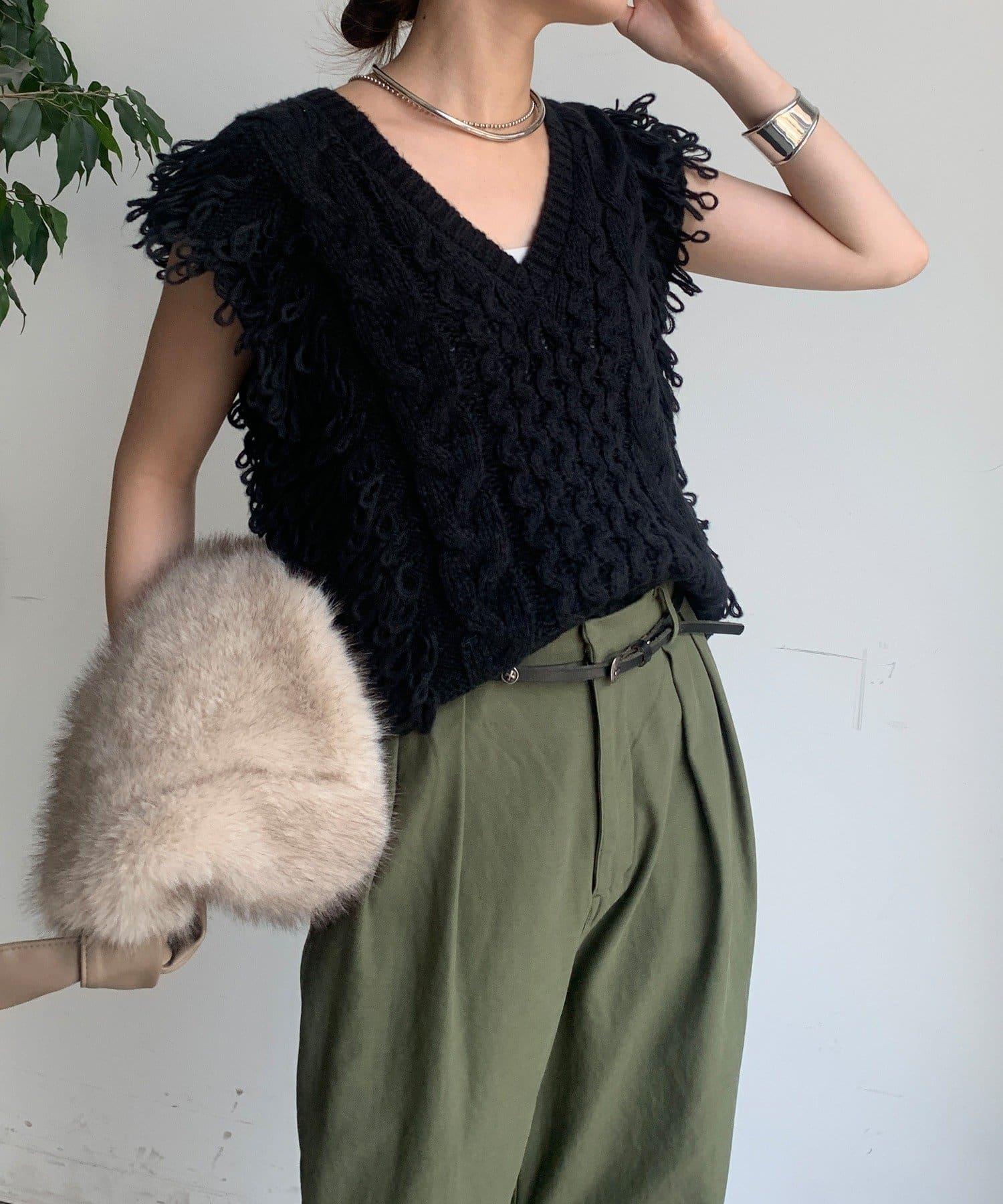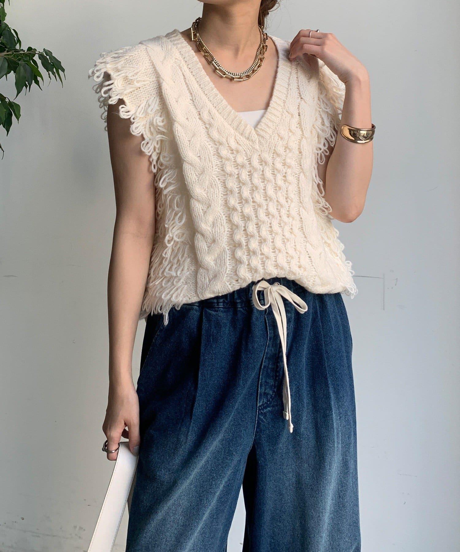 這款針織馬甲醒目的環形流蘇為您的著裝增添了層次感和趣味性。
