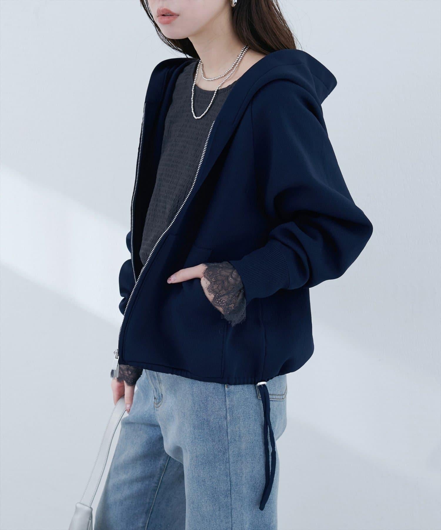 兩側的抽繩和袖口的羅紋設計凸顯了利落的輪廓。