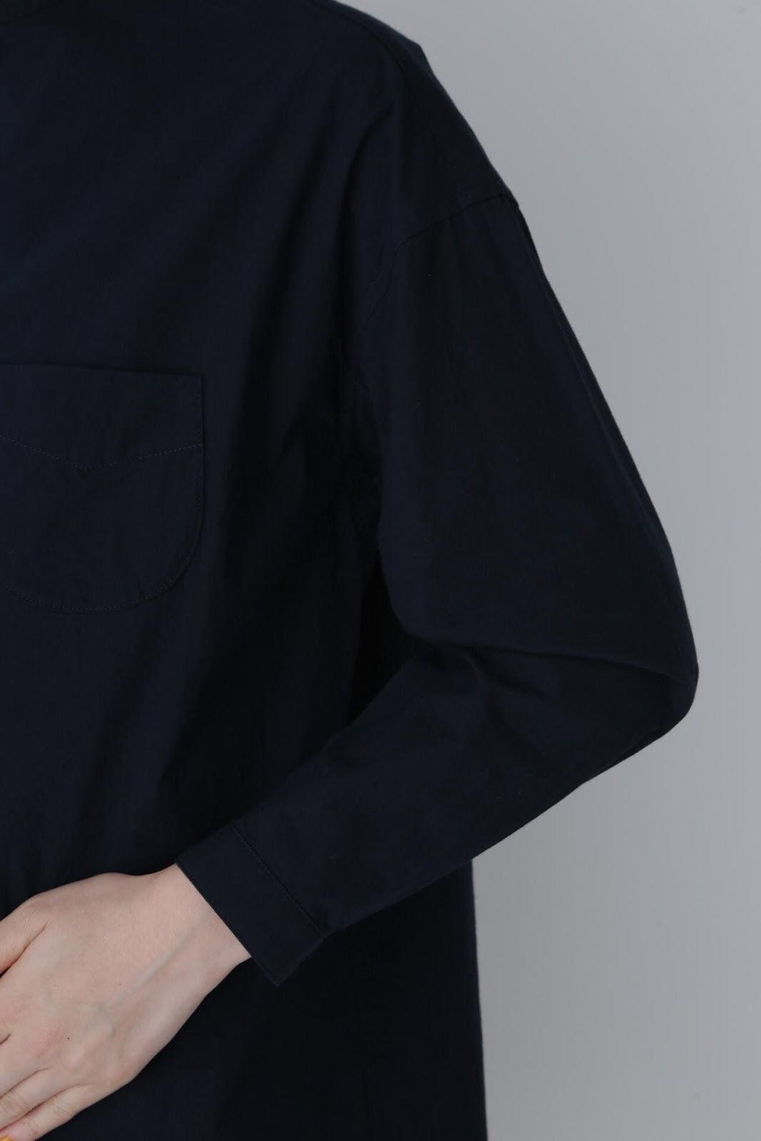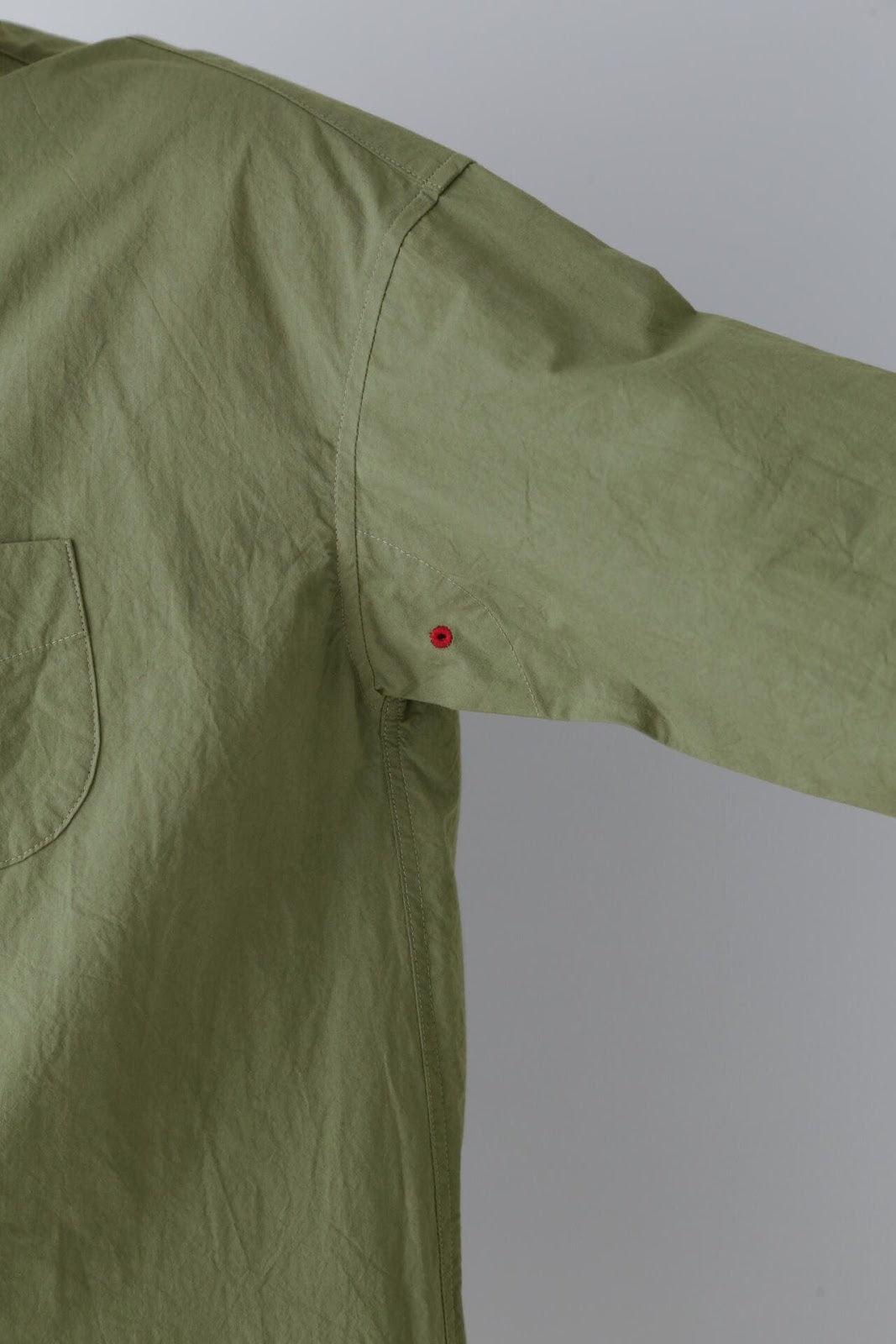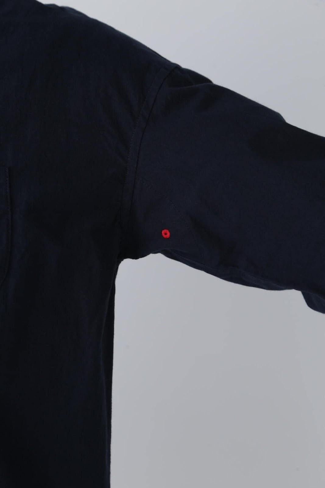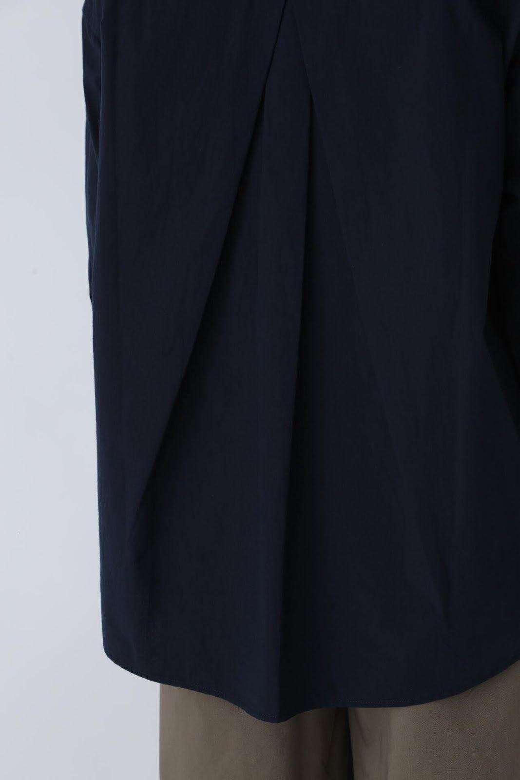 設計採用具有體積感的罩衫(A 字形)廓形,肩部刻意下垂,後背雙襉。前短後長的功能設計用於運動裝,腋下的菊花孔以紅色鏤空,留下了海軍的印記。帶有金屬孔的原版貝殼紐扣是另一大特色。這件帶領海軍罩衫既可作為內搭,也可外搭一件 T 恤。[材質要點】追求自然褶皺的皺紋棉質面料。