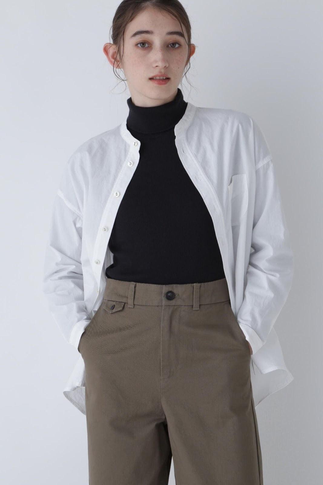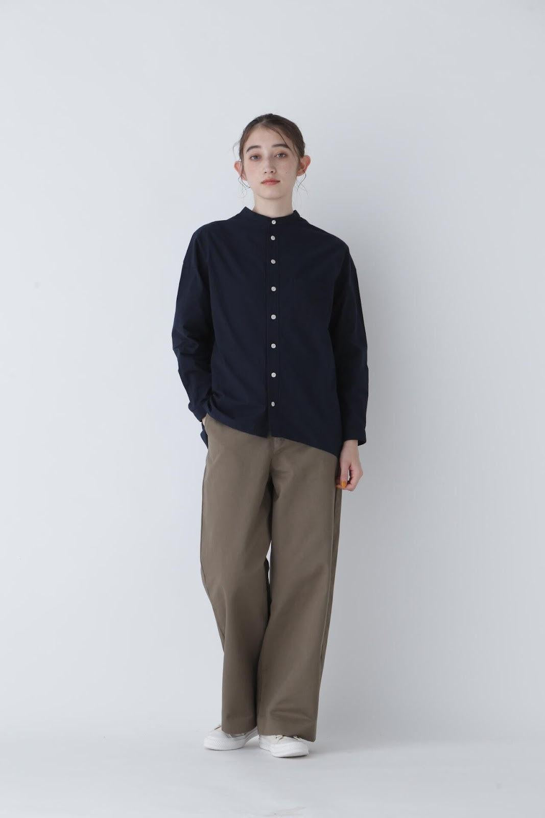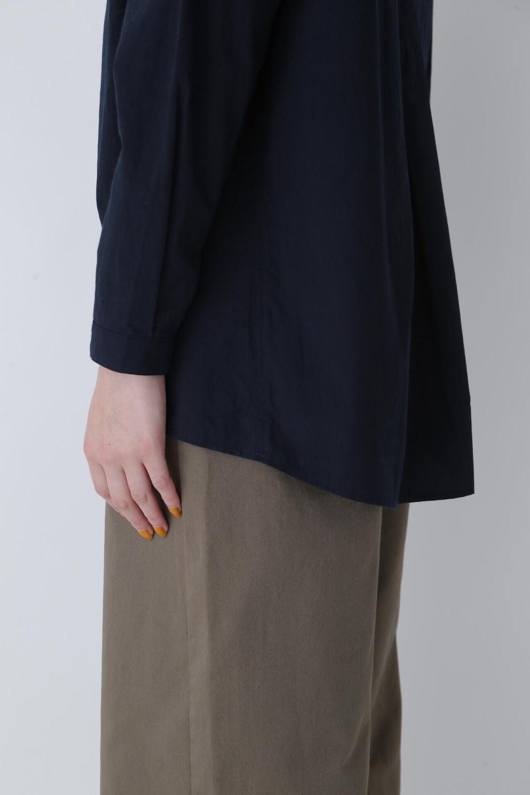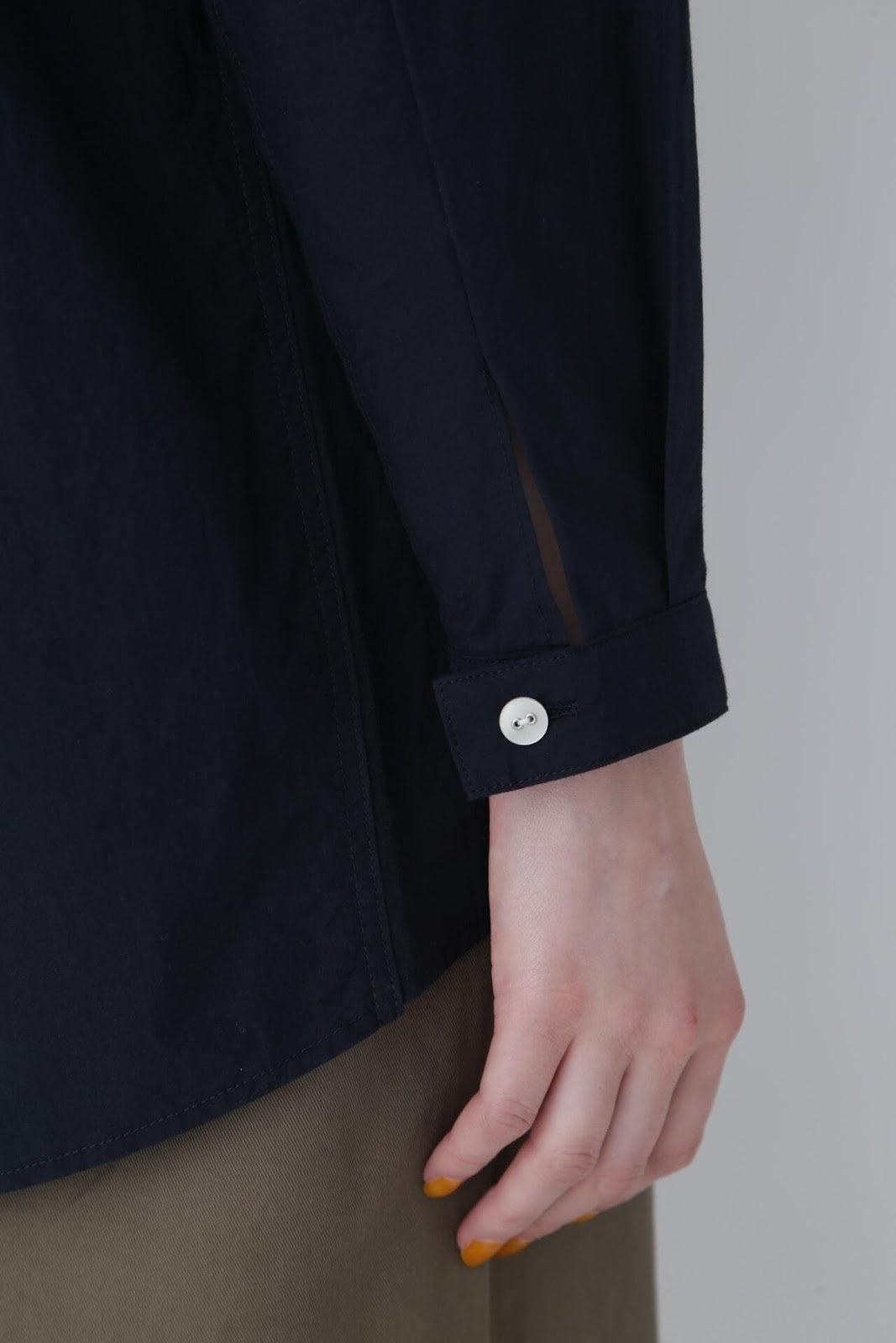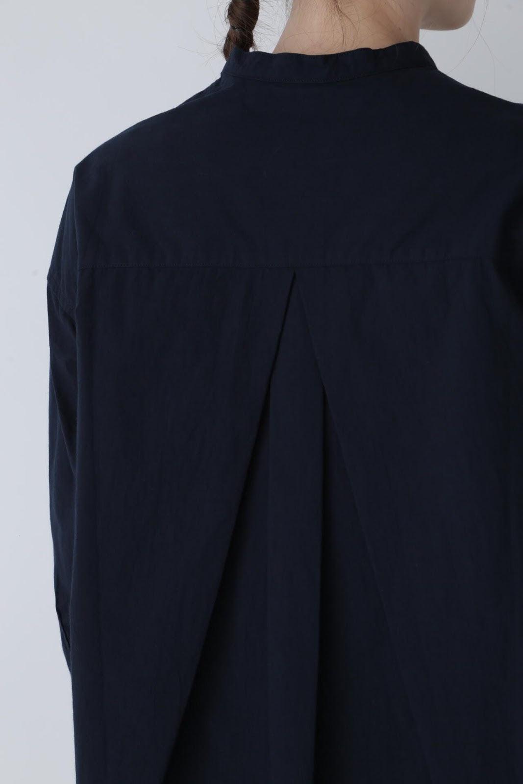 設計採用具有體積感的罩衫(A 字形)廓形,肩部刻意下垂,後背雙襉。前短後長的功能設計用於運動裝,腋下的菊花孔以紅色鏤空,留下了海軍的印記。帶有金屬孔的原版貝殼紐扣是另一大特色。這件帶領海軍罩衫既可作為內搭,也可外搭一件 T 恤。[材質要點】追求自然褶皺的皺紋棉質面料。
