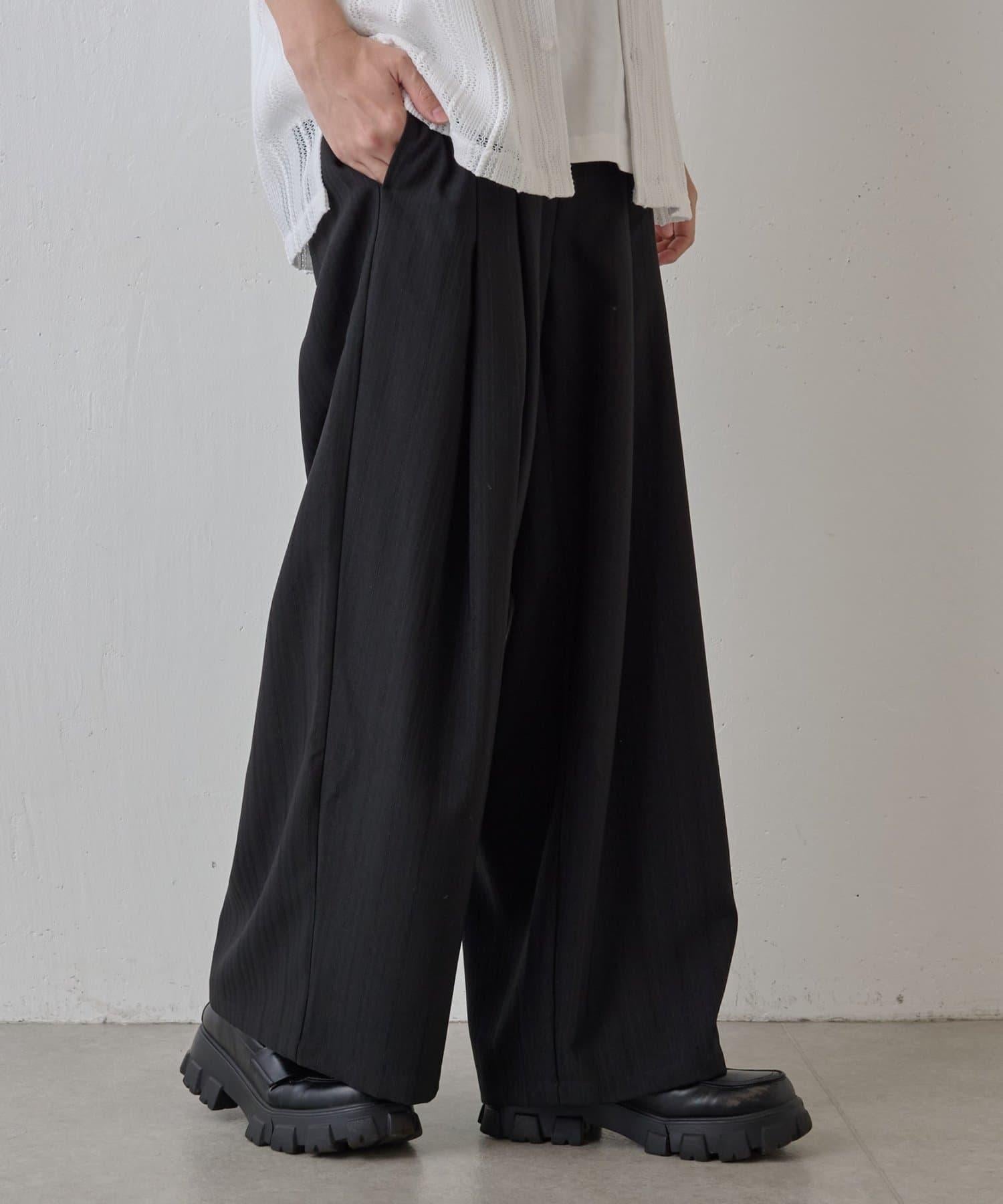 這款長褲採用隨機編織的人字形花紋設計,版型寬大。