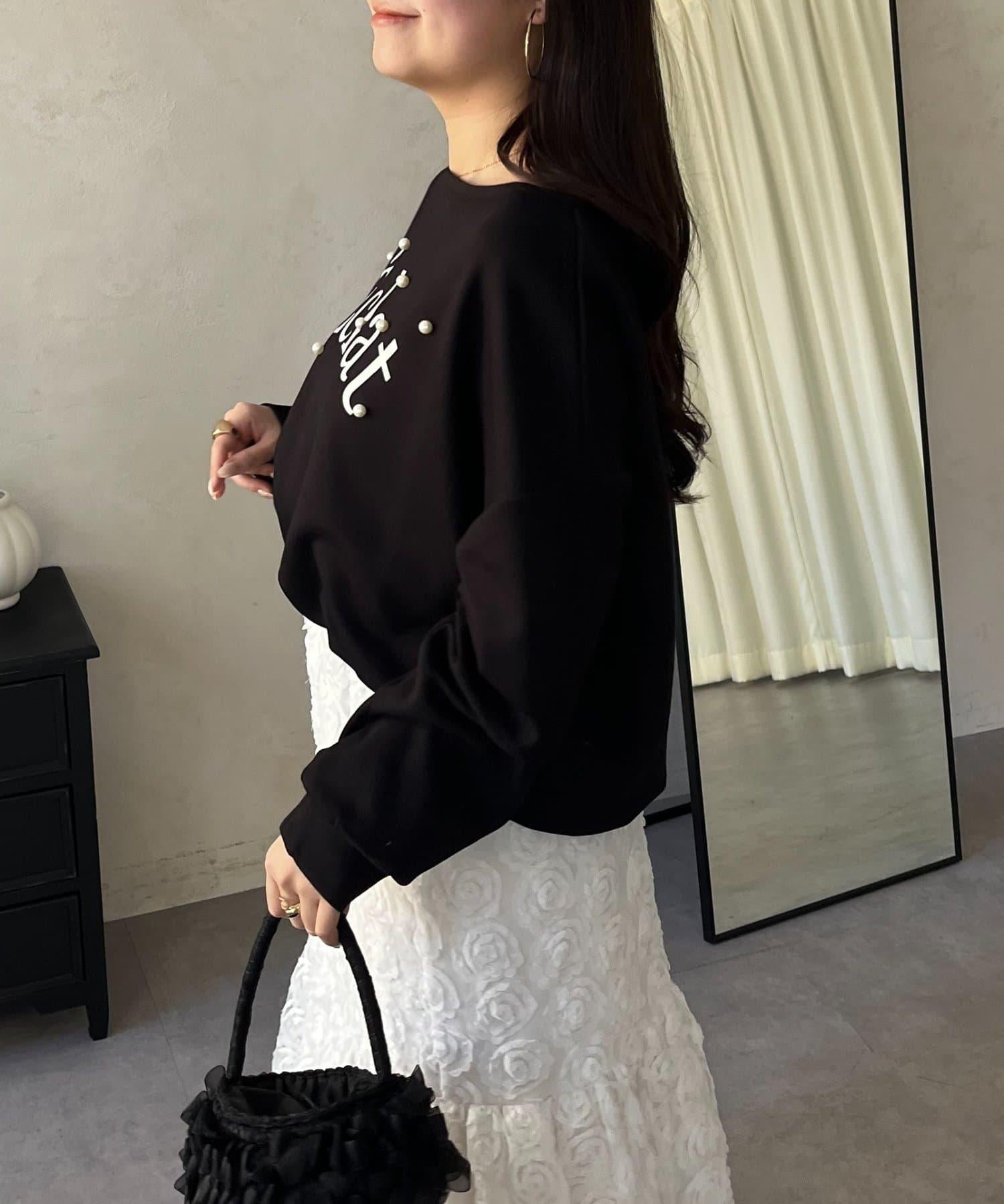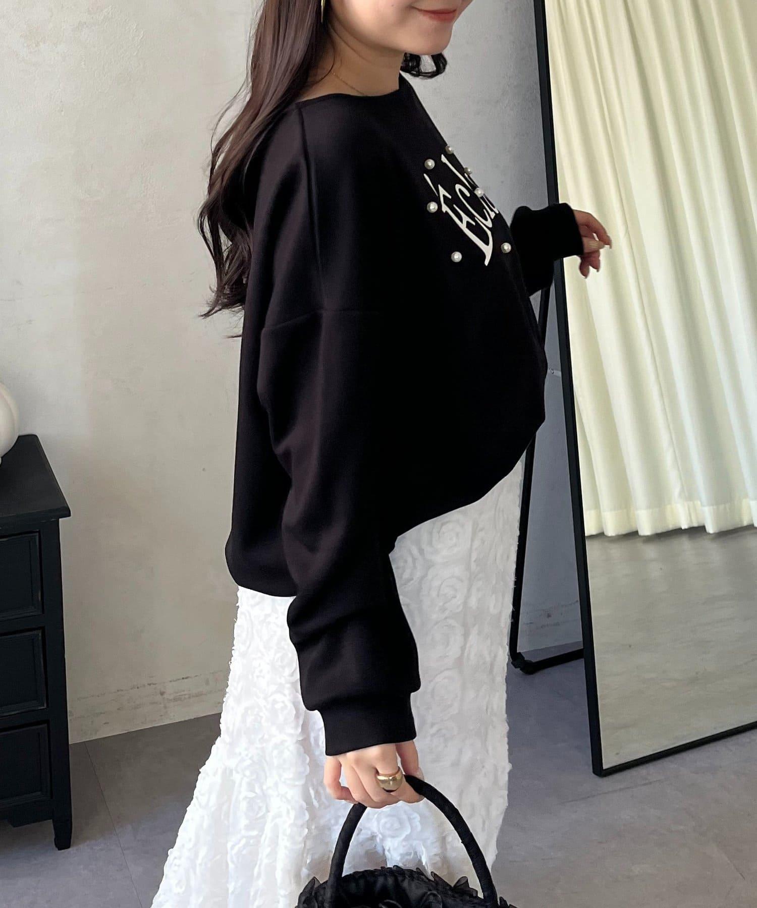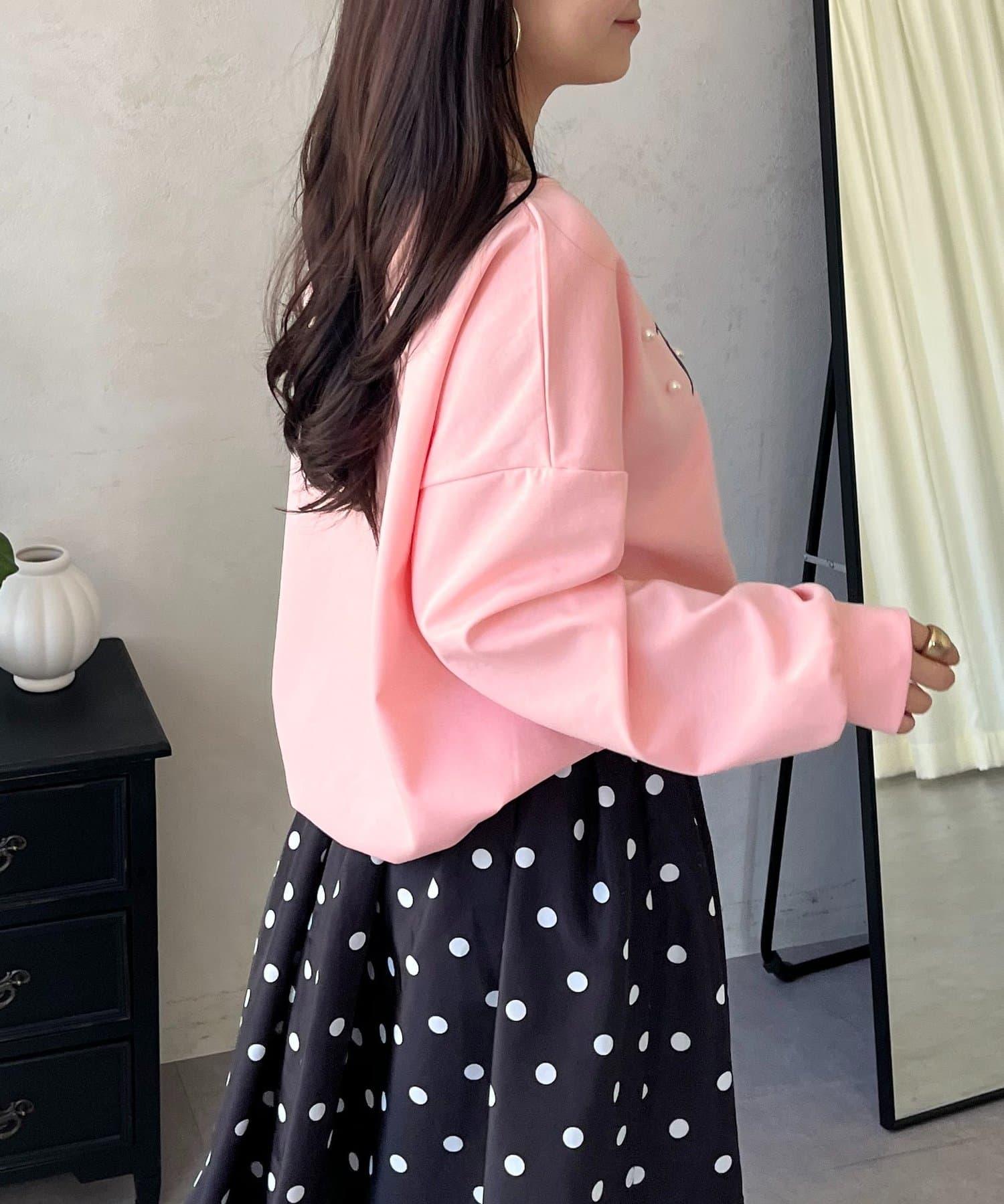短款運動衫上隨意散落的珍珠吸引著人們的目光。