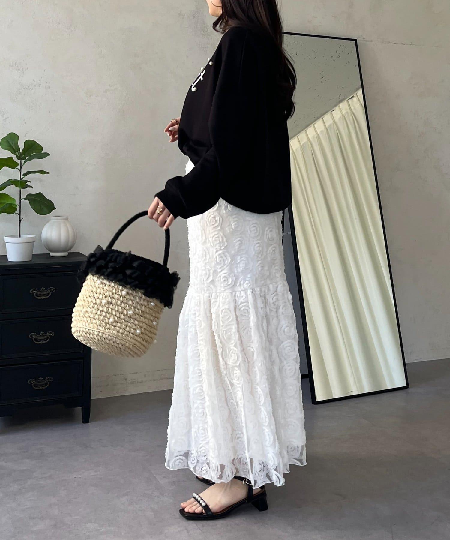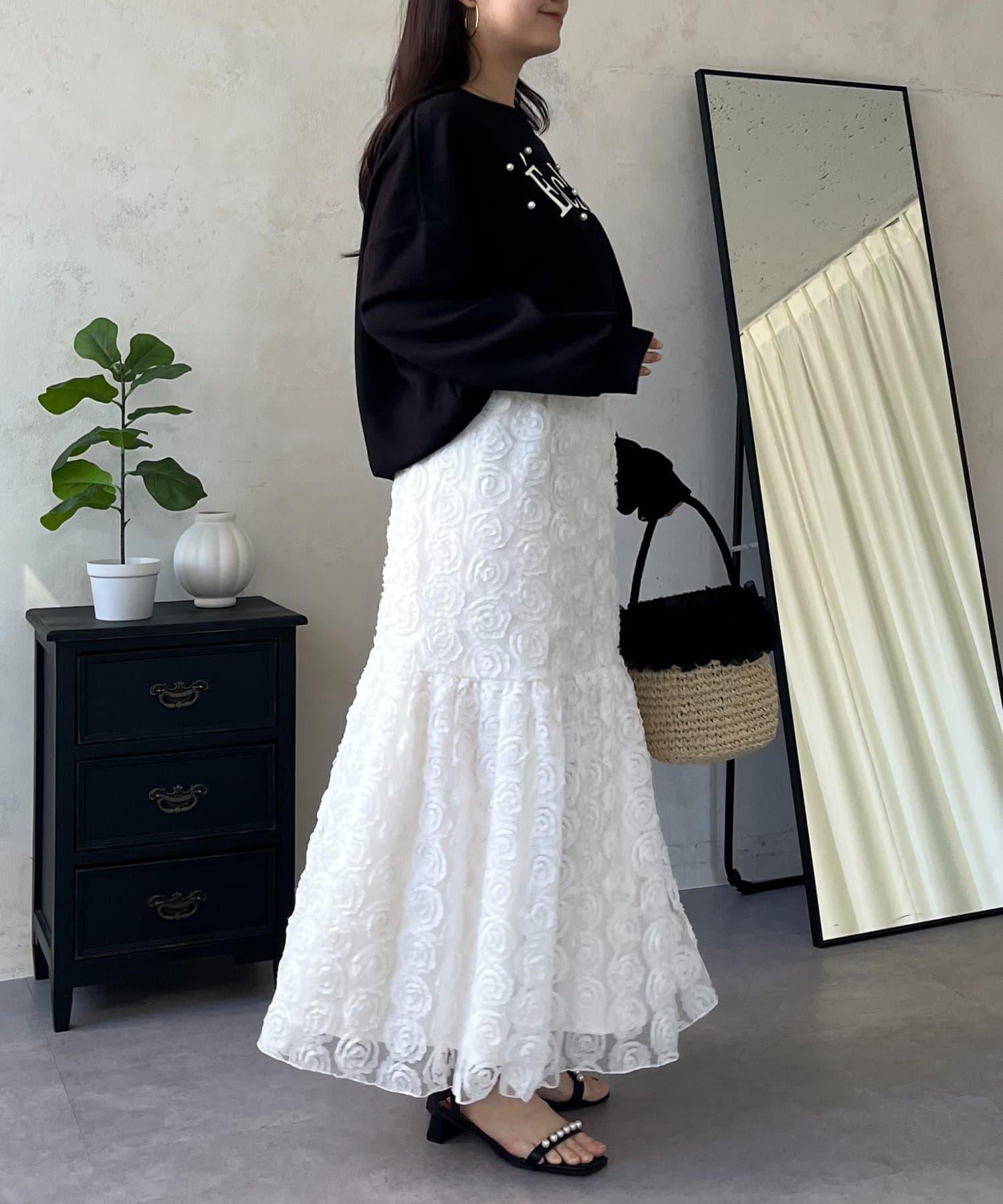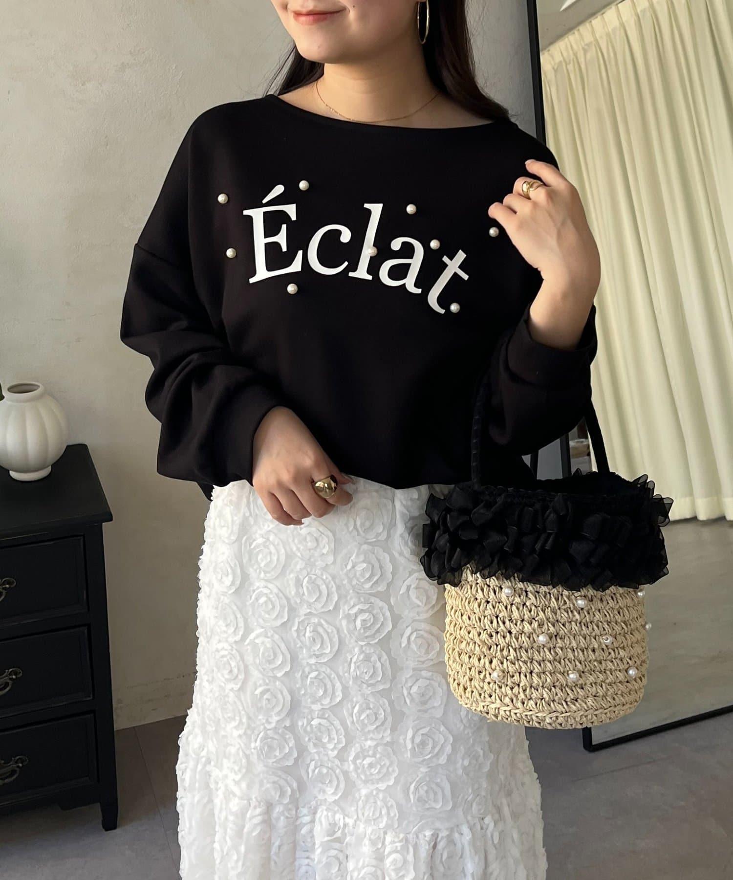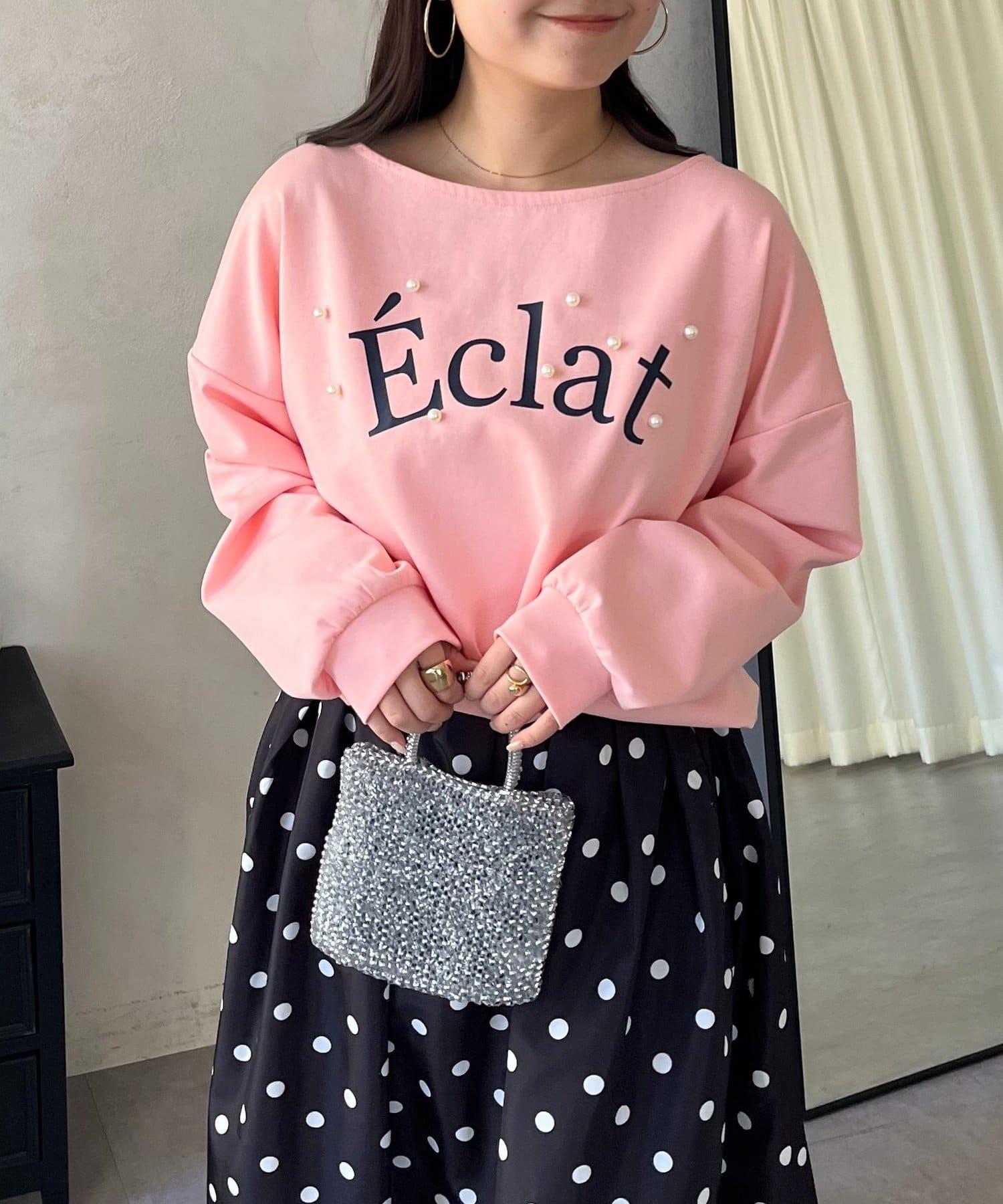 短款運動衫上隨意散落的珍珠吸引著人們的目光。