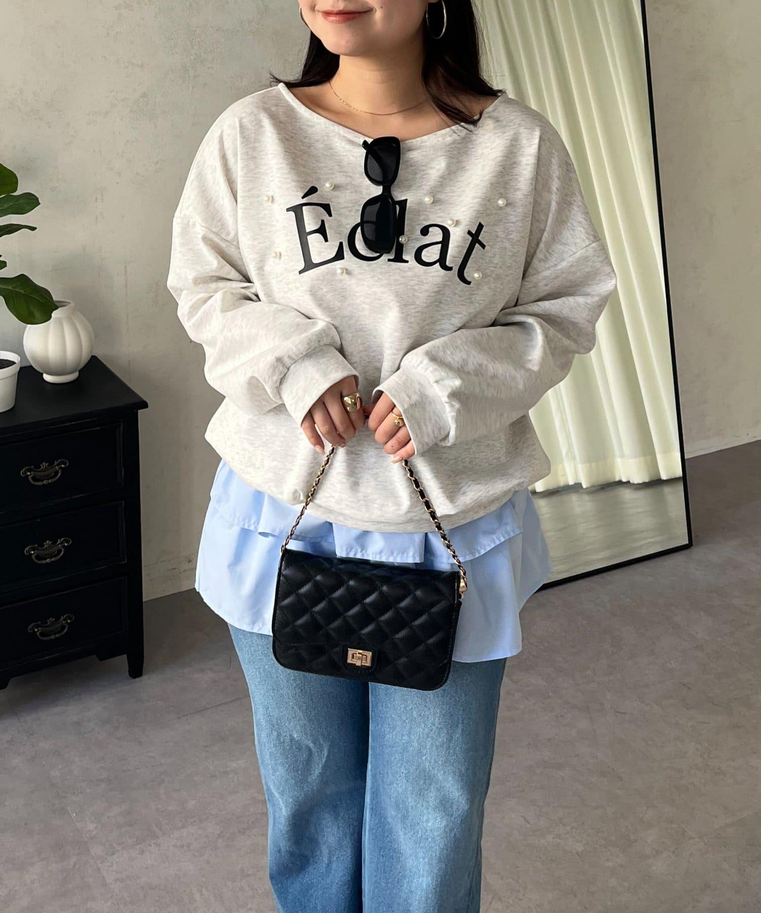 雖然是休閒款,但有了珍珠的點綴,也能穿出可愛、成熟的感覺。