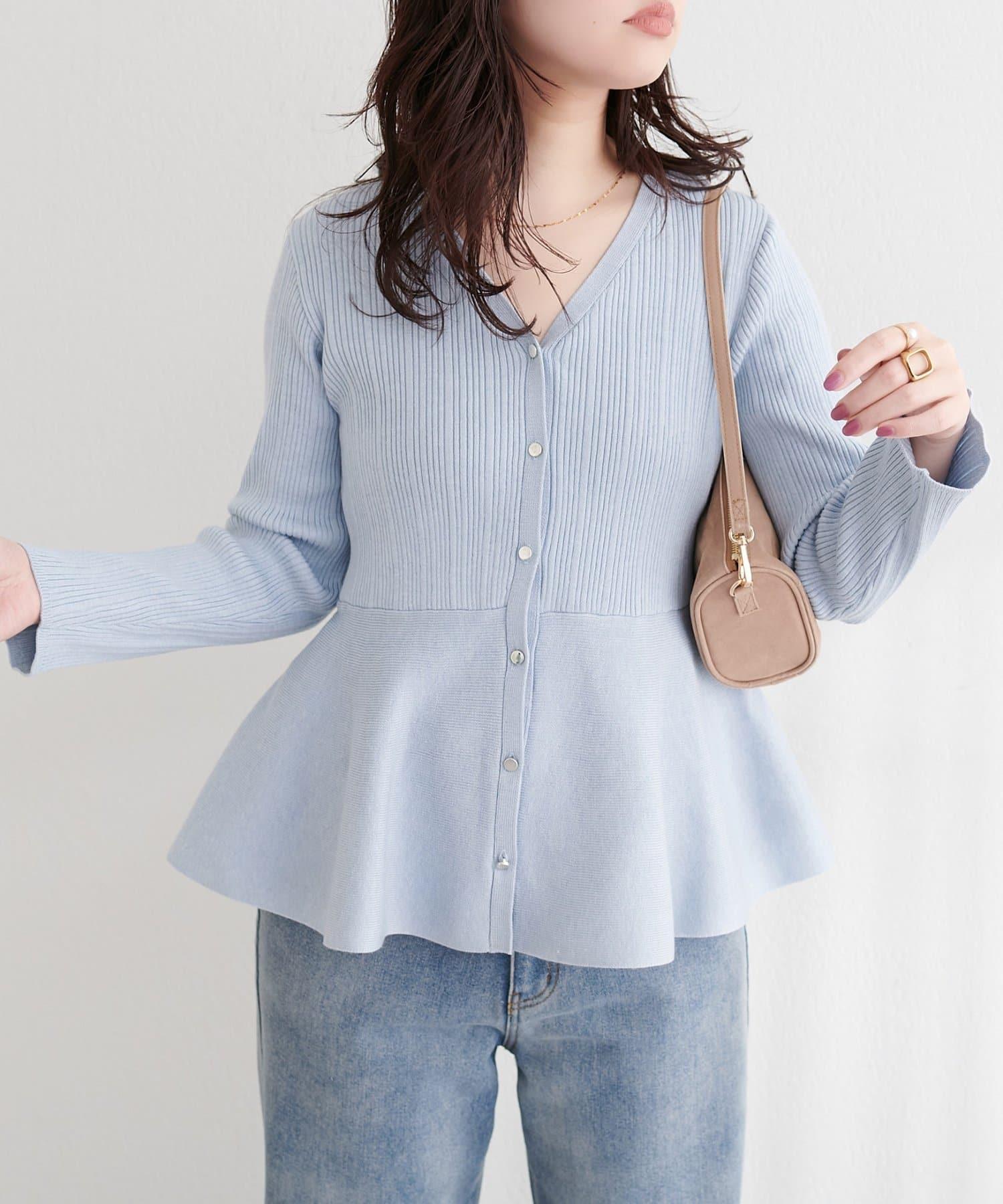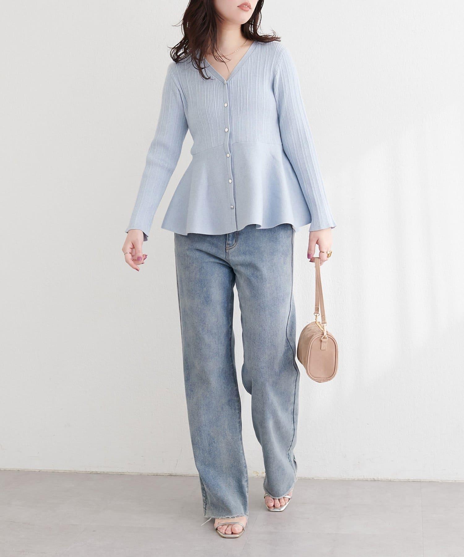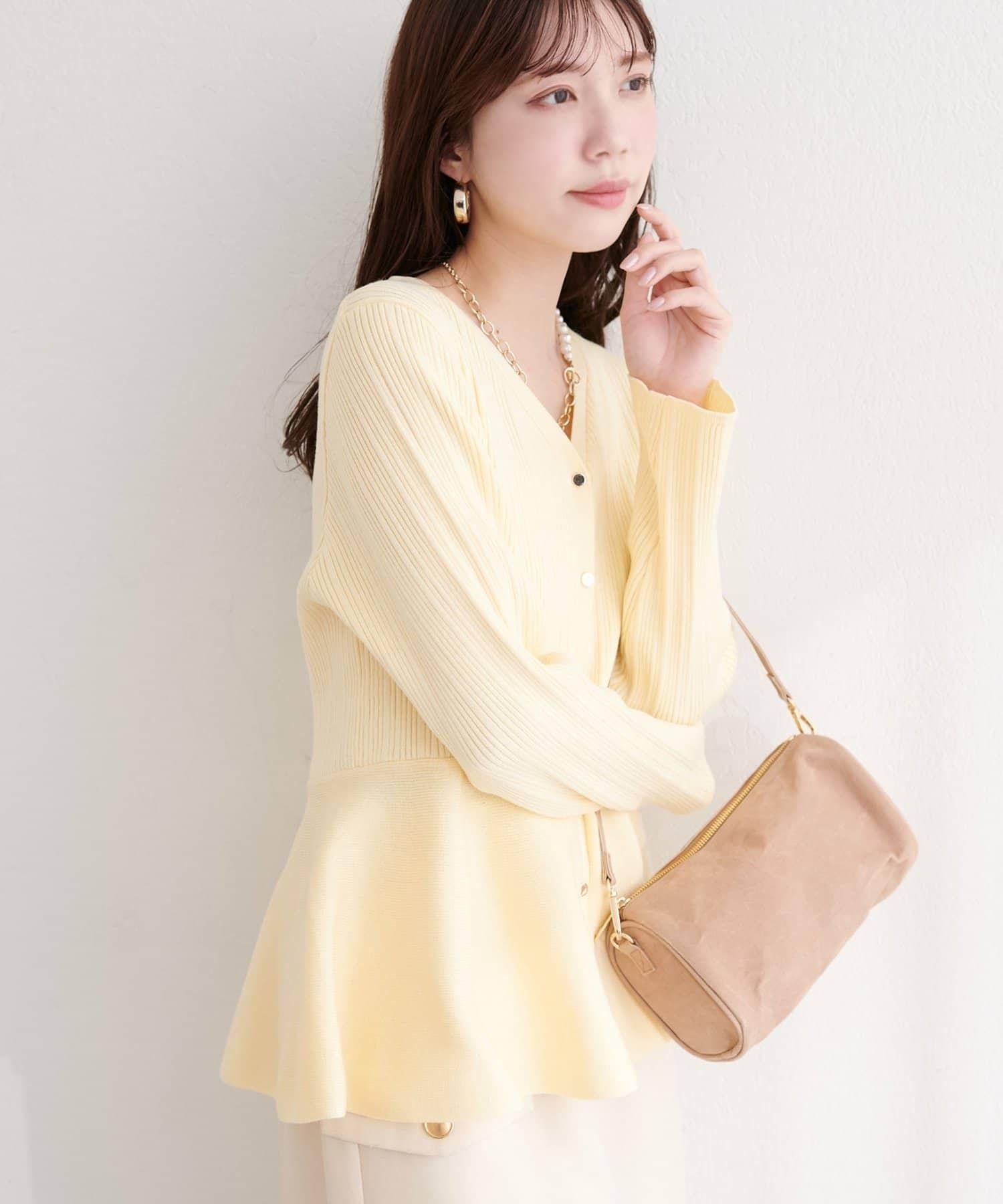 隨機羅紋 V 領 荷葉擺 針織開衫