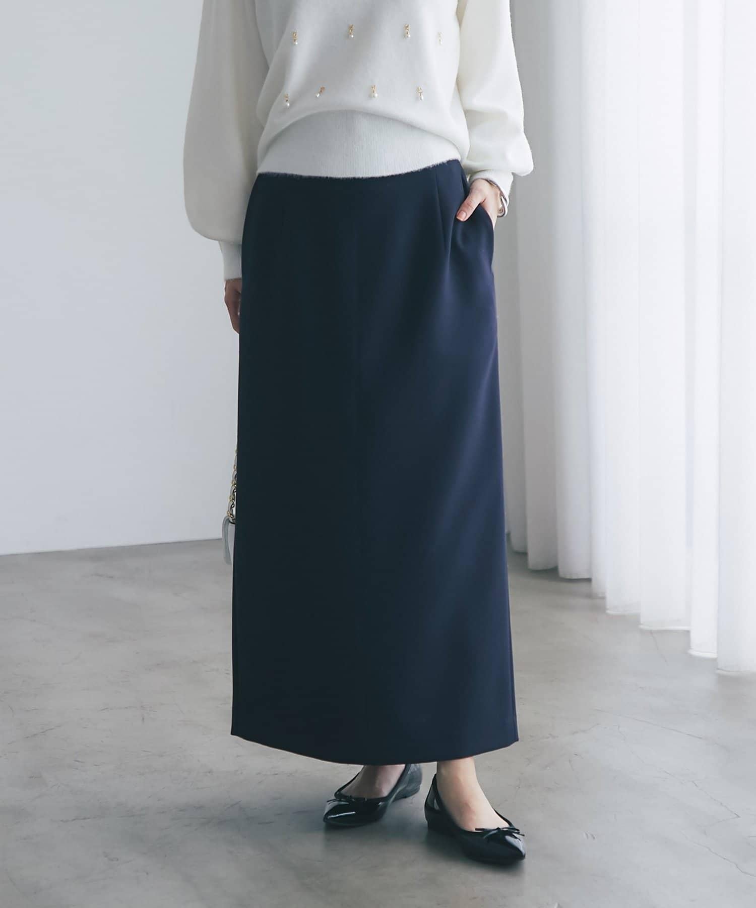 下襬略微收緊的輪廓營造出女性化的線條。