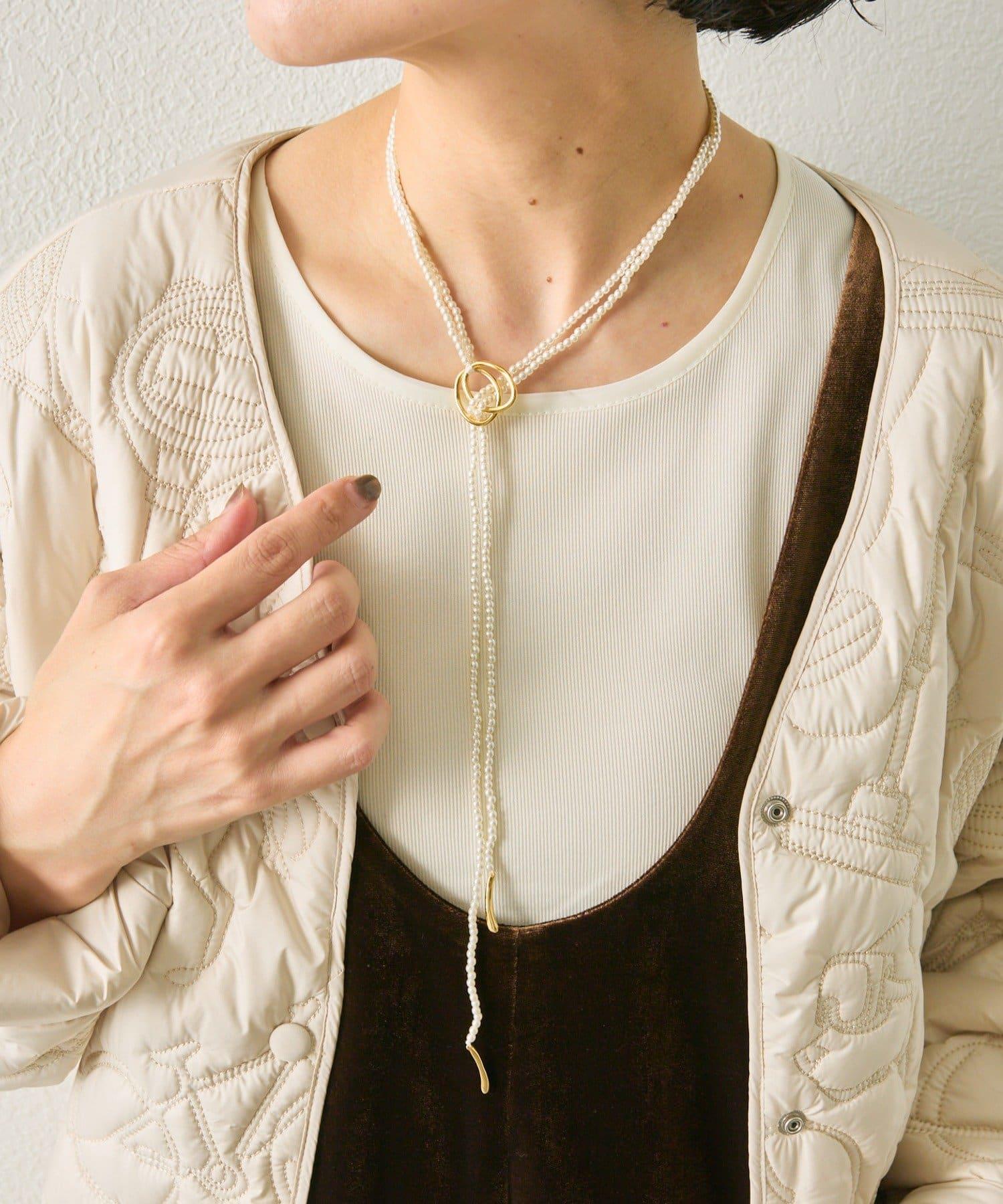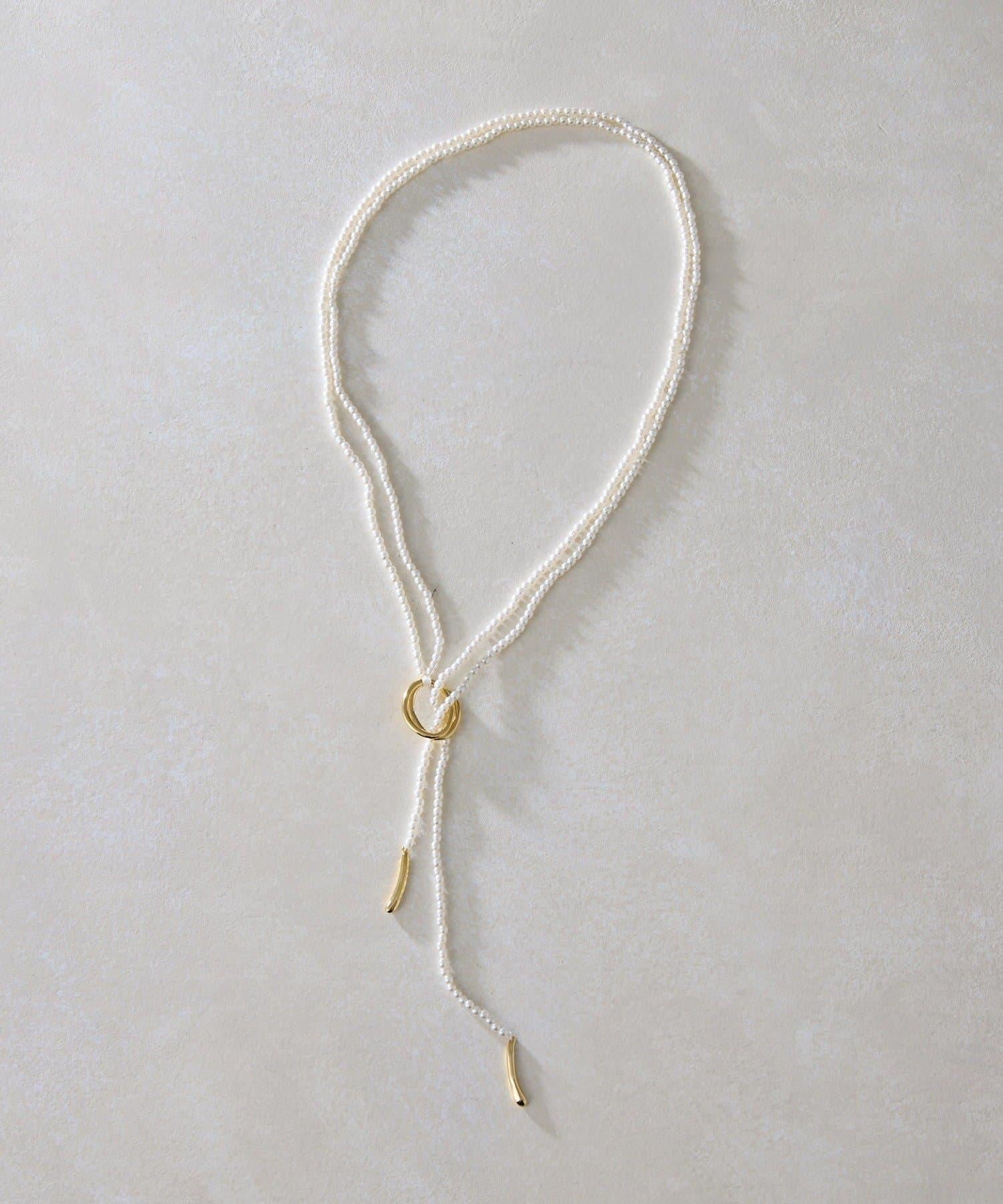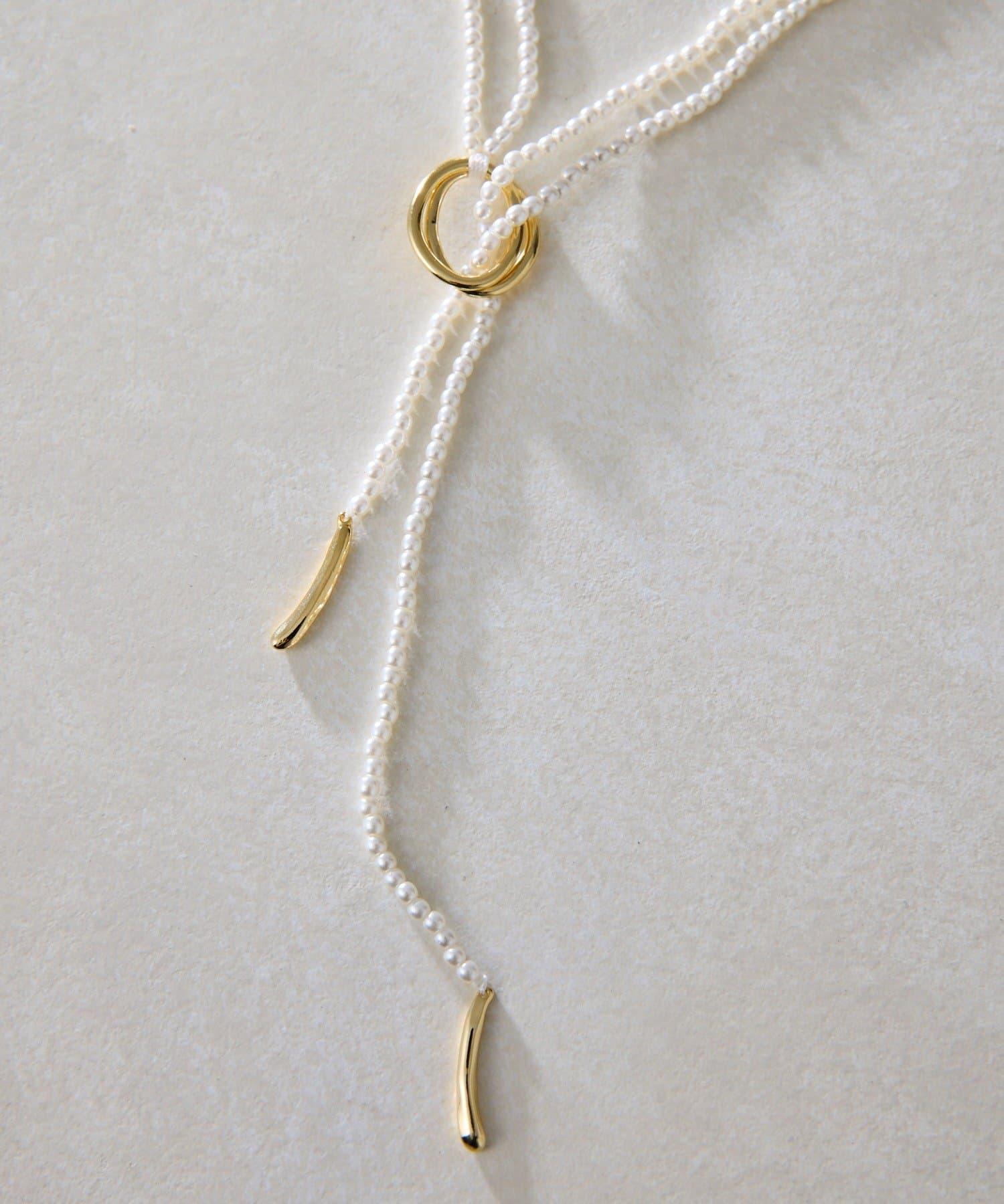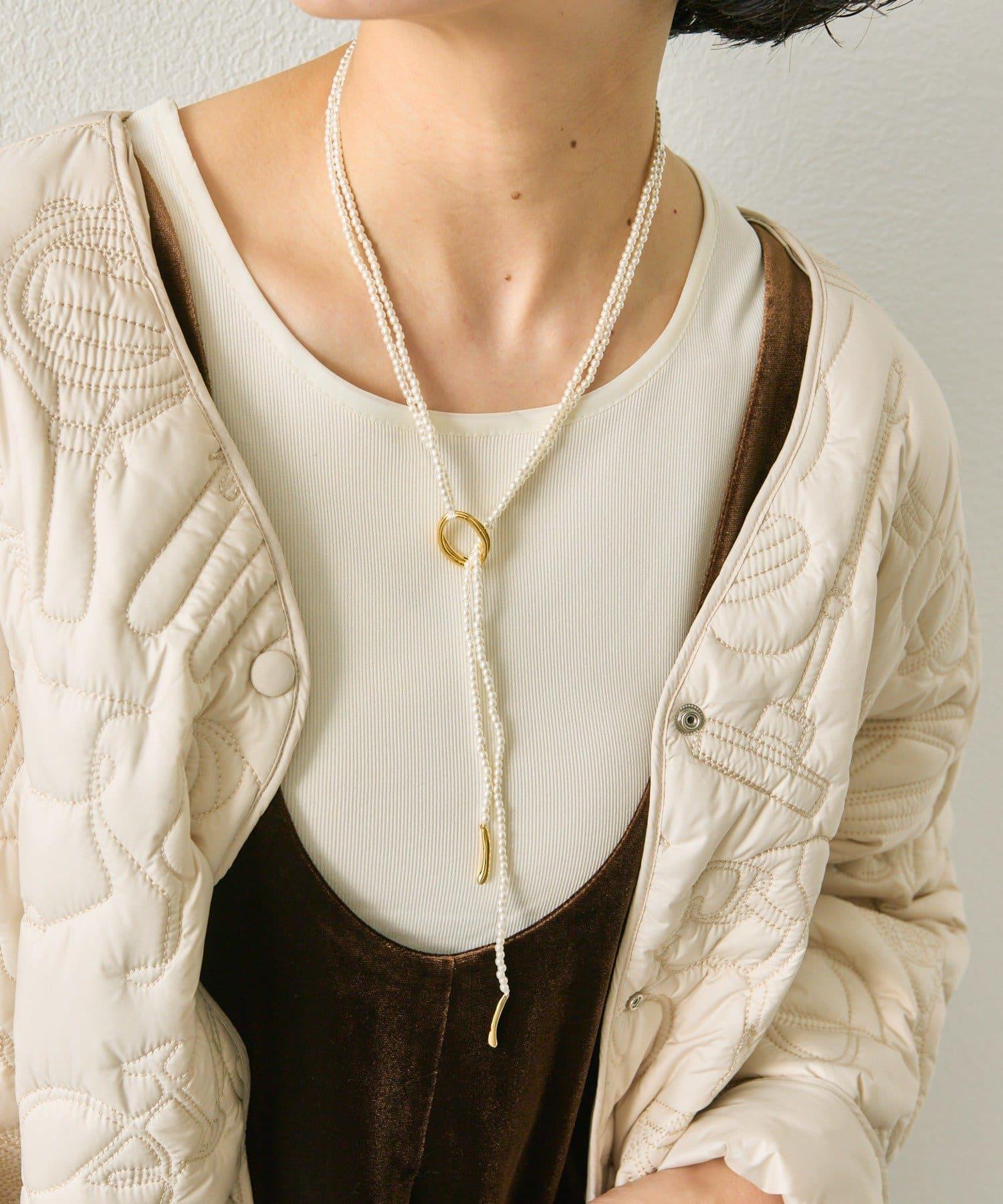 細小珍珠閃耀著優雅光澤的長款項鍊。