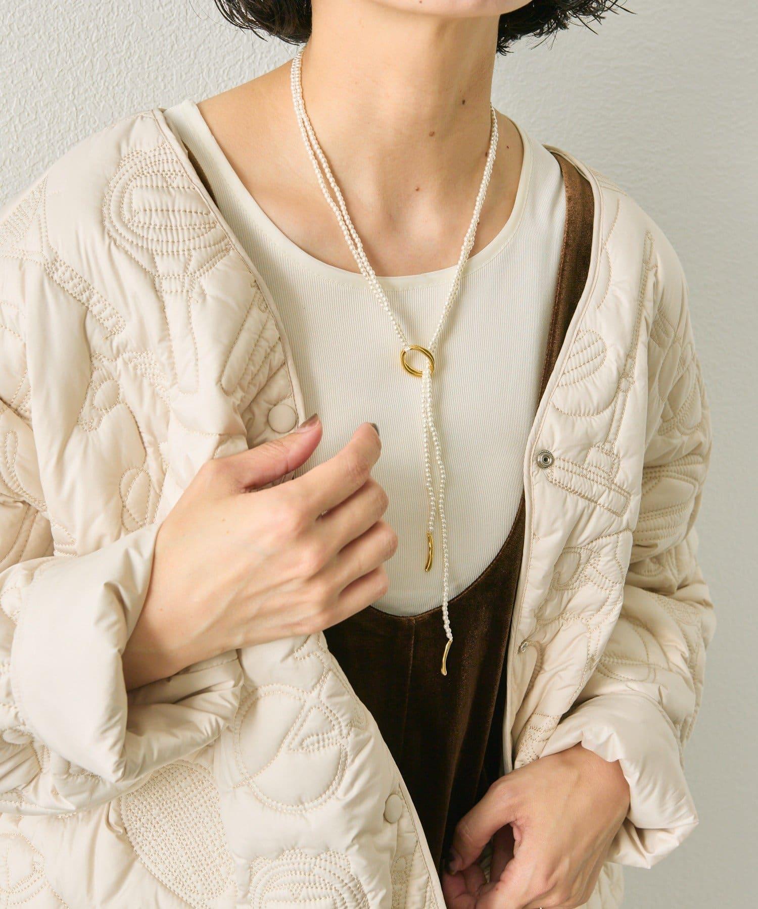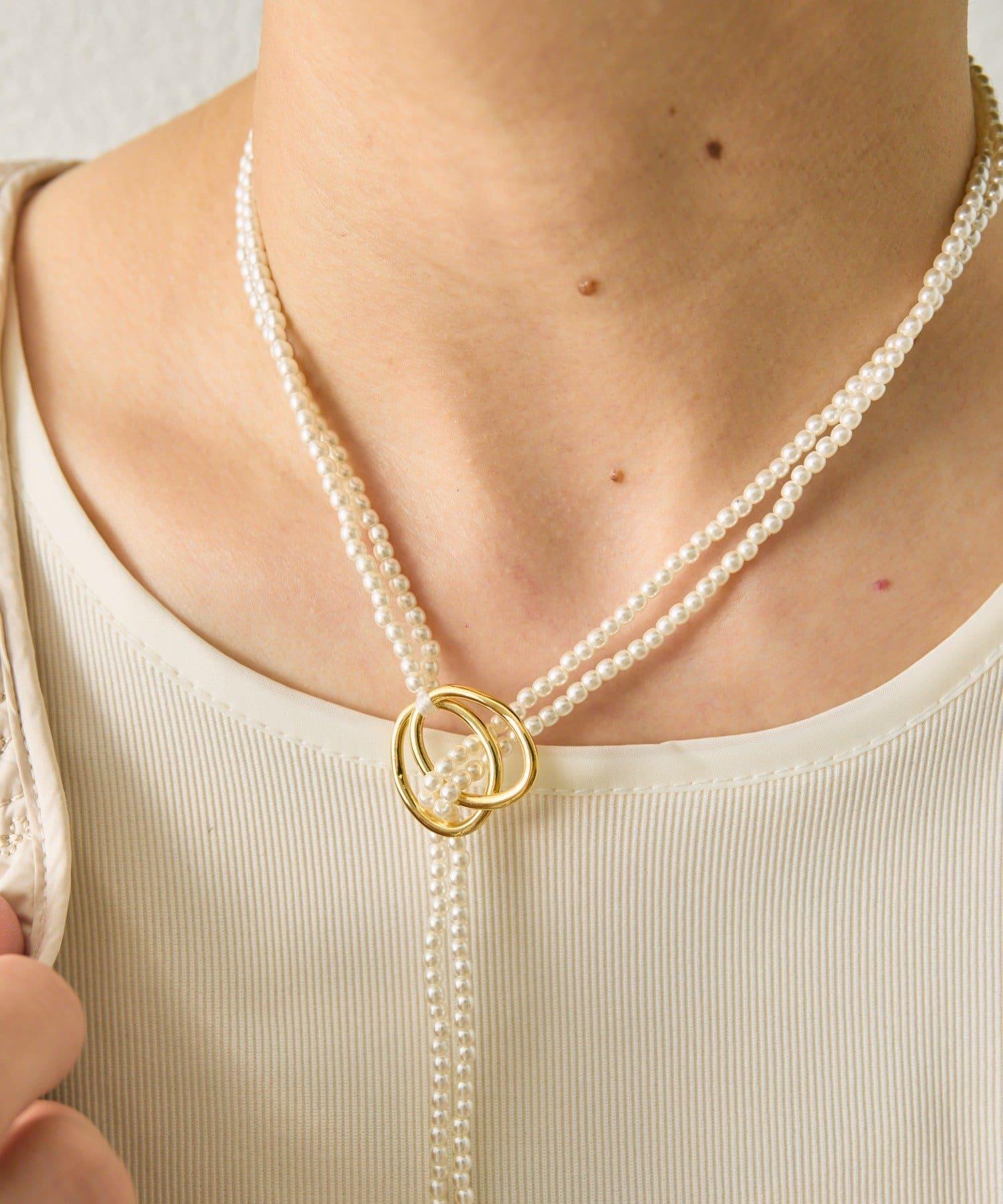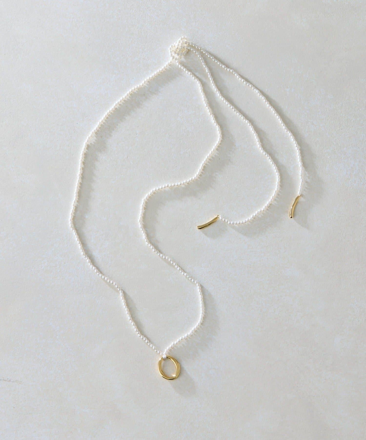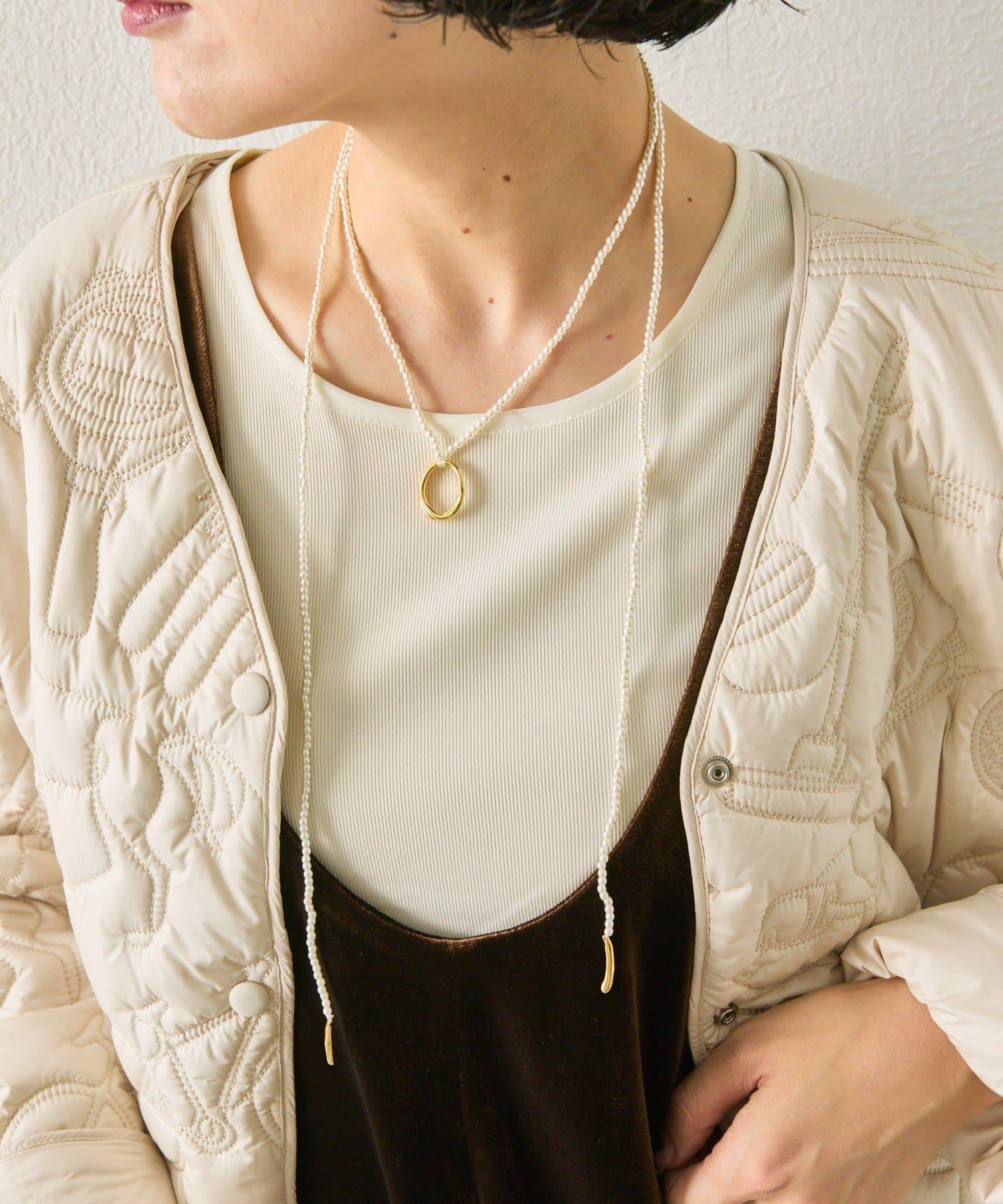 細小珍珠閃耀著優雅光澤的長款項鍊。
