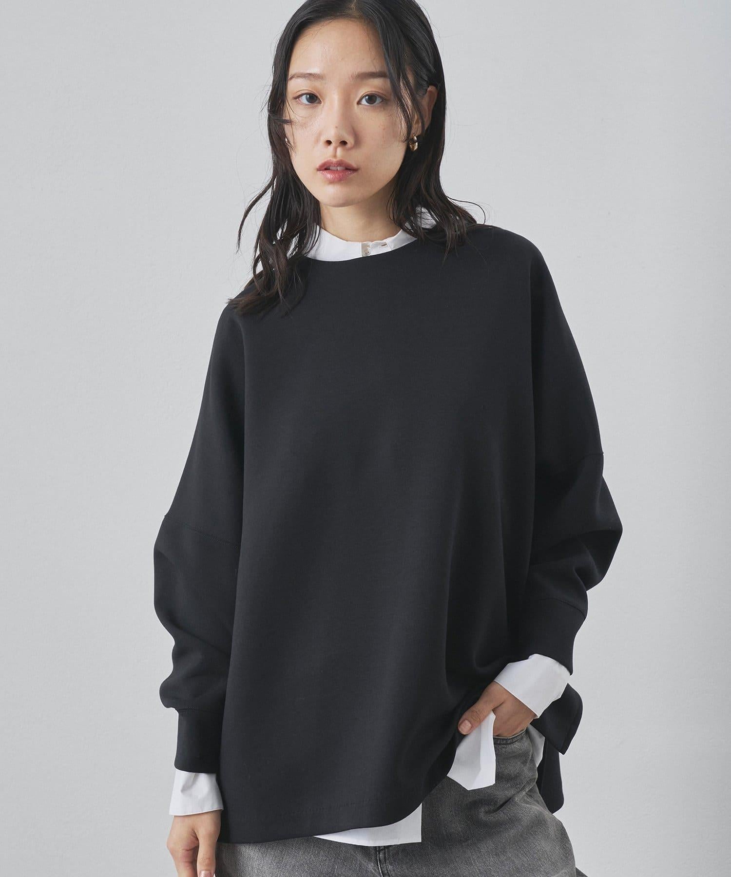 ■クルーネックのシンプルなデザインながら、ワイドな身幅と脇スリットで抜け感のあるシルエットを実現。