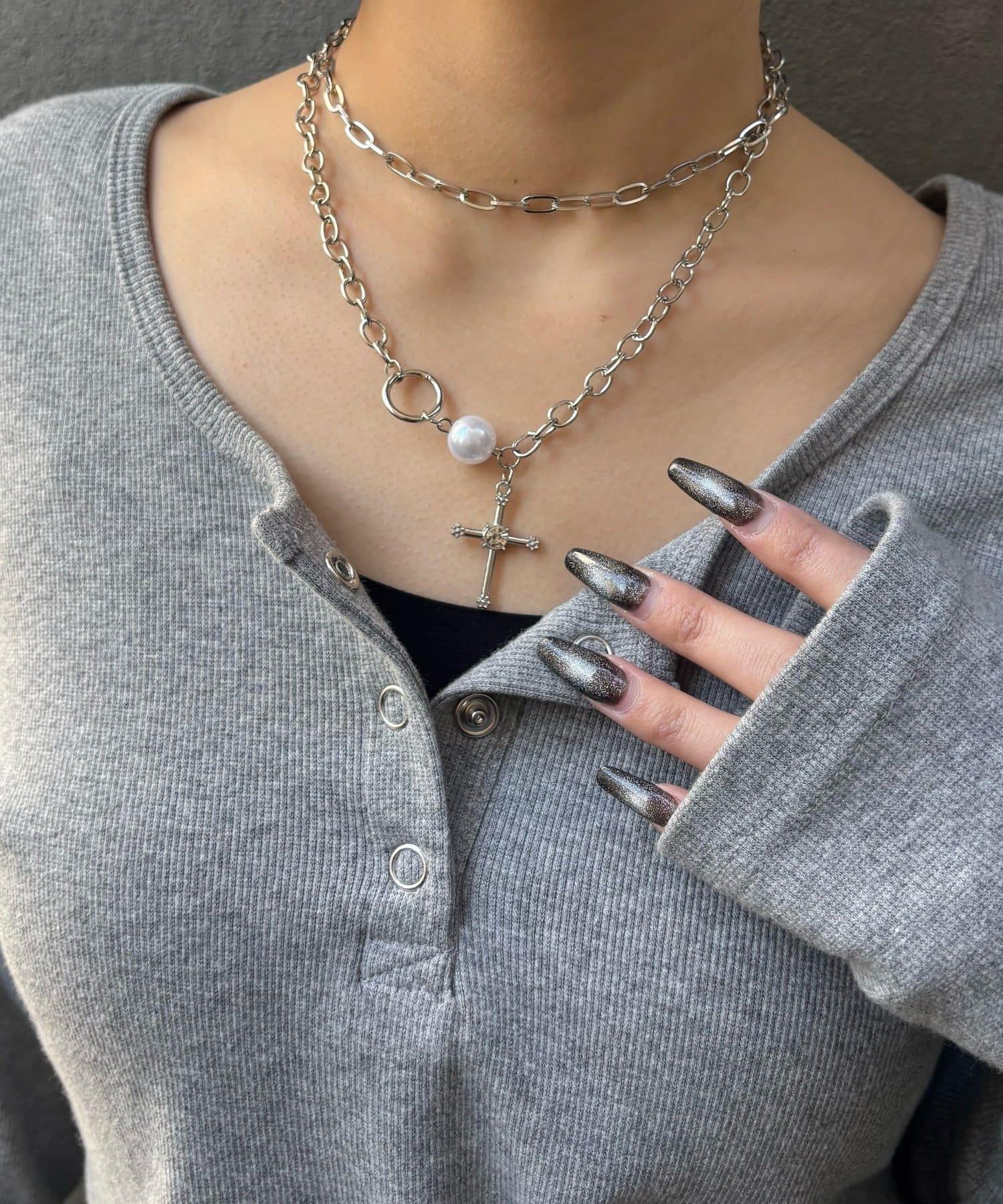 時尚的雙鏈十字架項鍊,彰顯前衛個性。