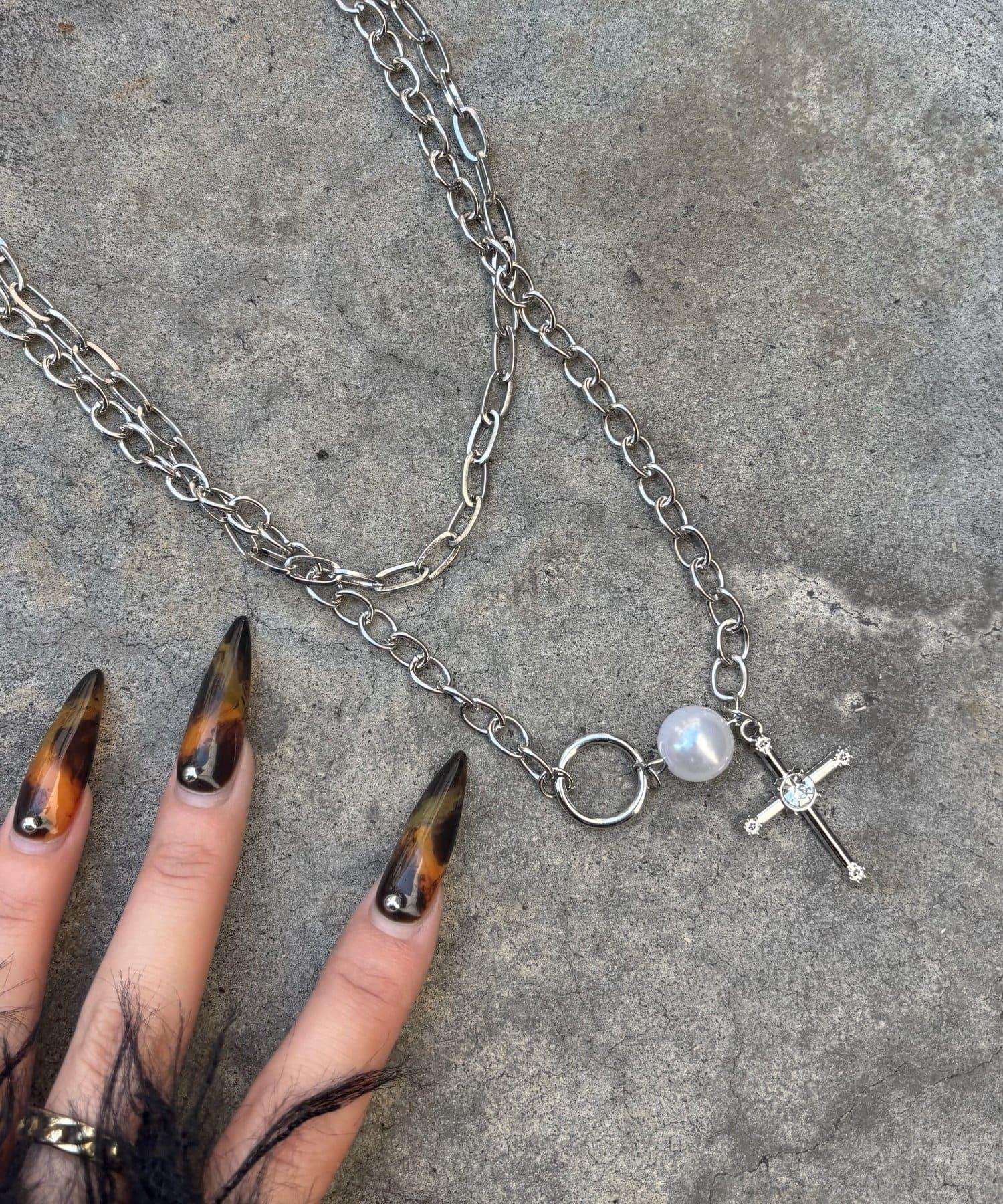 十字架圖案賦予項鍊前衛獨特的外觀。